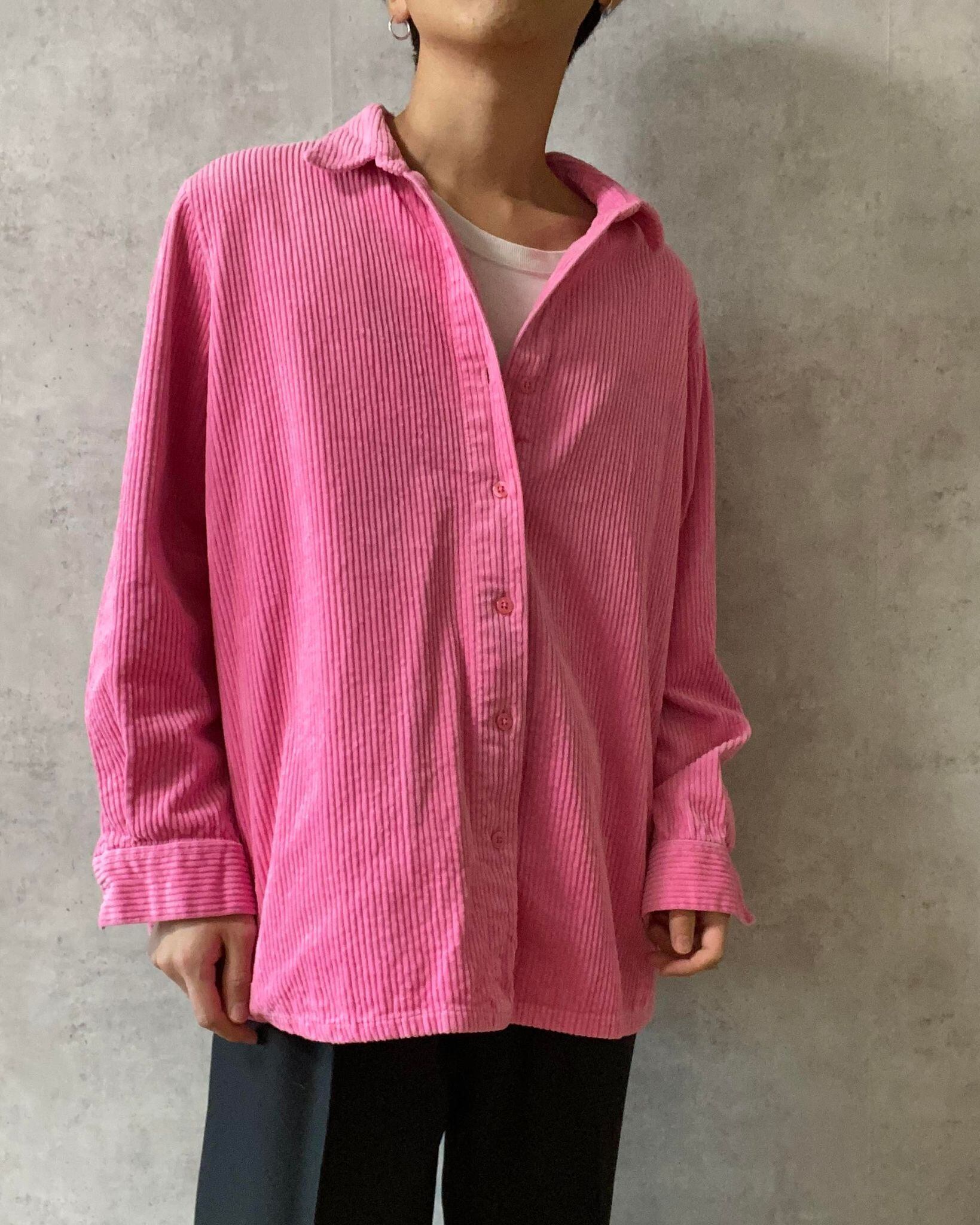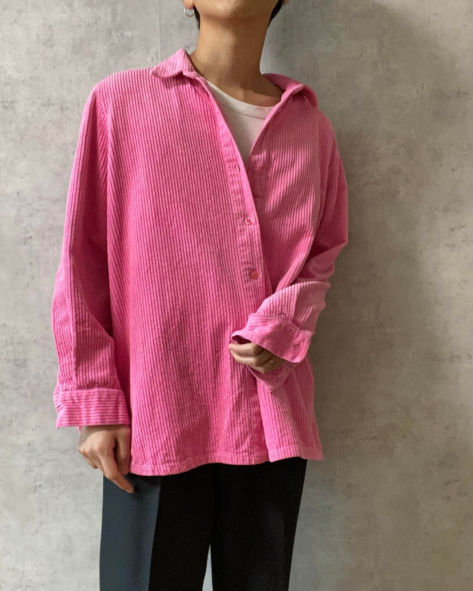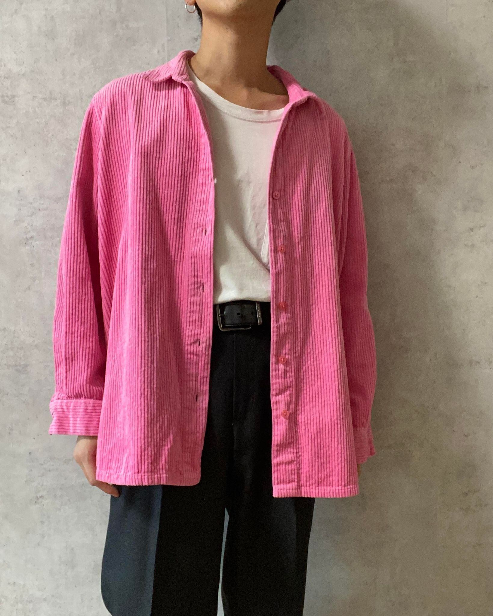 圧倒的ショッキングピンクな太畝コーデュロイシャツジャケット。