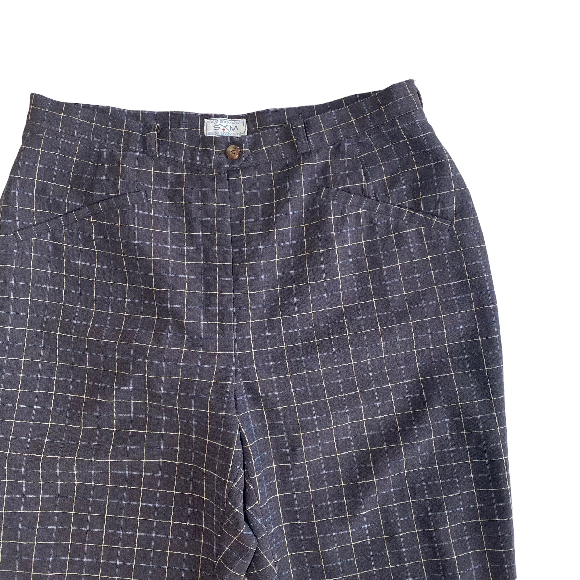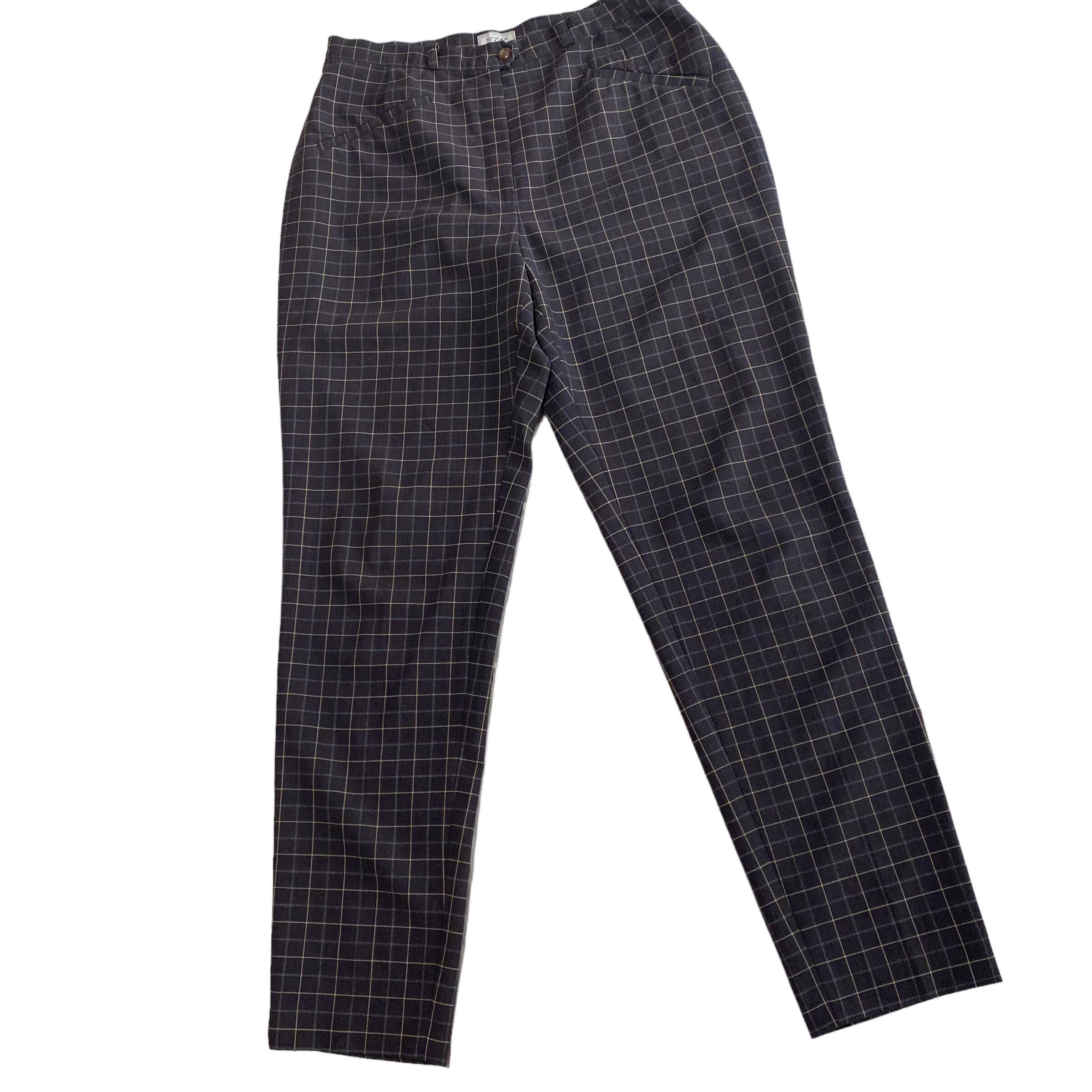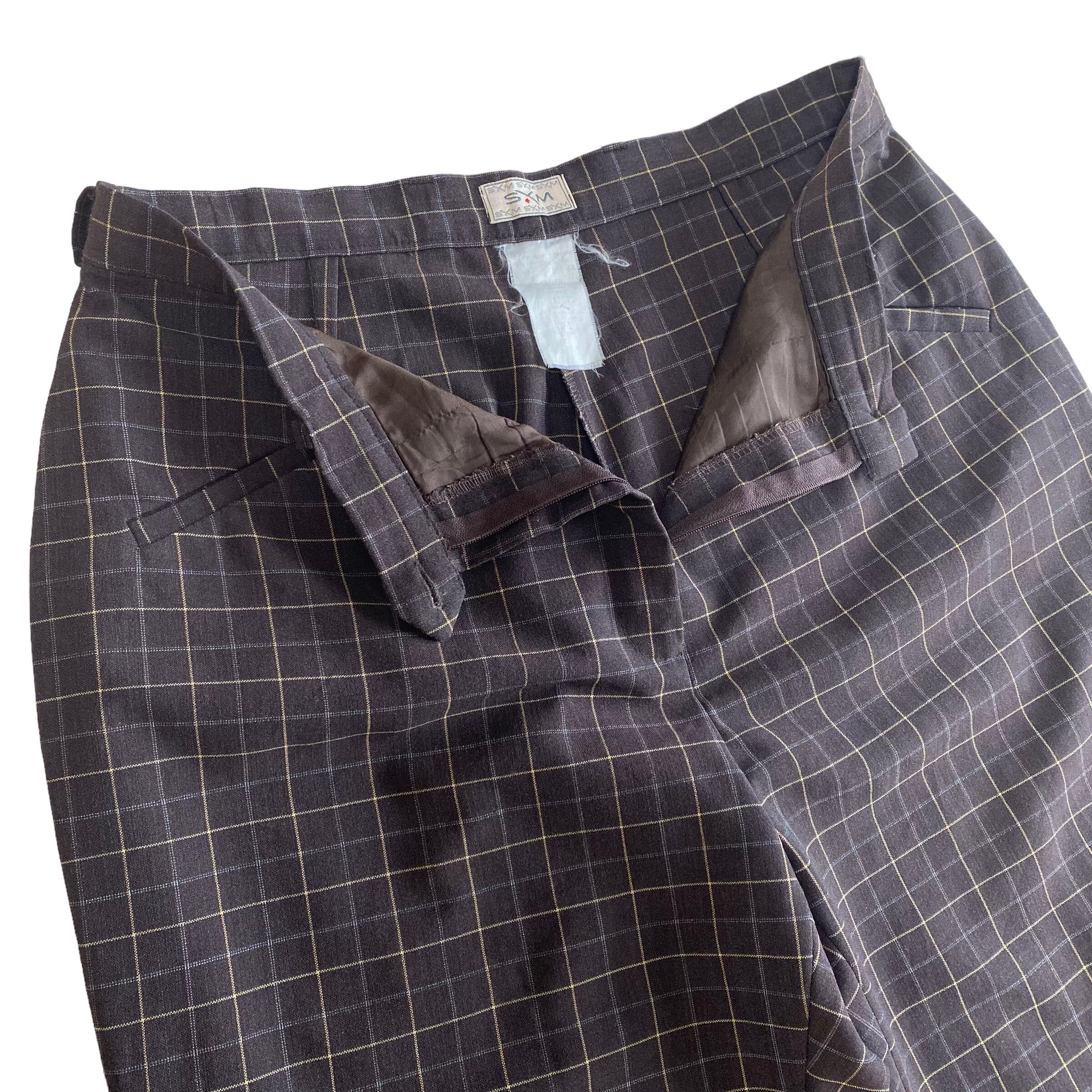 可愛い配色、ブラウン×イエローチェックのスラックス。