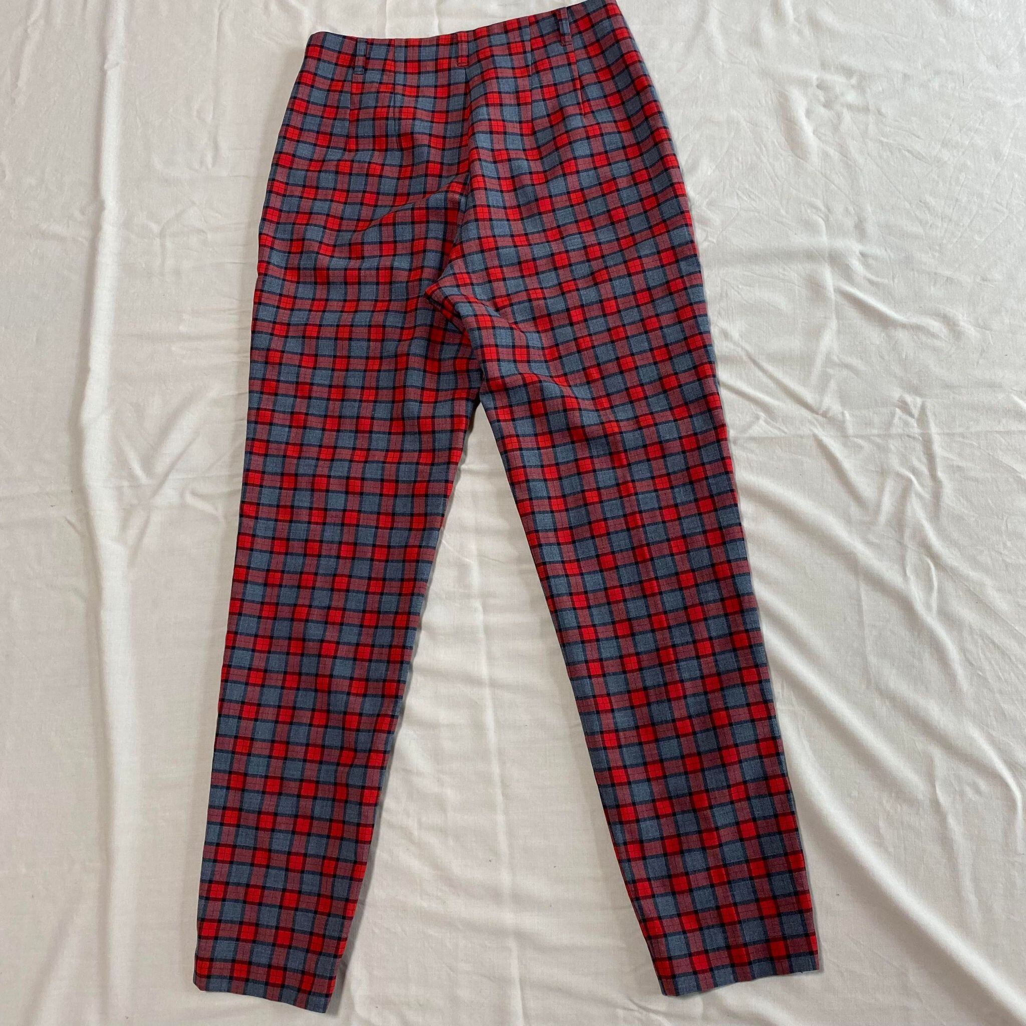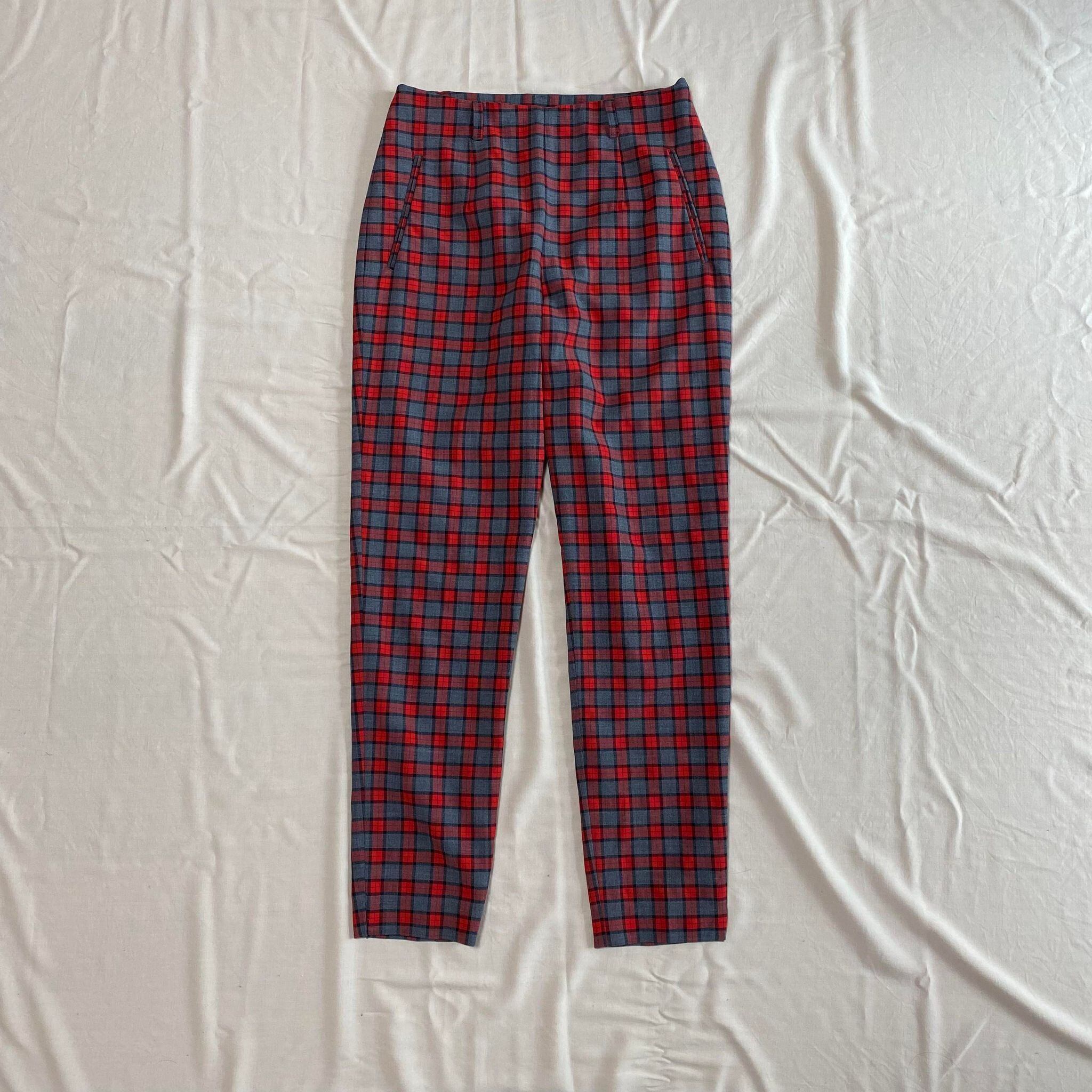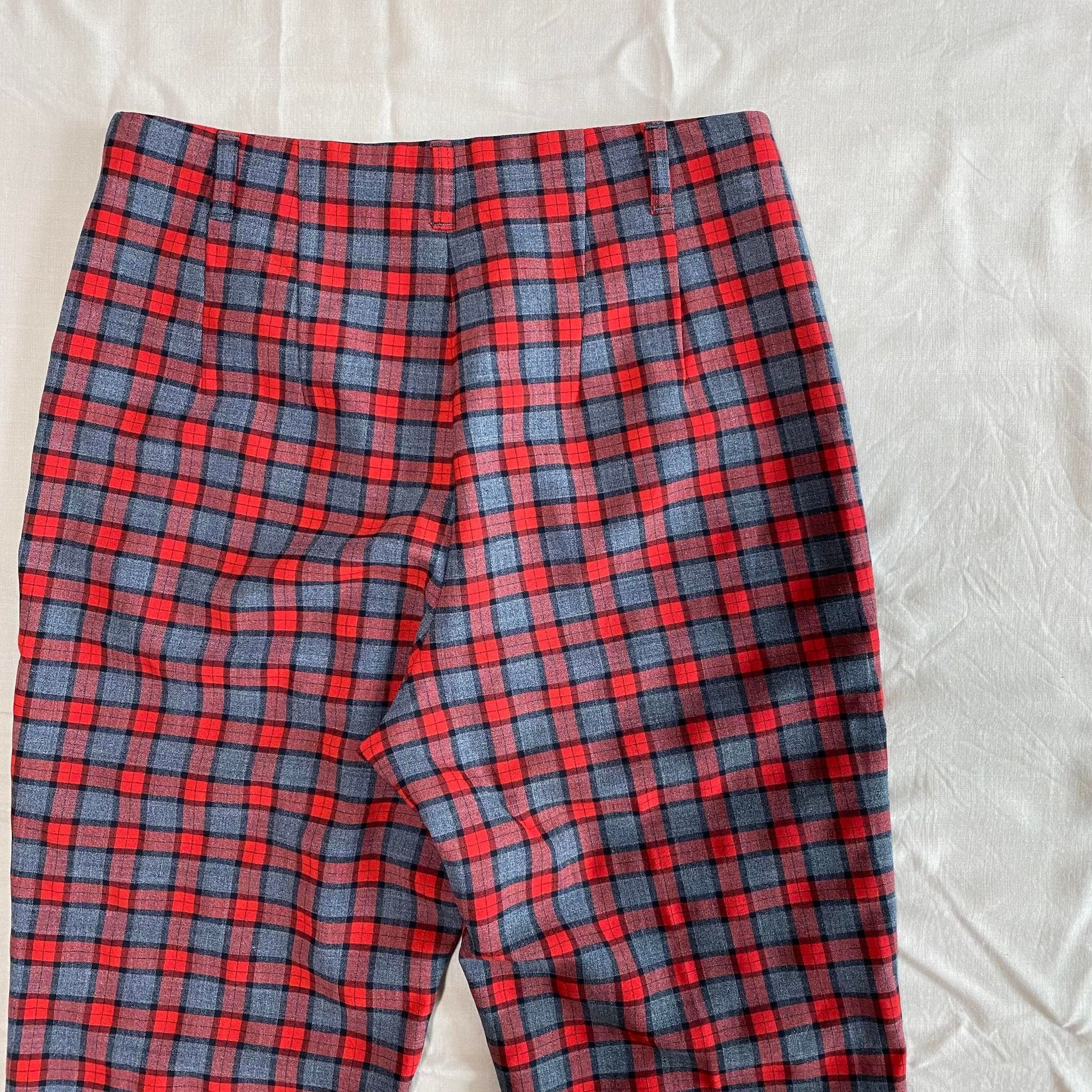 high waist red check tapered slacks