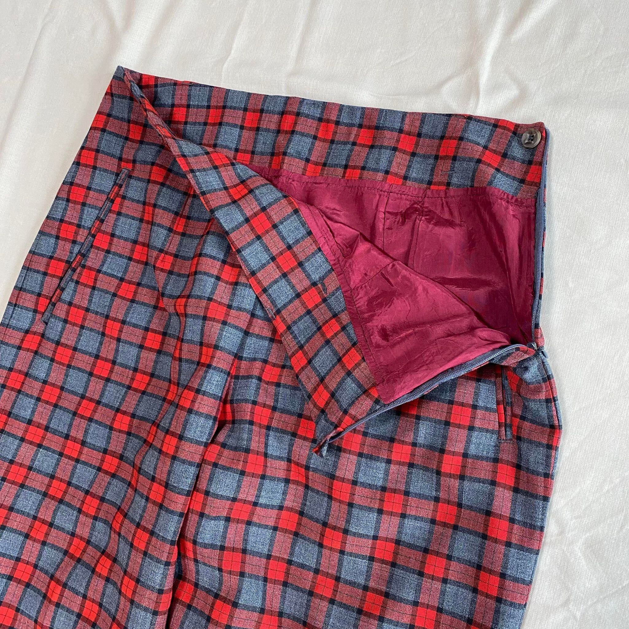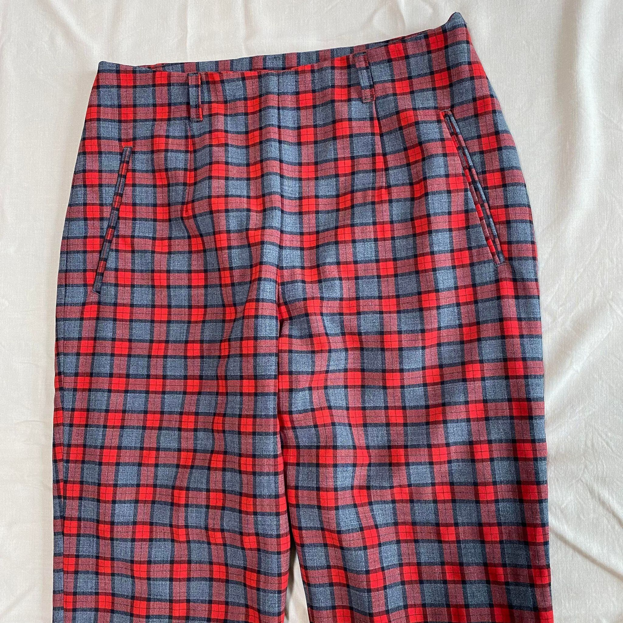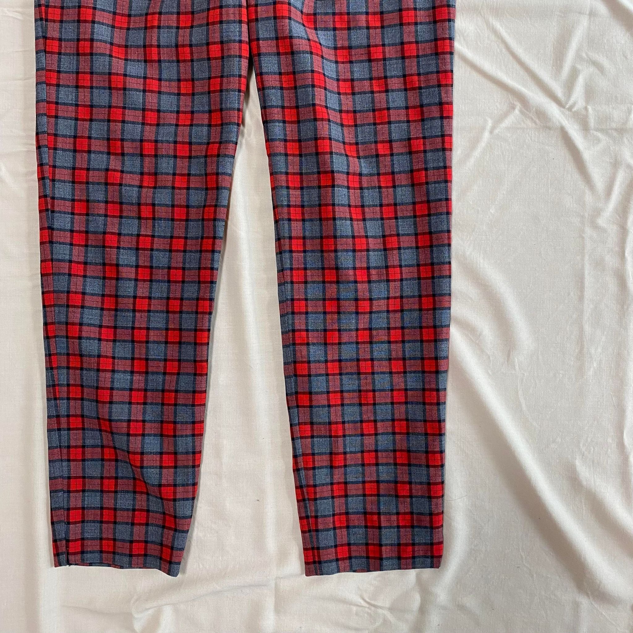 high waist red check tapered slacks