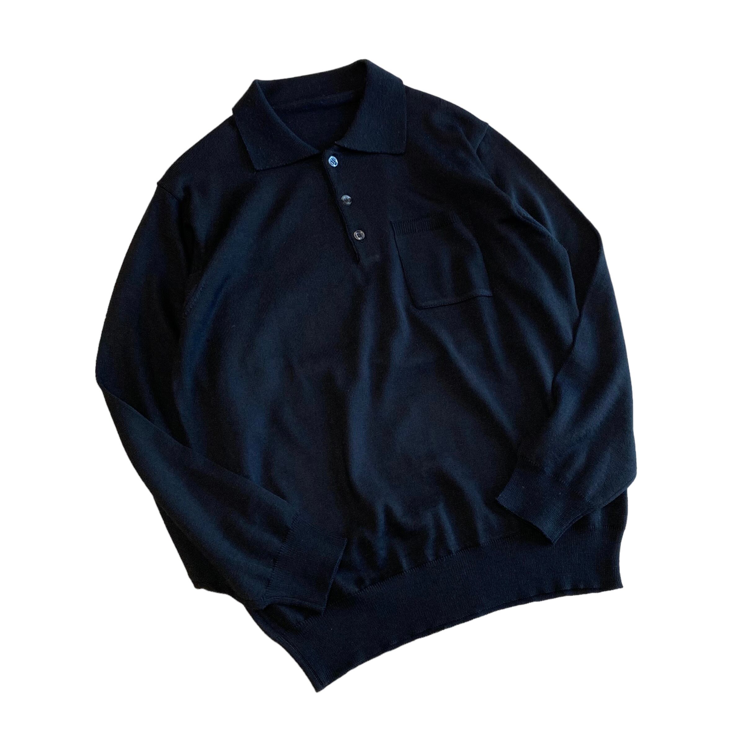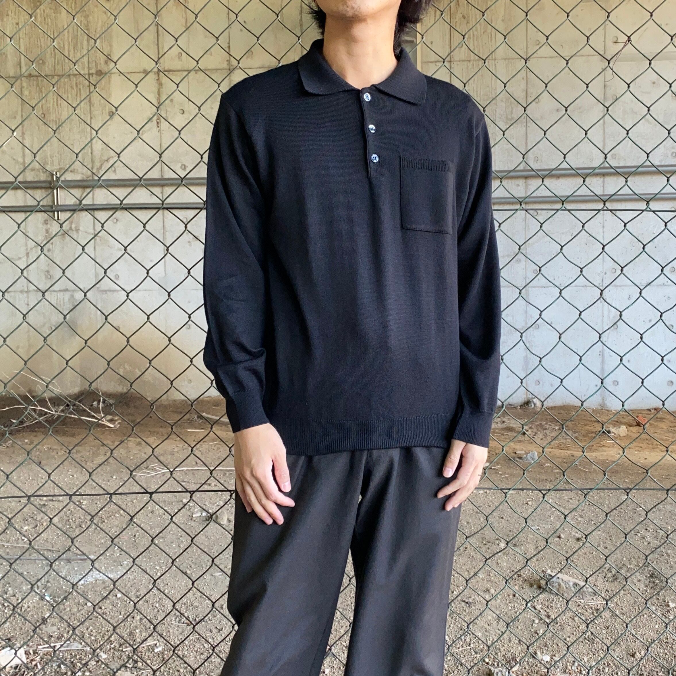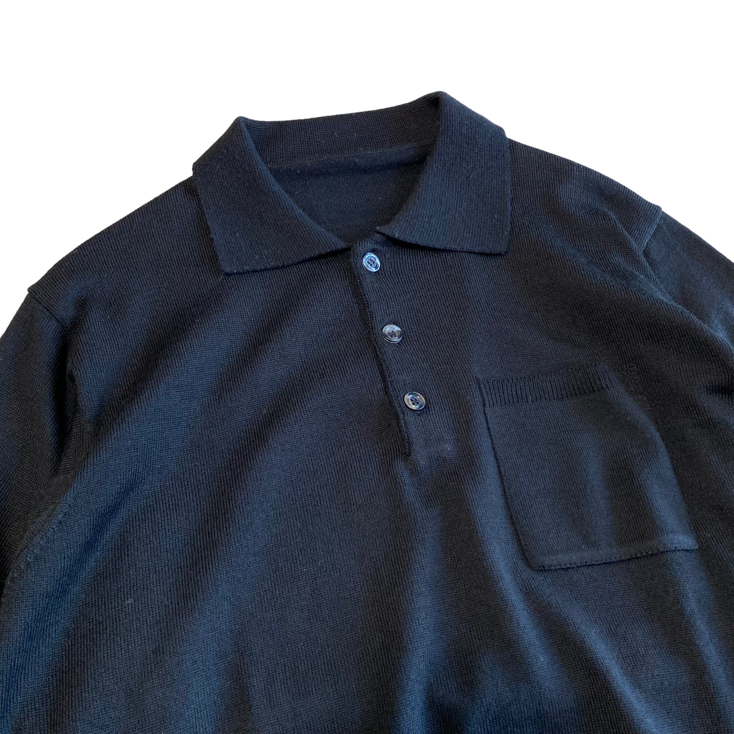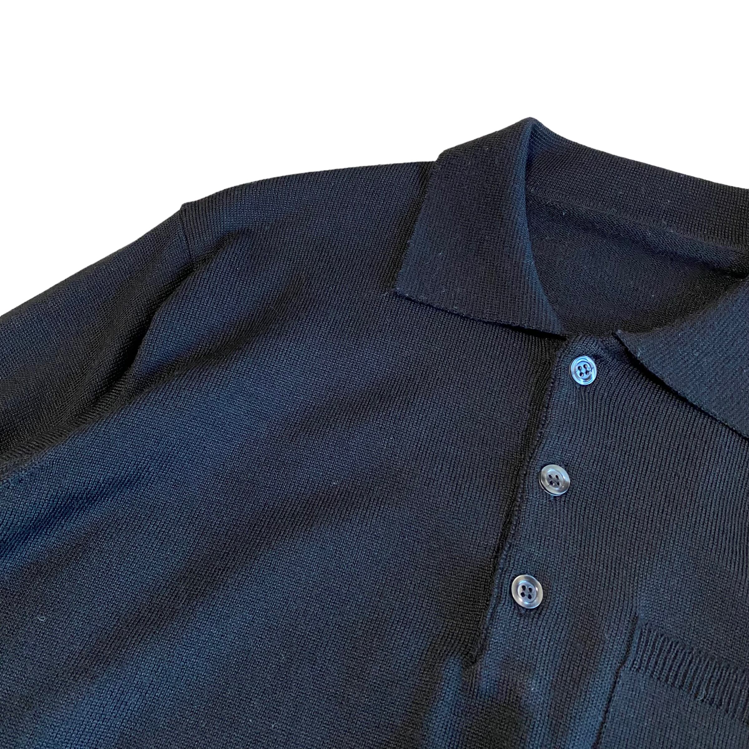 90's~ Italy made / merino wool black knit polo