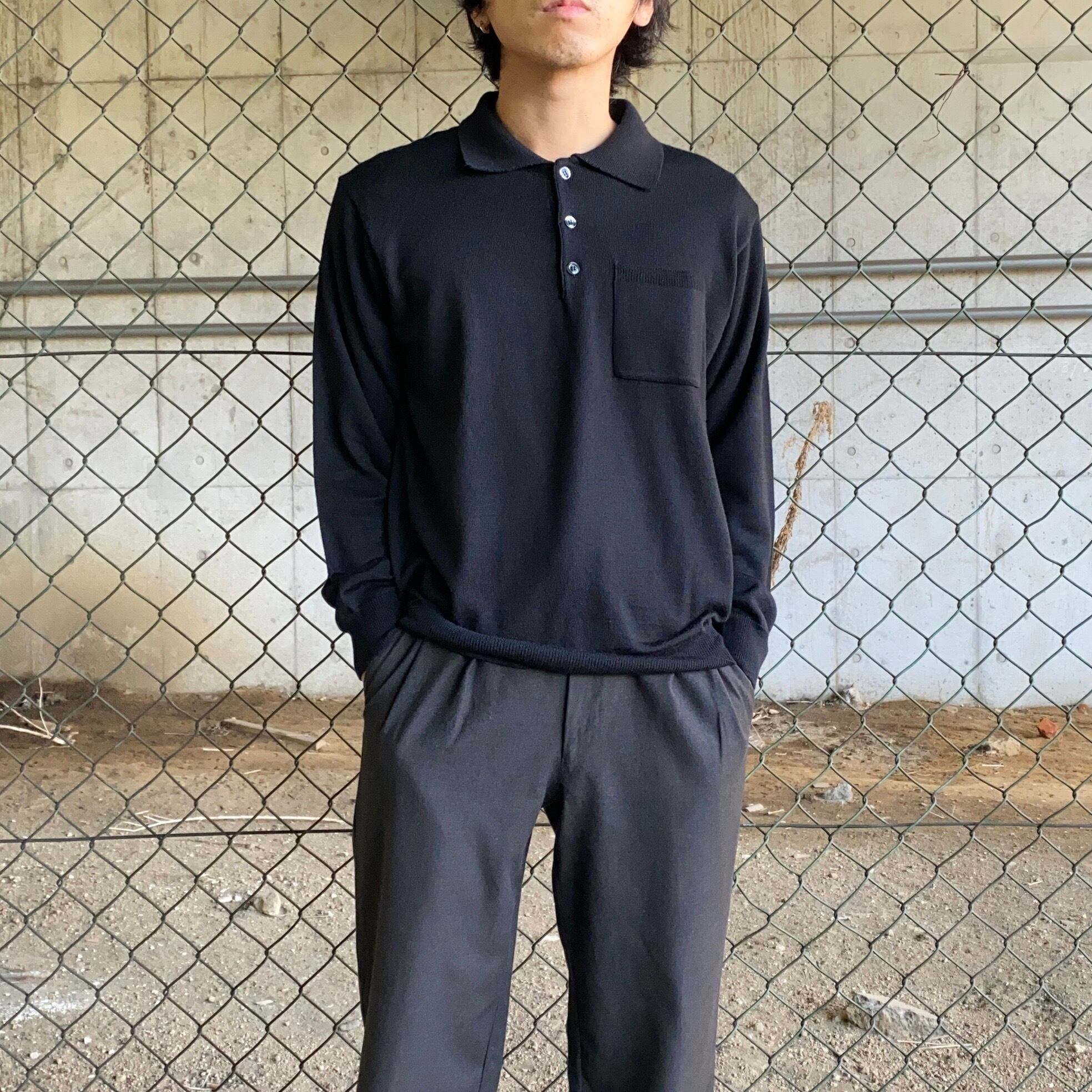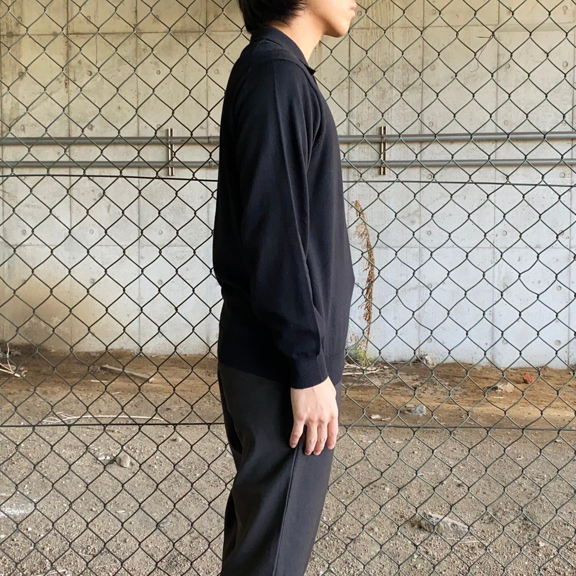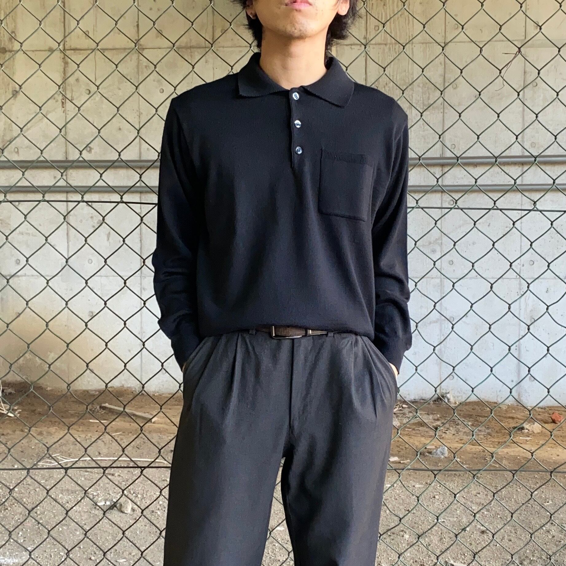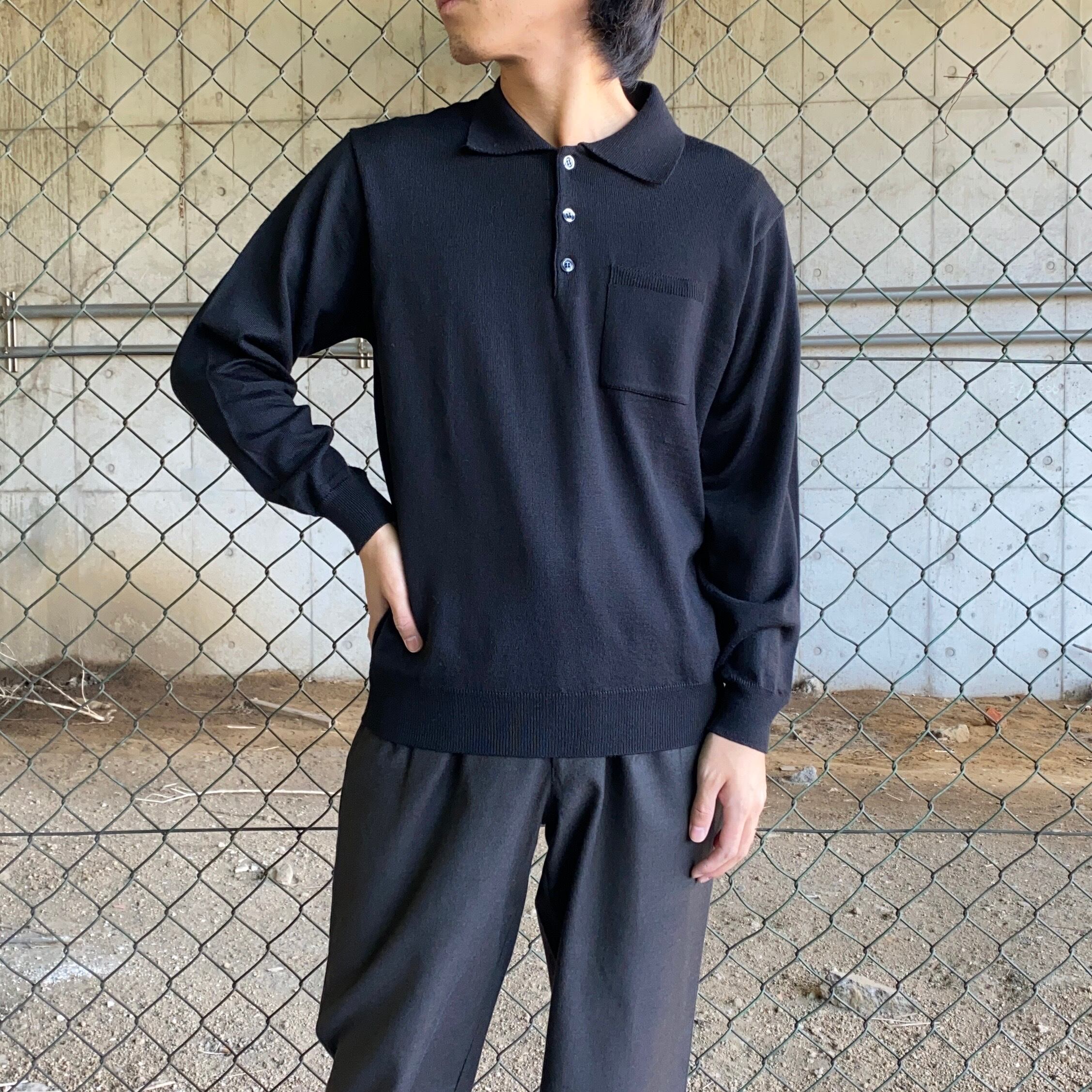 90's~ Italy made / merino wool black knit polo
