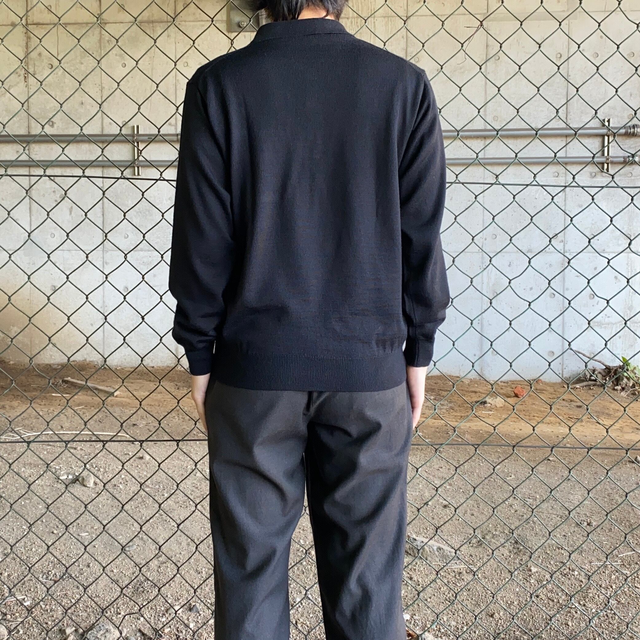 メリノウールのブラックニットポロ。