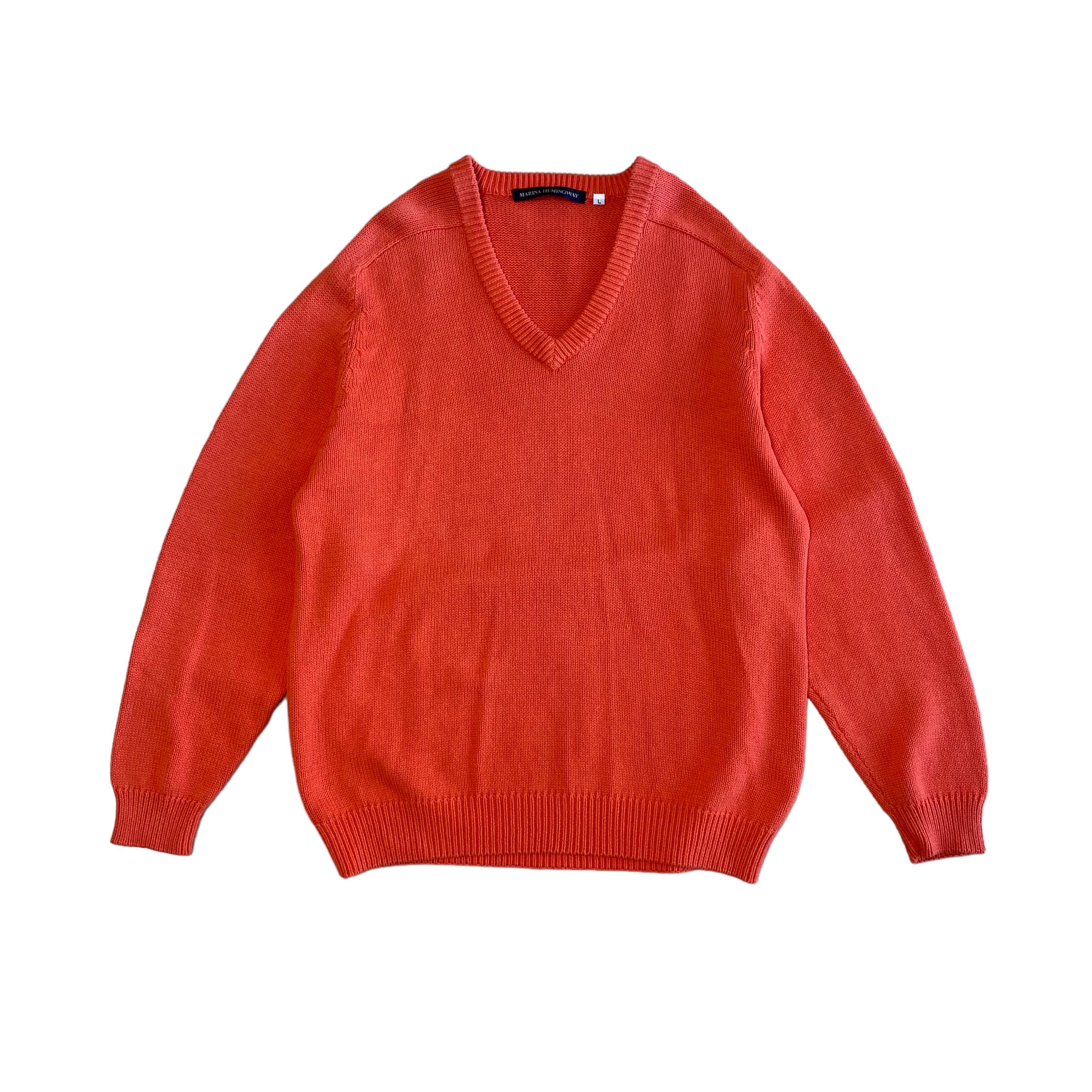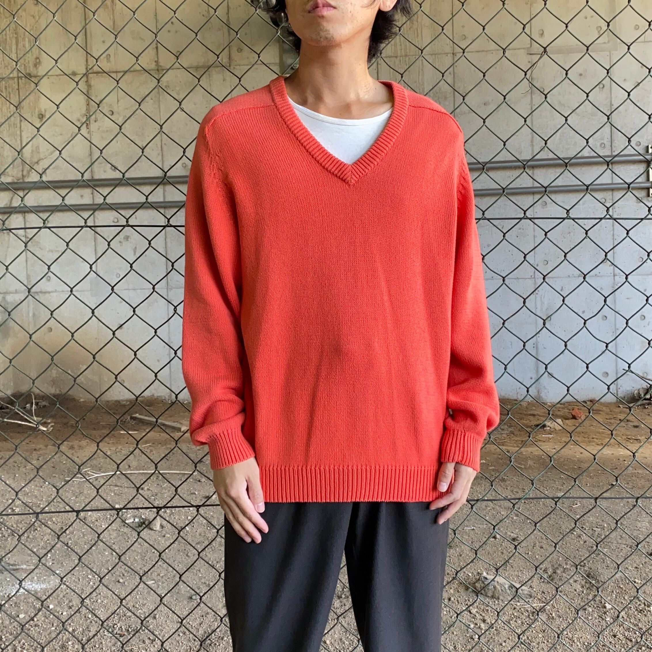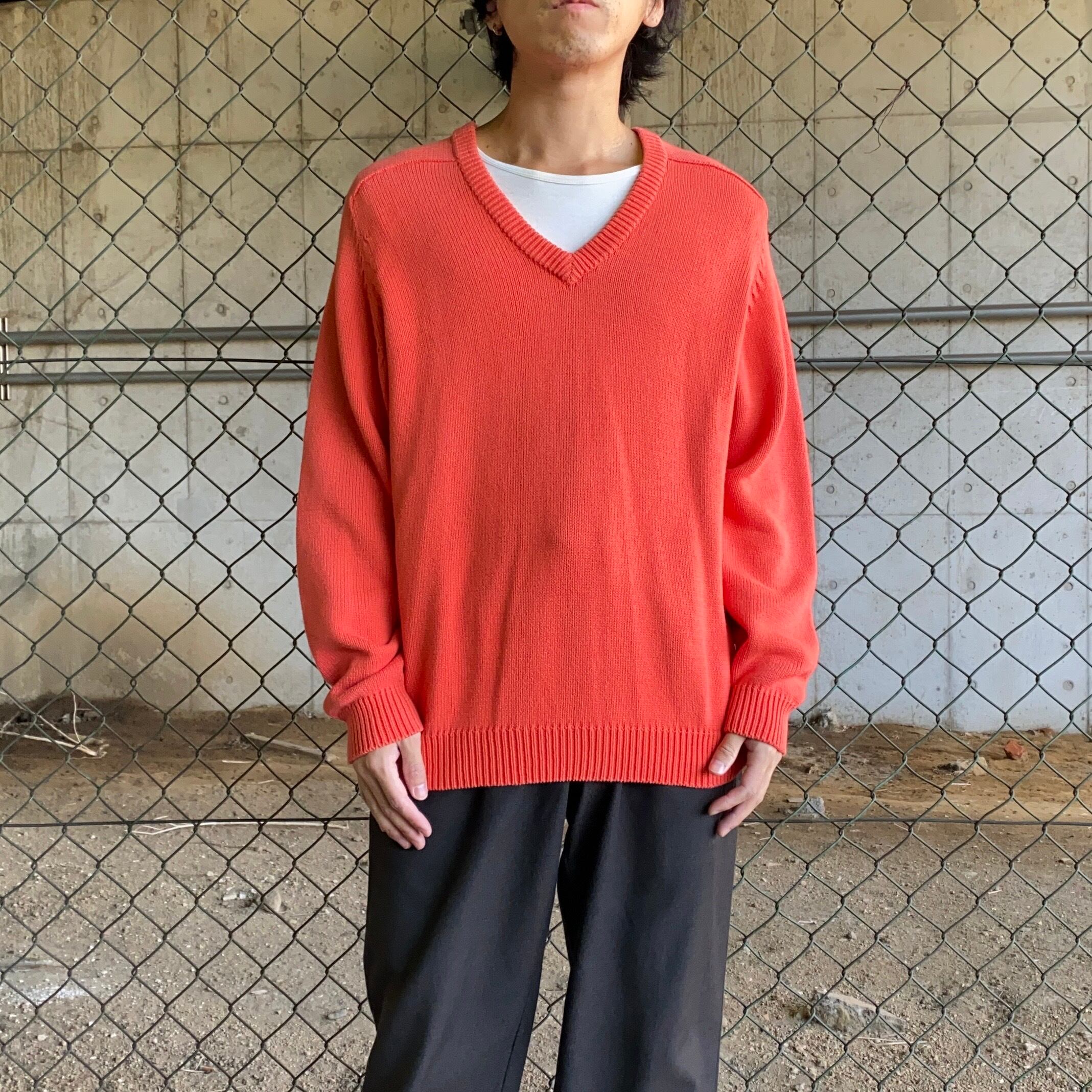 90~00's / Euro orange cotton v-neck knit