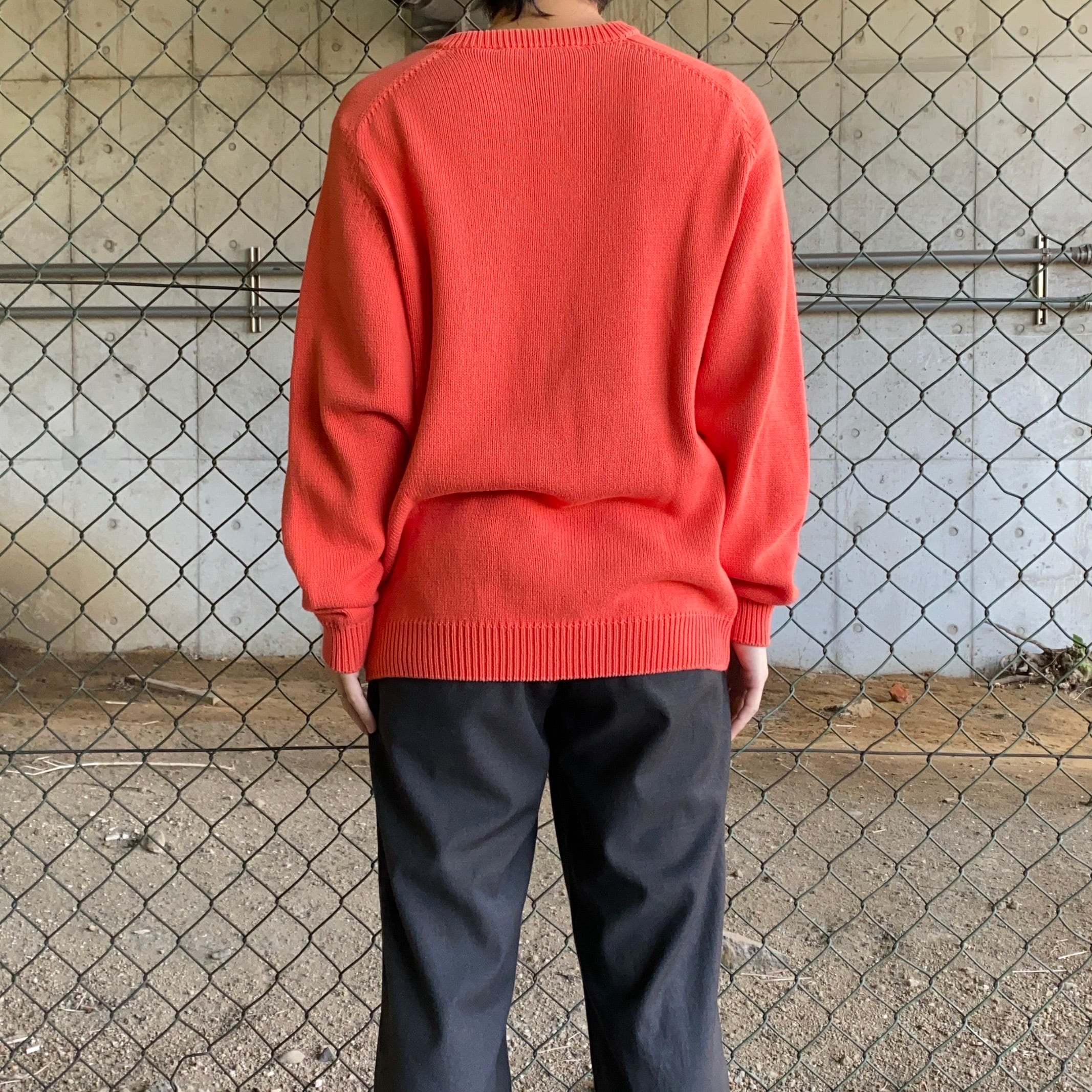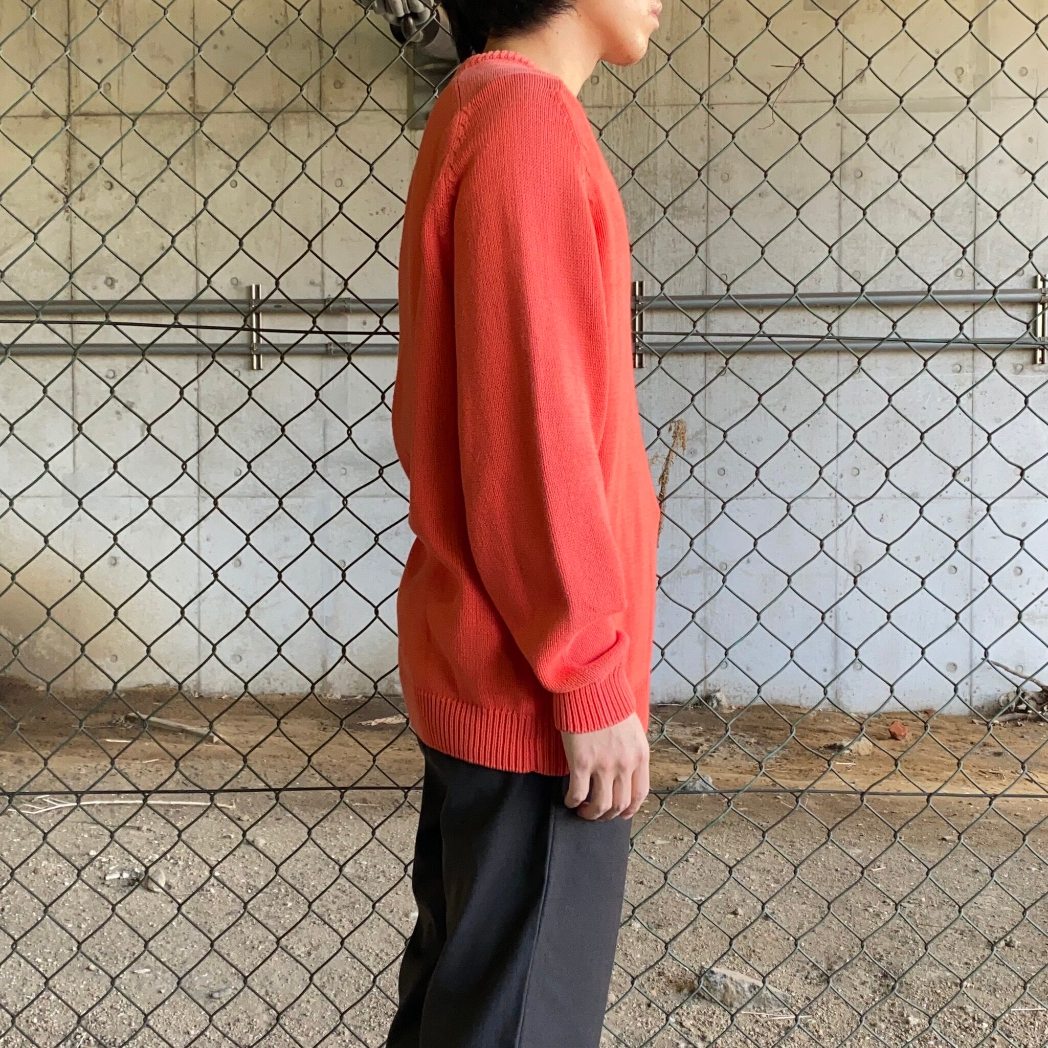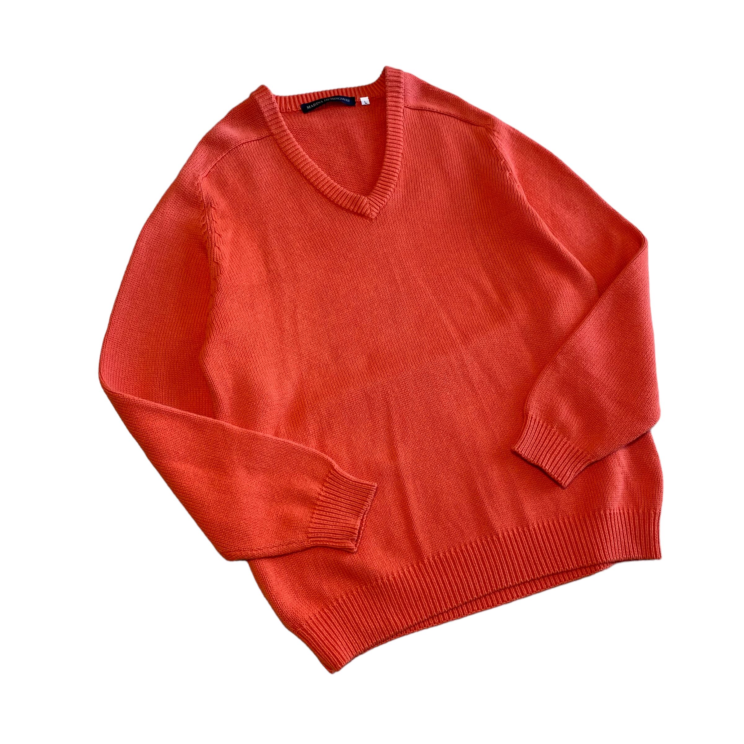 90~00's / Euro orange cotton v-neck knit