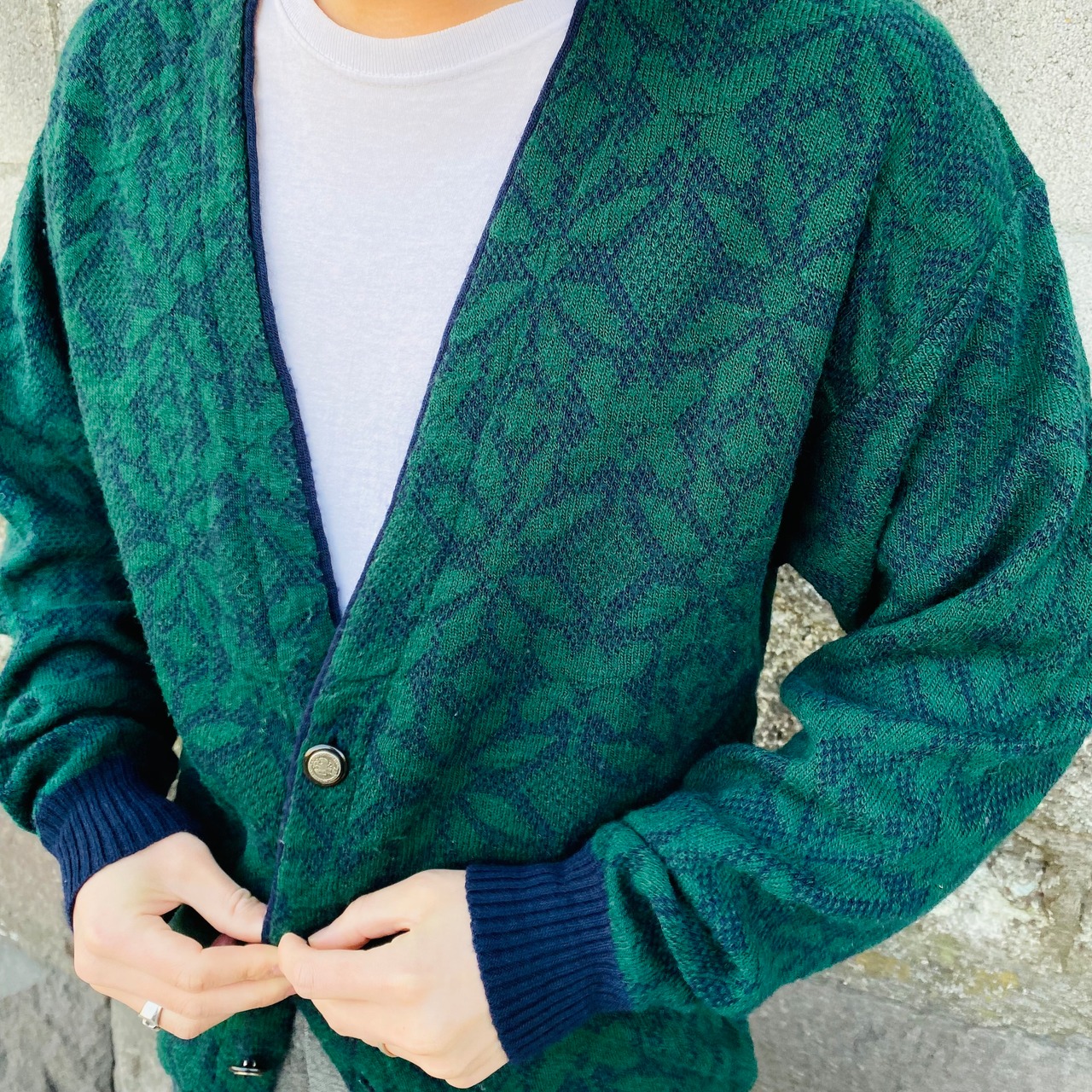 上記の通りアメリカがルーツですが、こちらはイタリア製。ユーロヴィンテージのニットらしさを感じるフラワーパターンがキュートです。ネイビーベースに深緑という配色もありそうでないかなと思います。