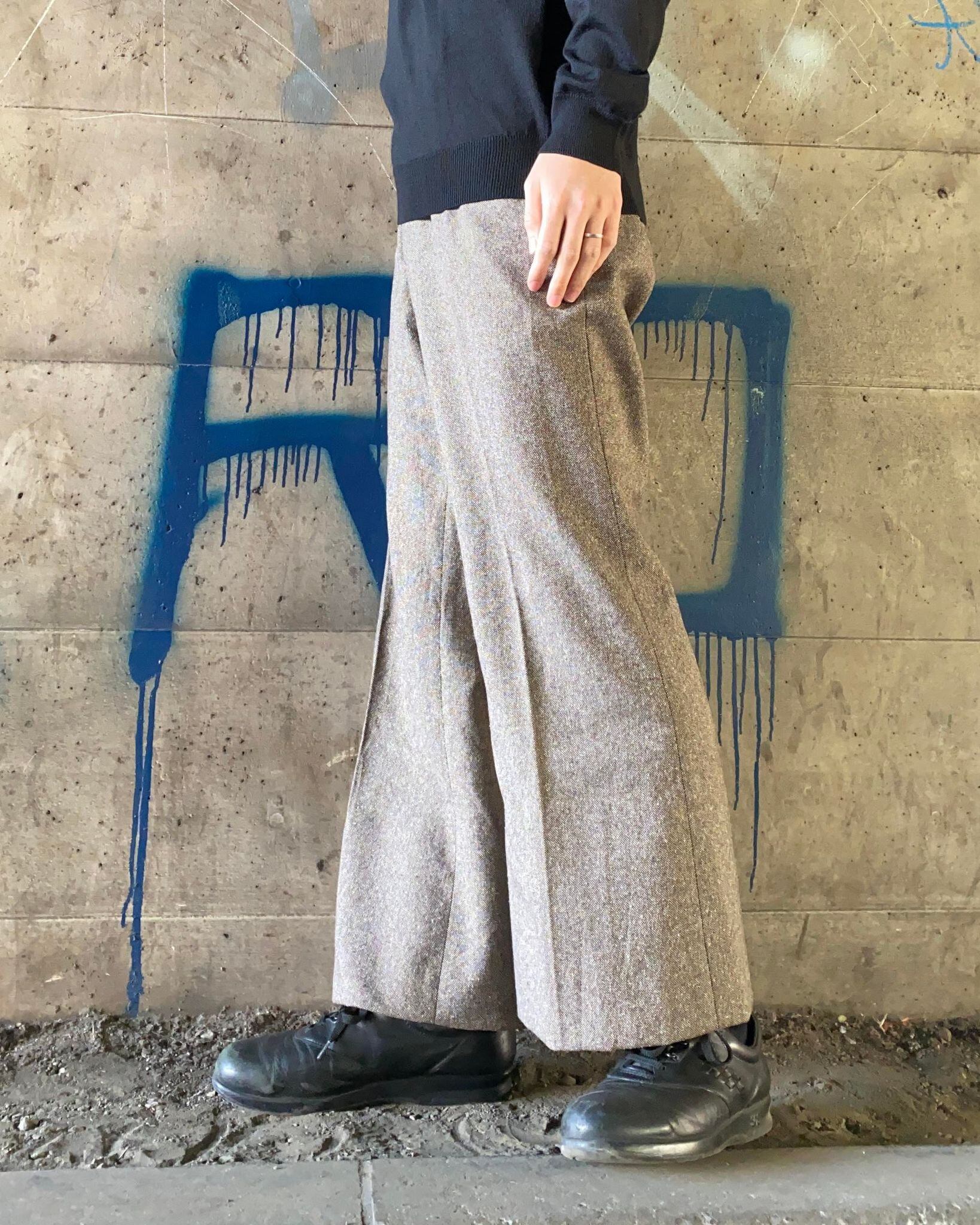 ユーロのツイードフレアスラックス。