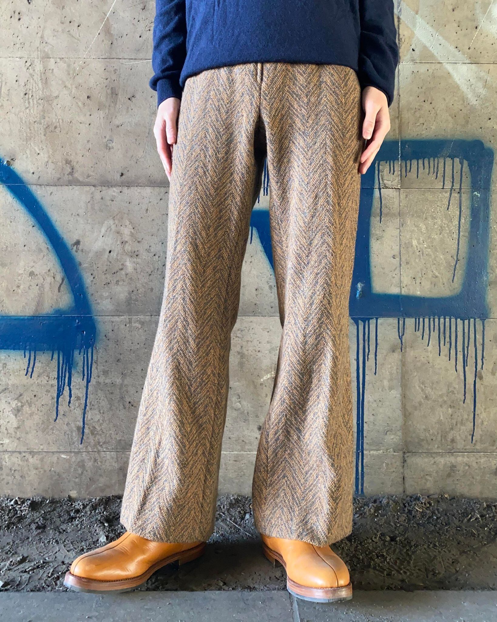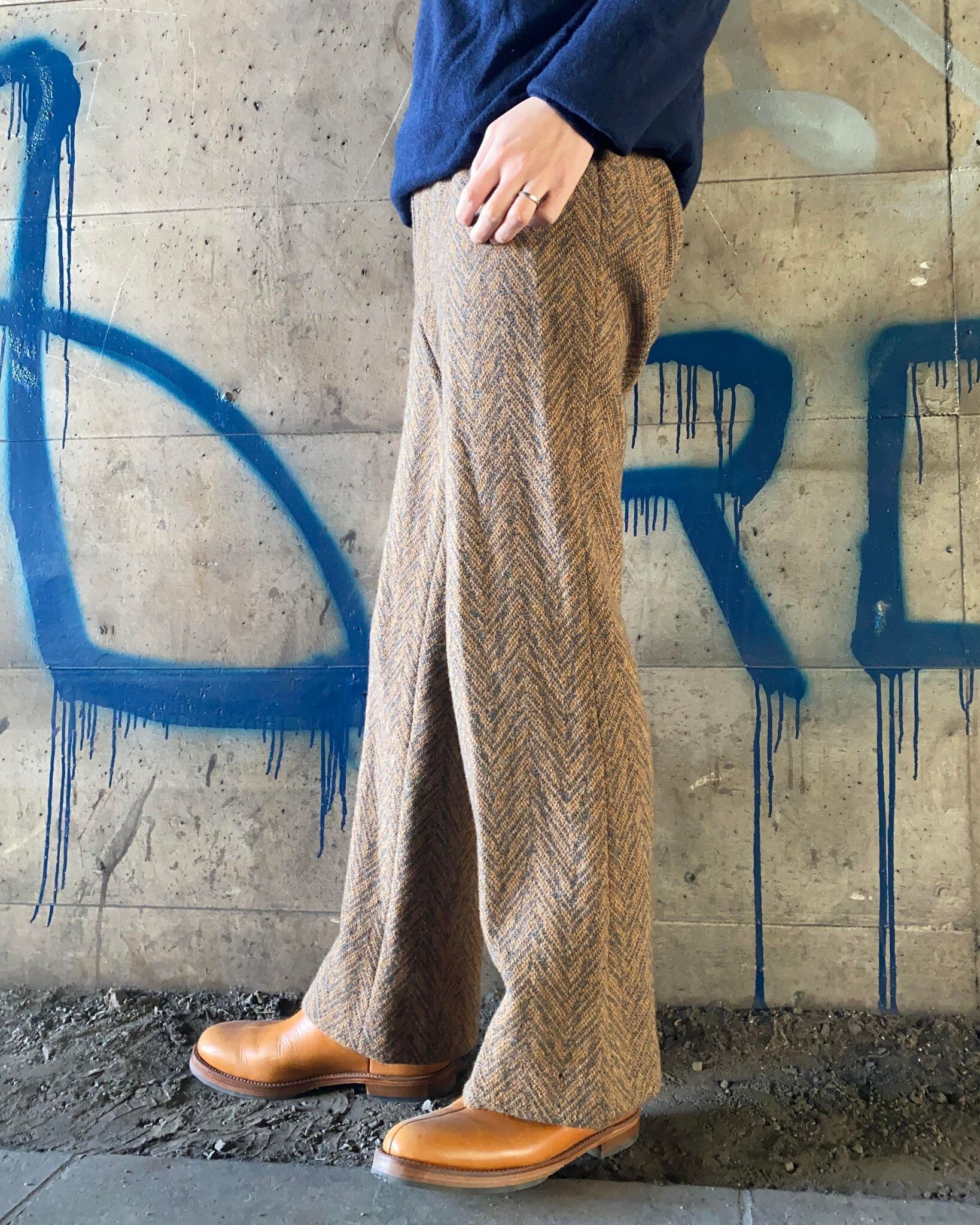ツイード織のフレアパンツ。年代不明ですが、結構古そうです。