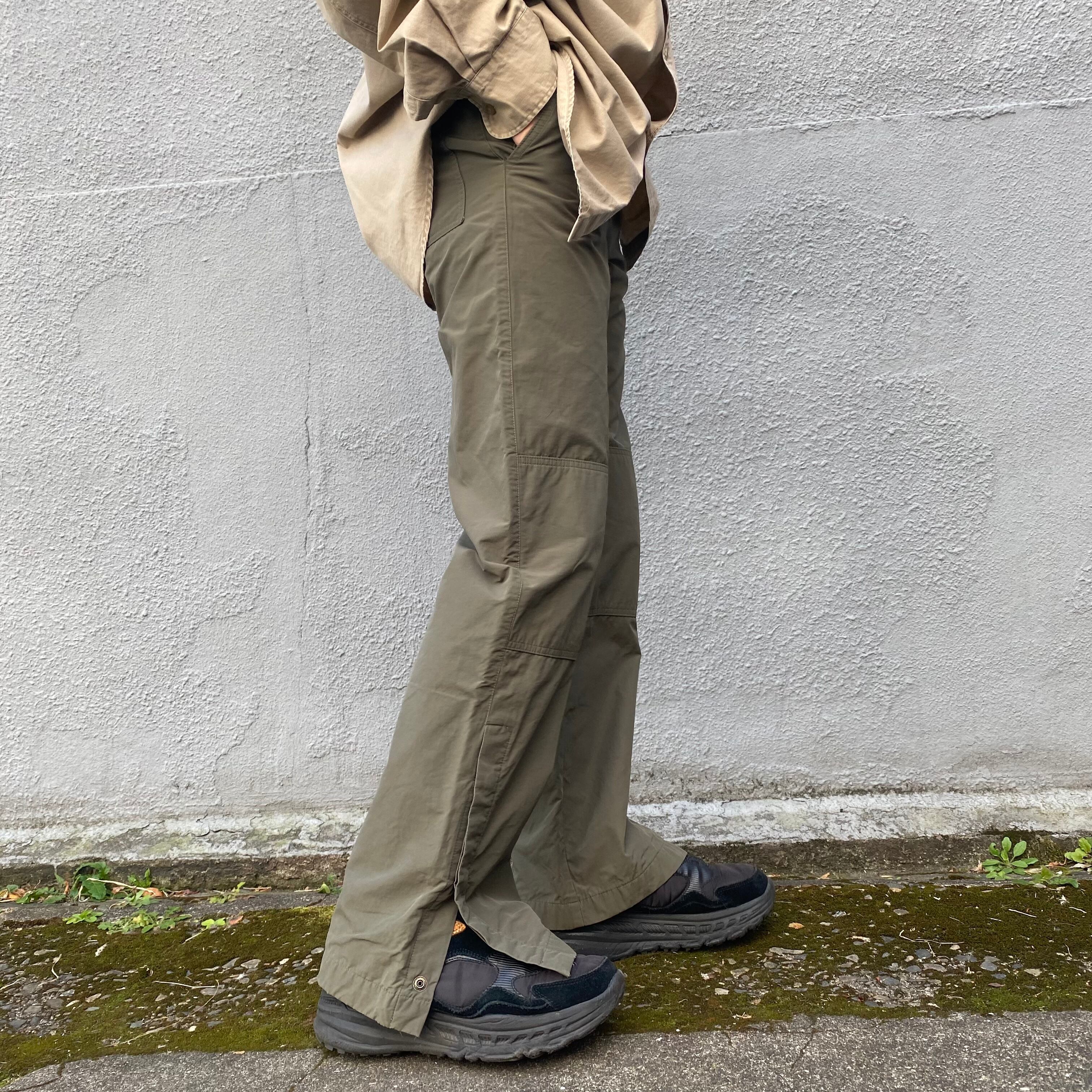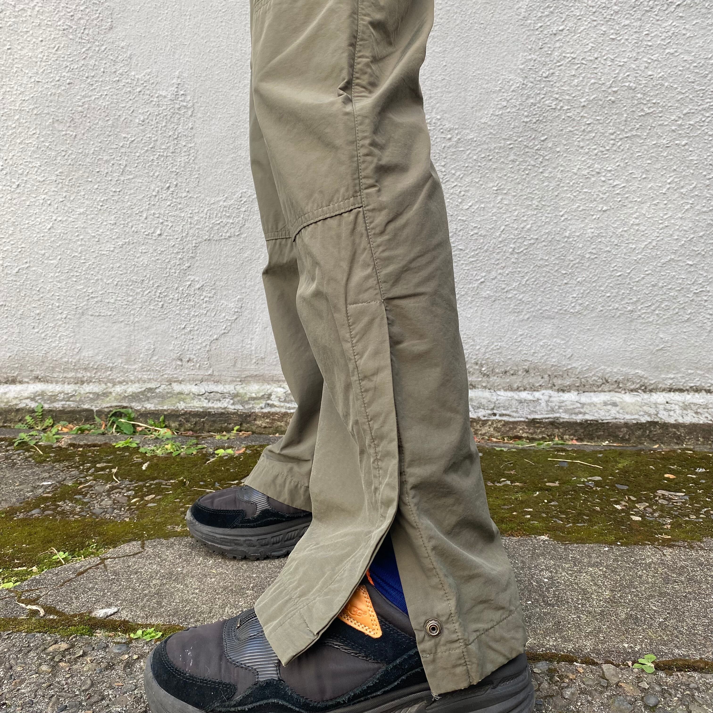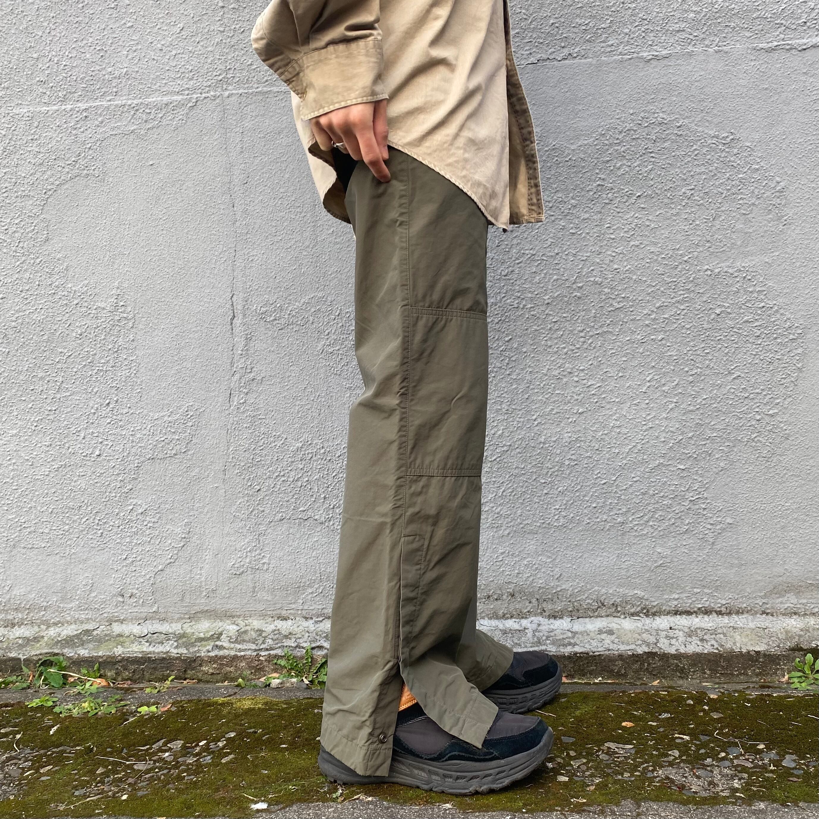 こちらのボタンを開け閉めするとサイドスリットが入り、裾の高さを調整できるので、合わせるシューズを選ばない汎用性の高いアイテムです。自分はソールが厚いダッドシューズを合わせてますが、生地が裾に溜まらず綺麗なシルエットになっています◎