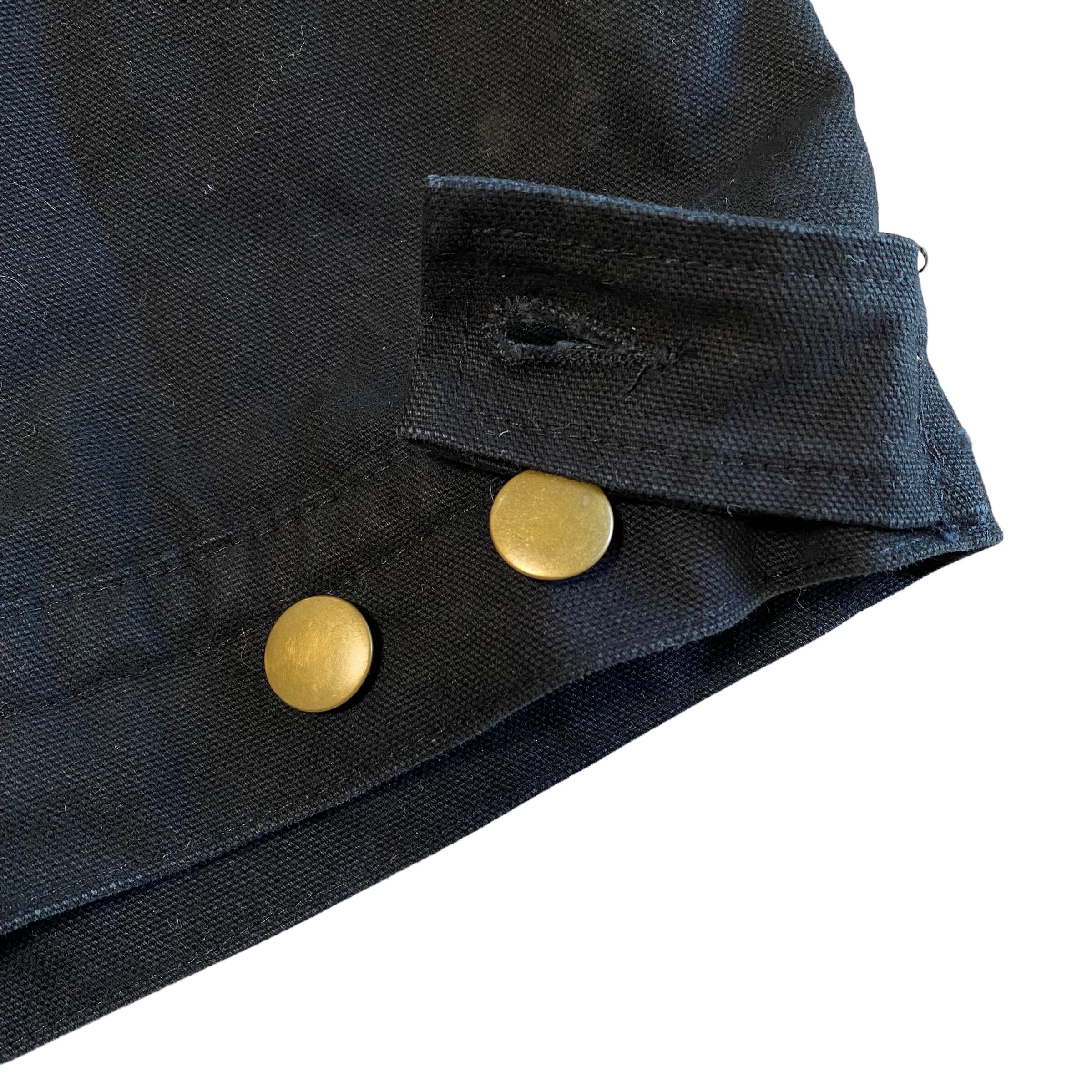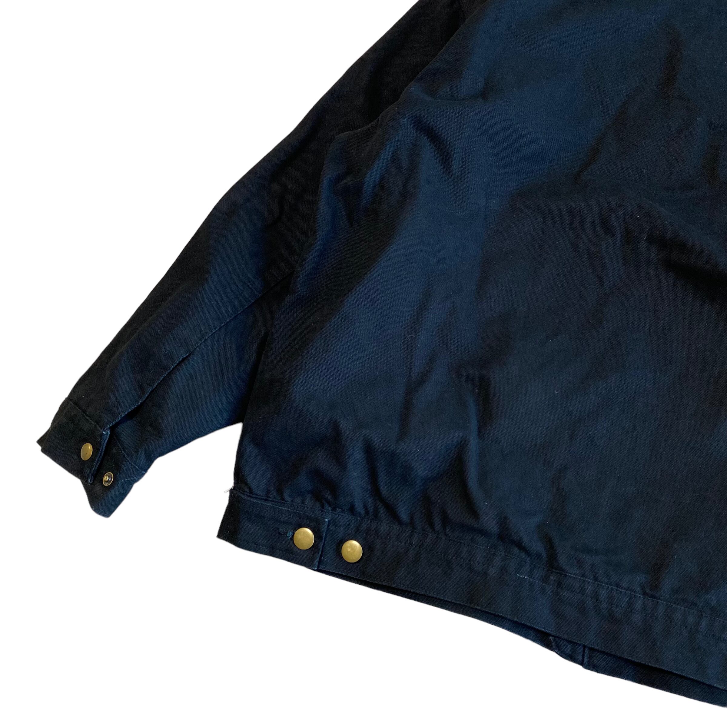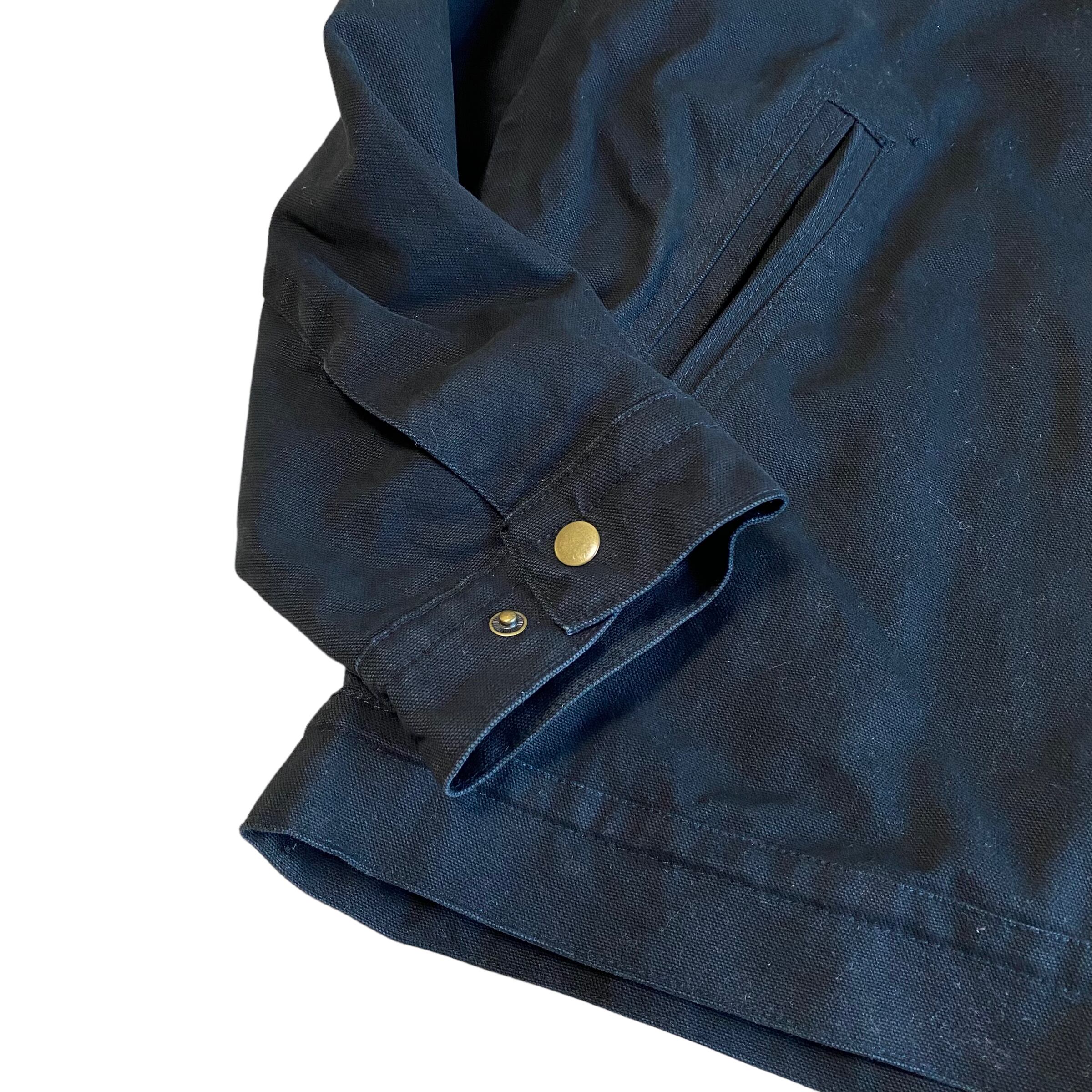 ダック地のような硬いコットンで、オーバーサイズも相まって無骨な印象があります。