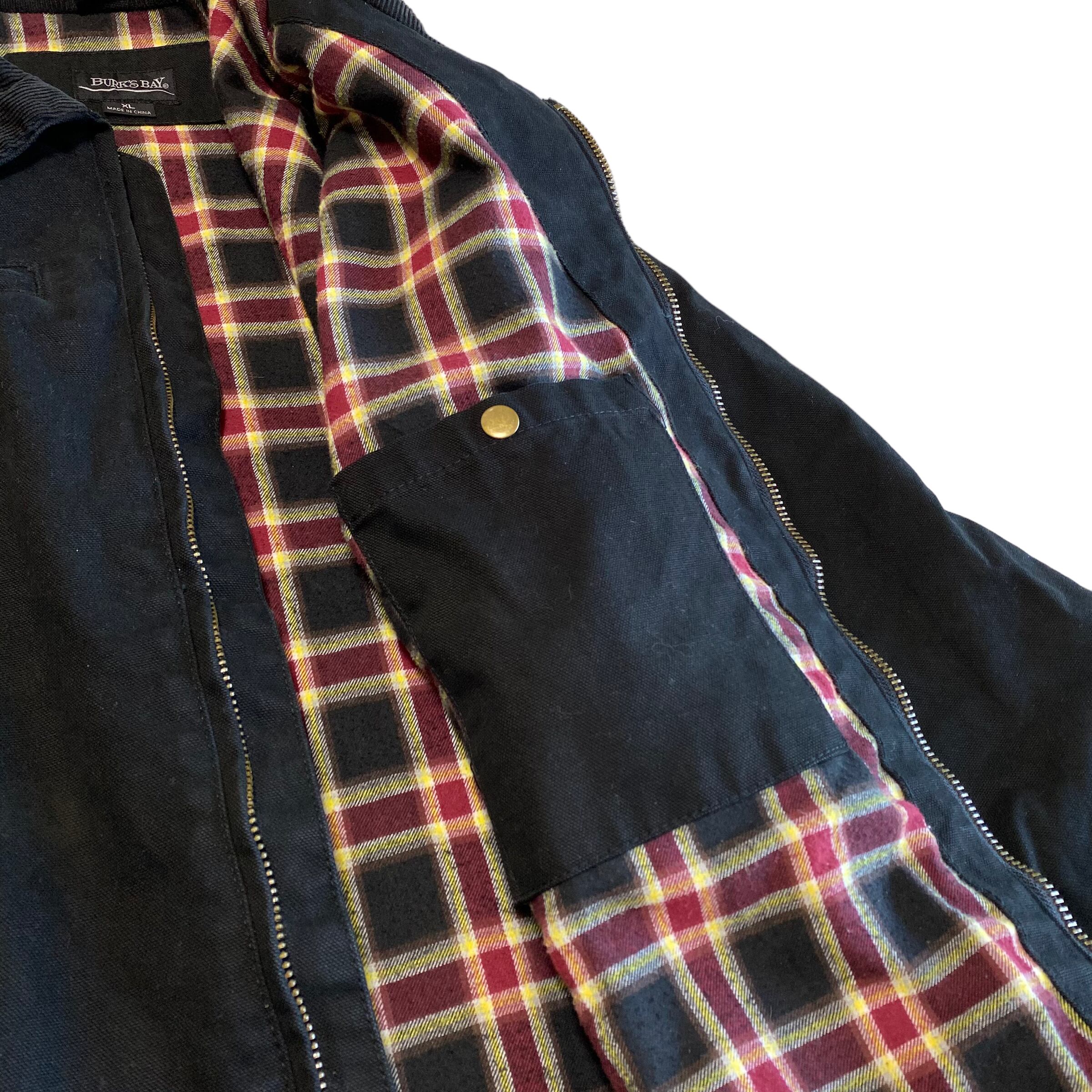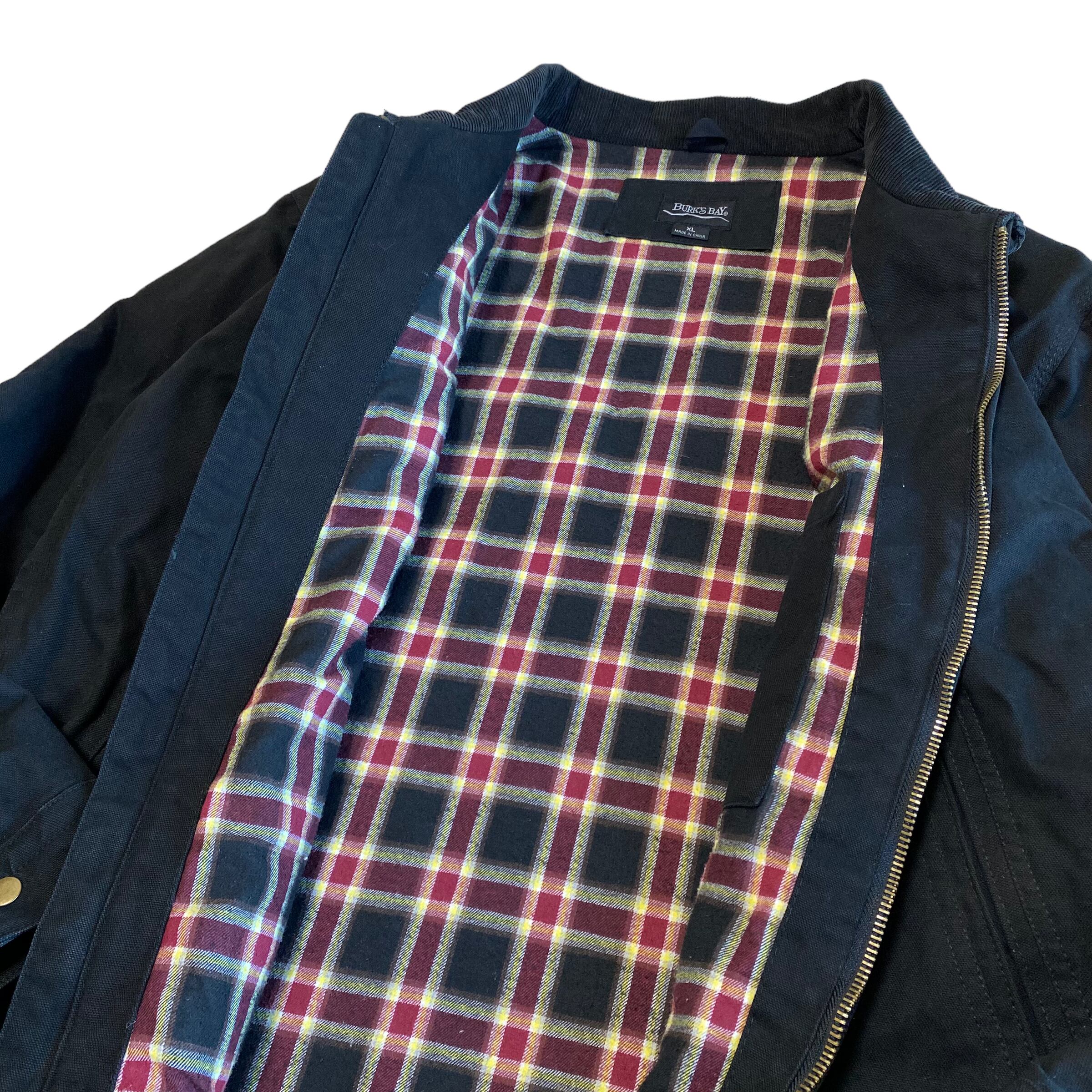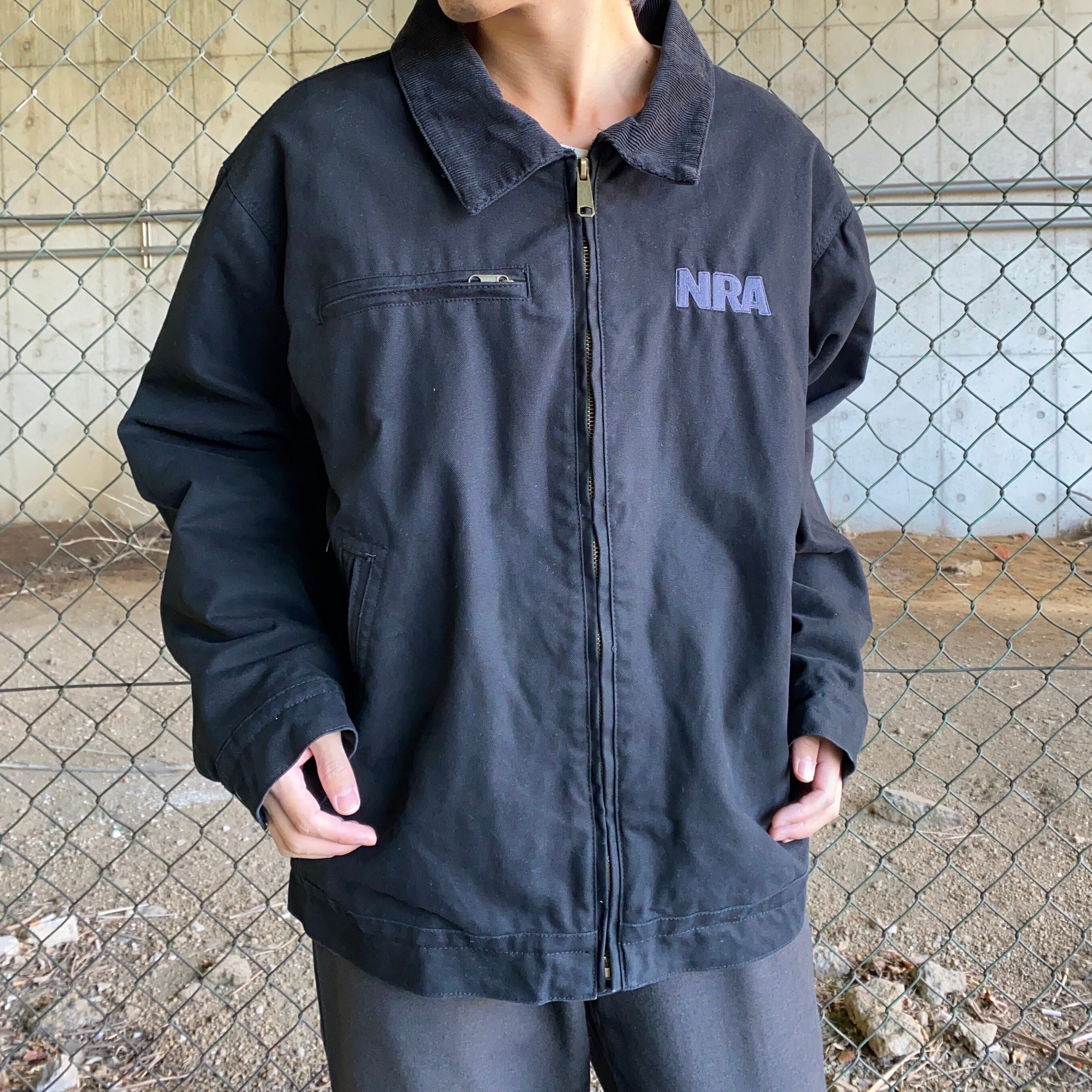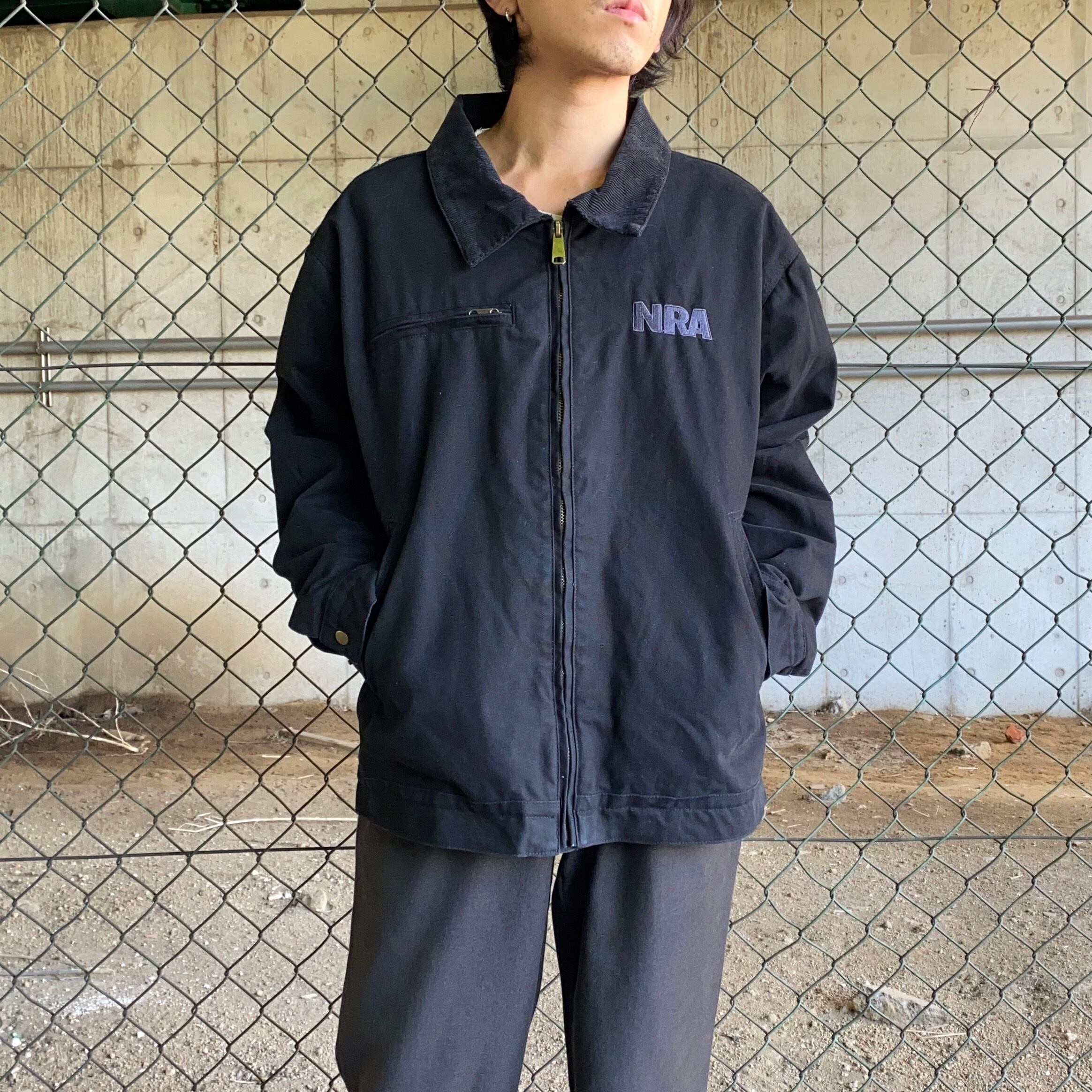 ダック地のような硬いコットンで、オーバーサイズも相まって無骨な印象があります。