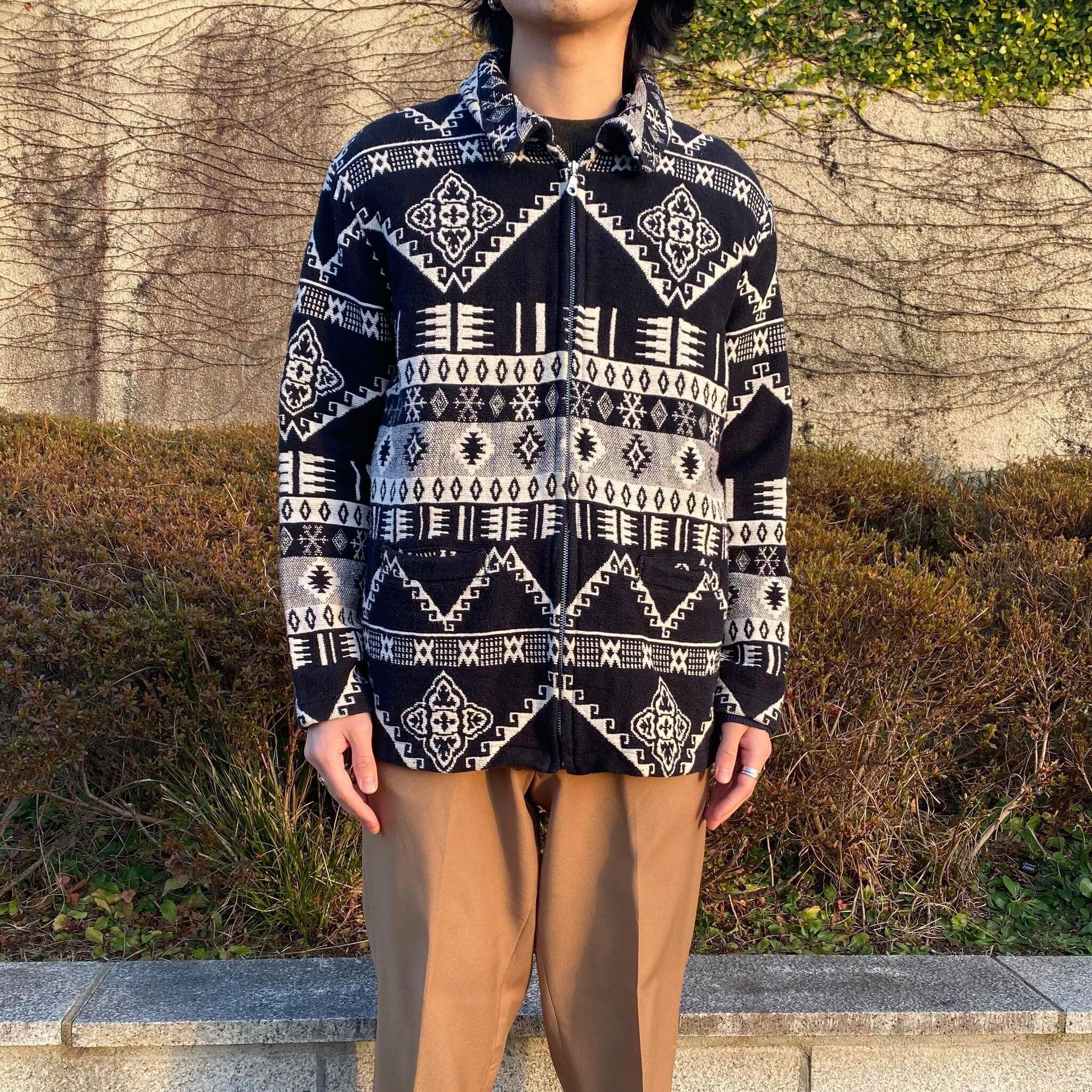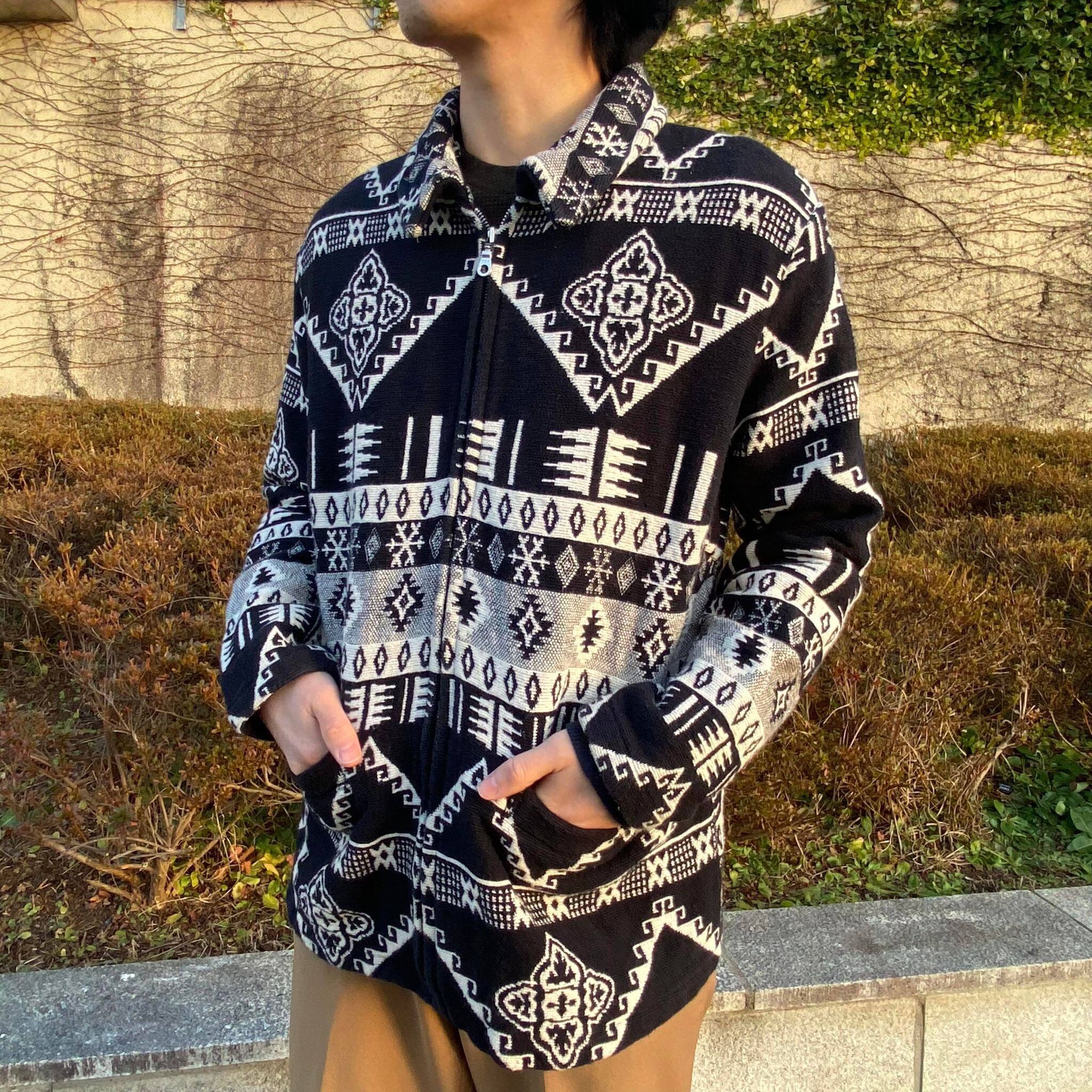 90's / native pattern zip up jacket
