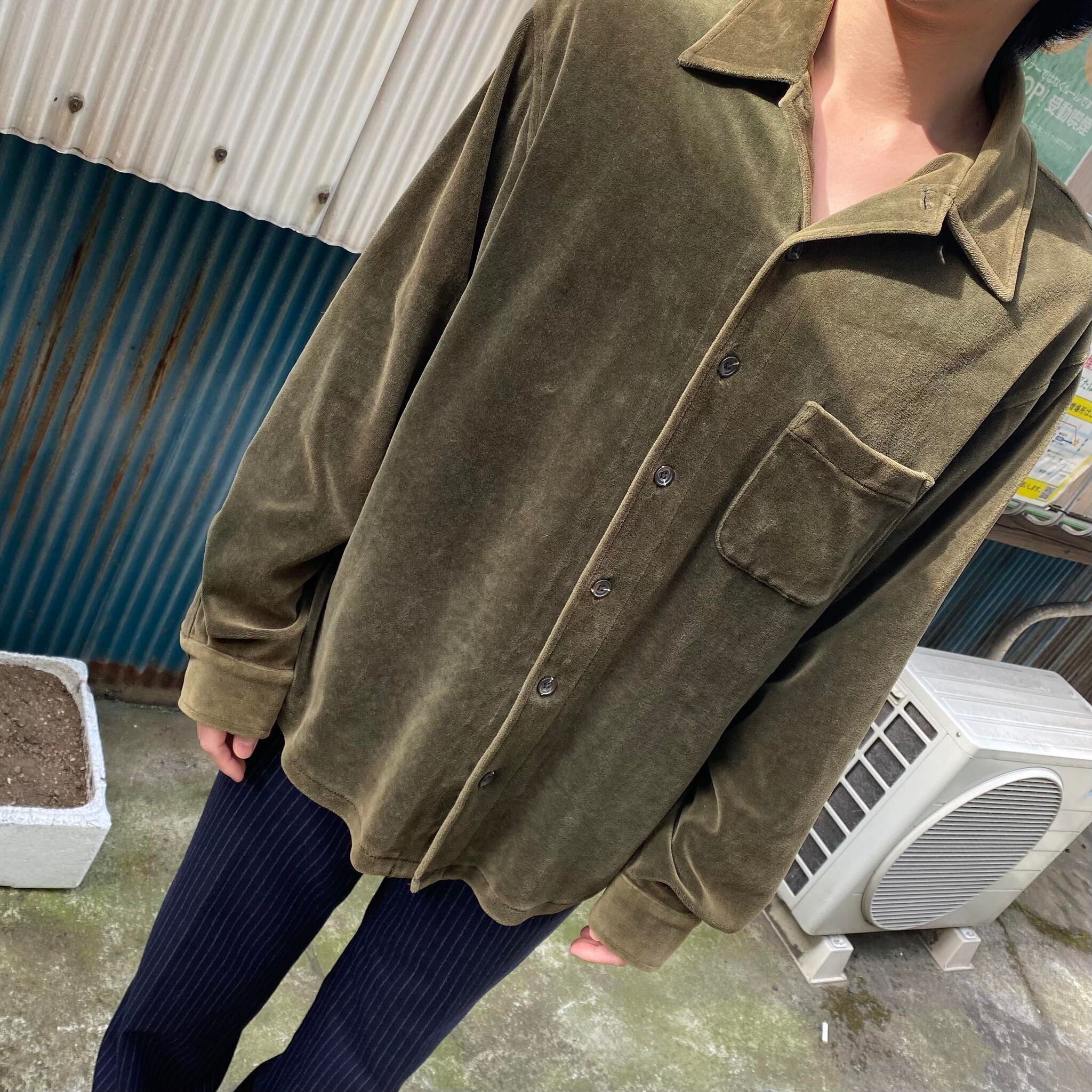 90's~ / 《BANANA REPUBLIC》moss green velour shirt