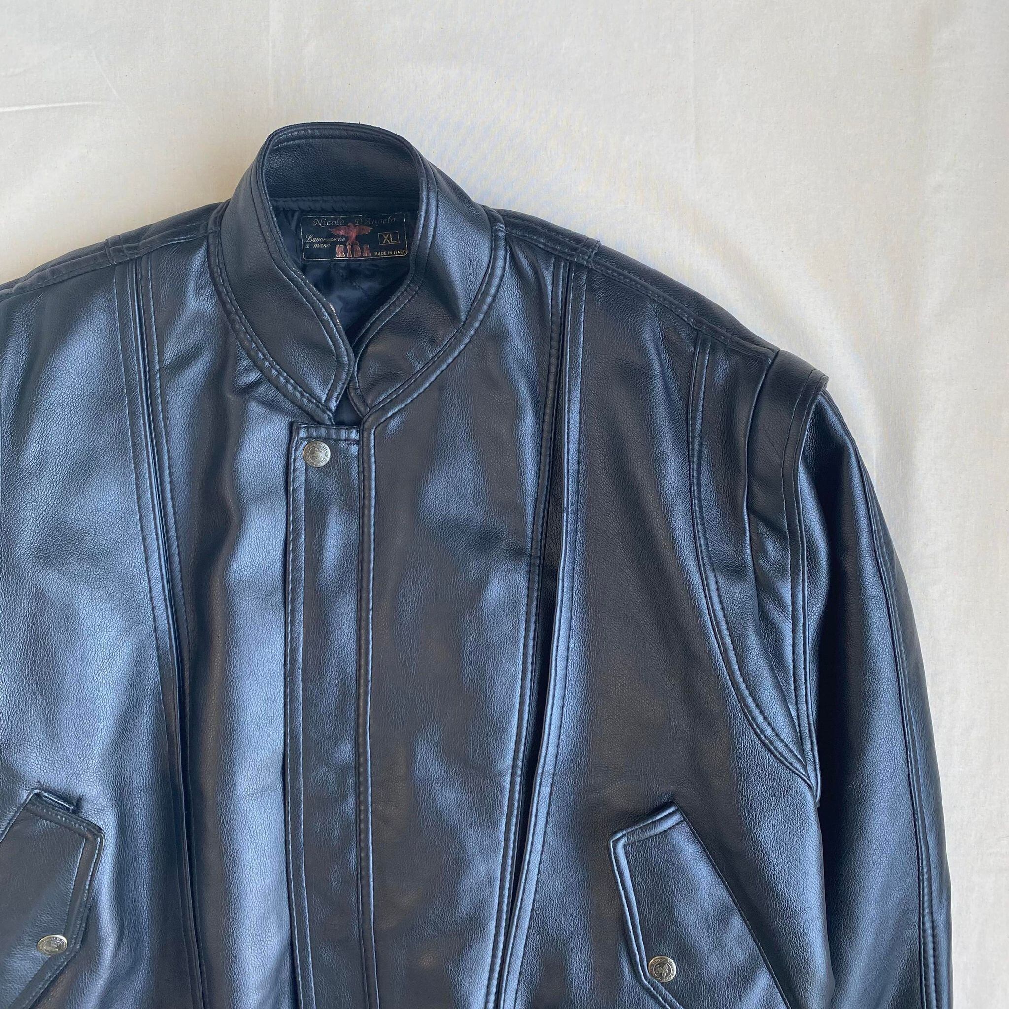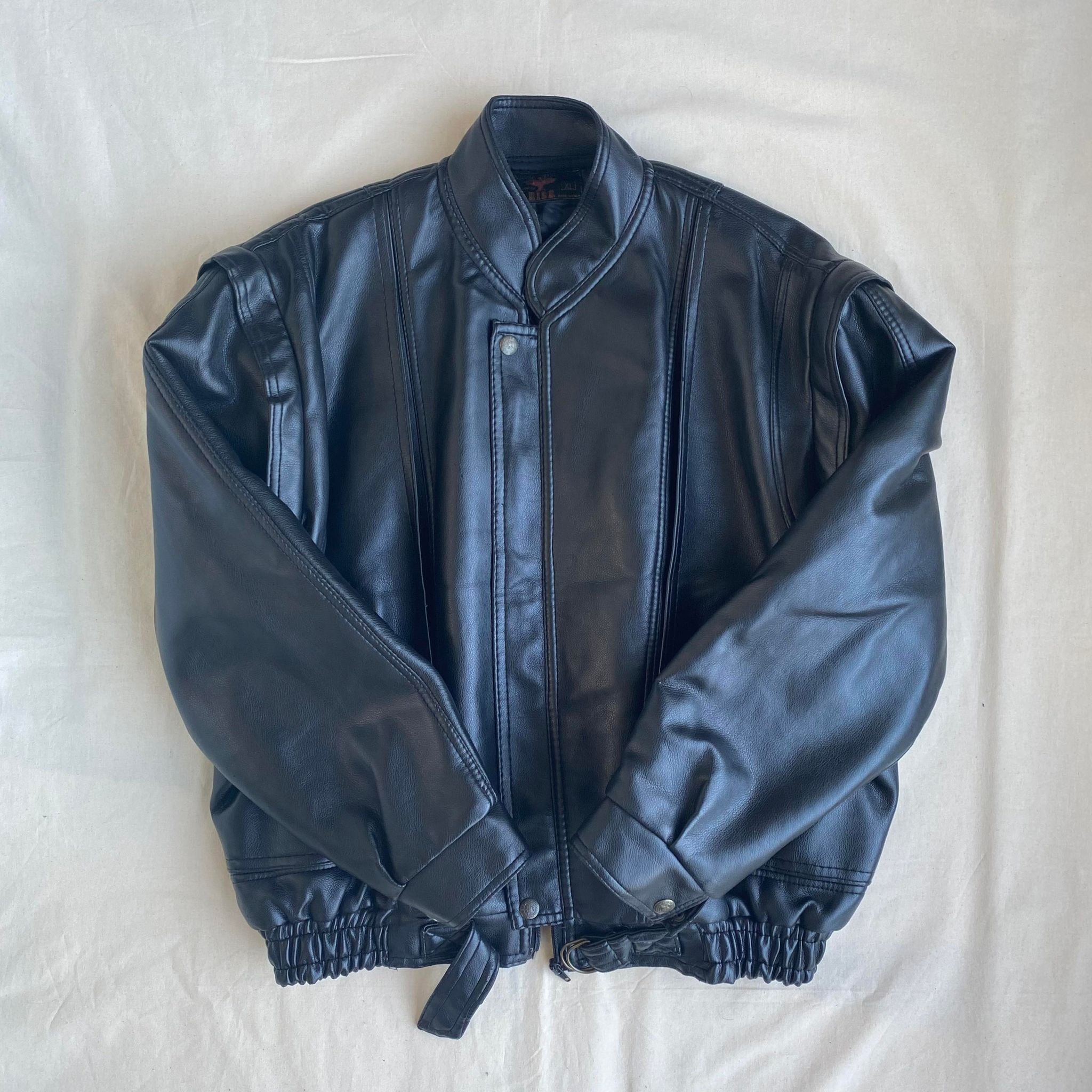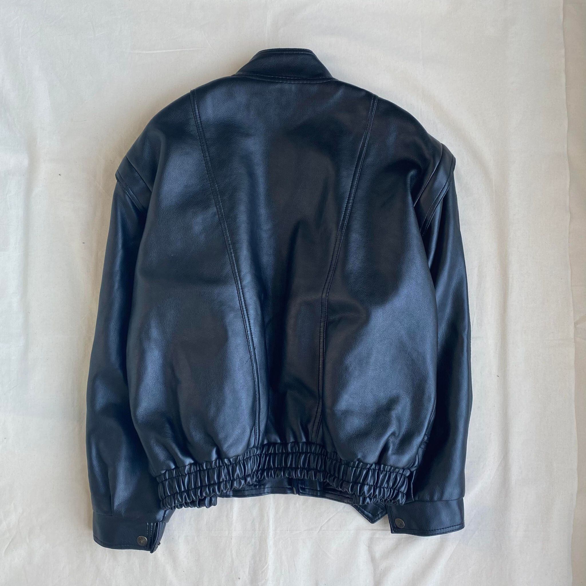 ショート丈のレザージャケット。身幅があって使いやすいデザインです。