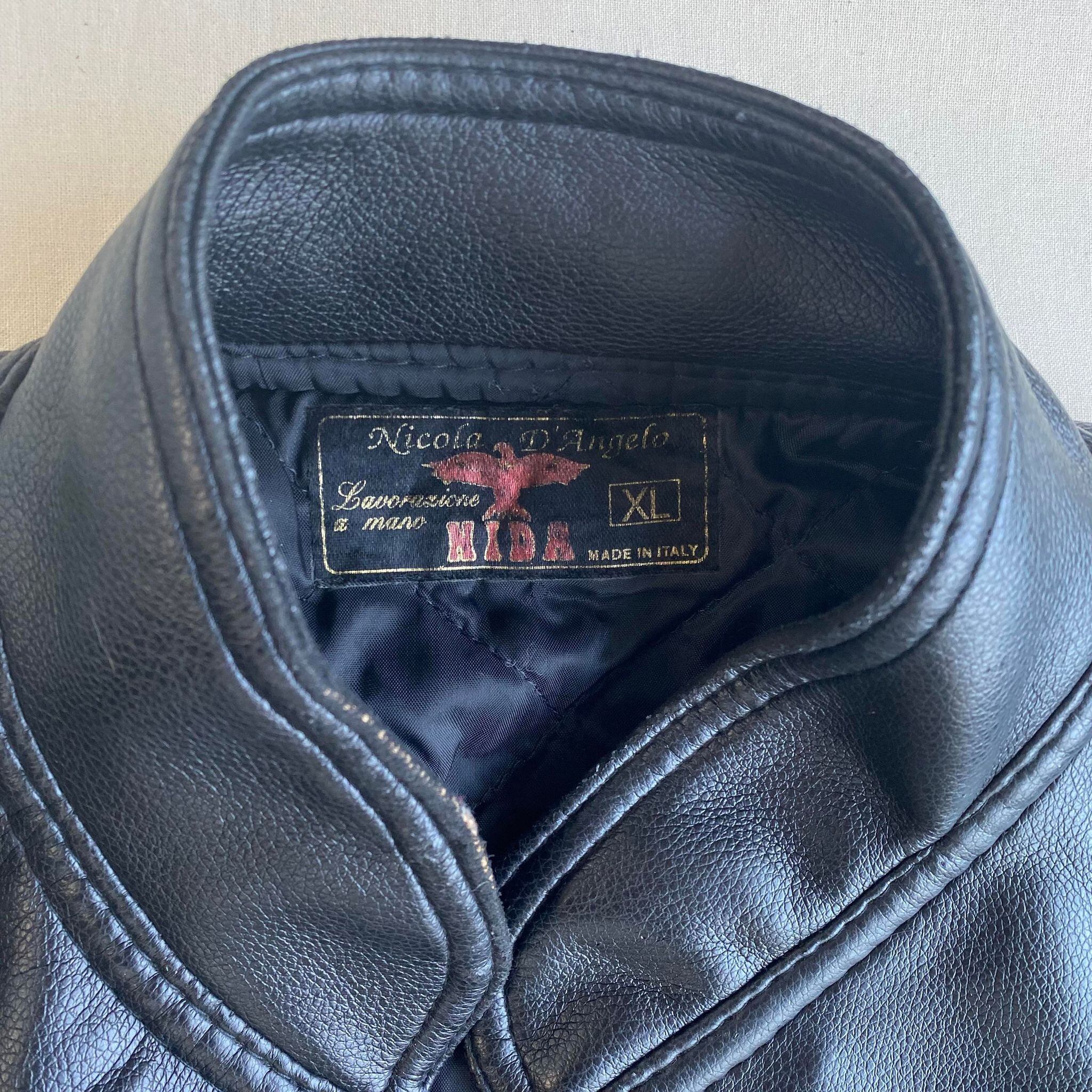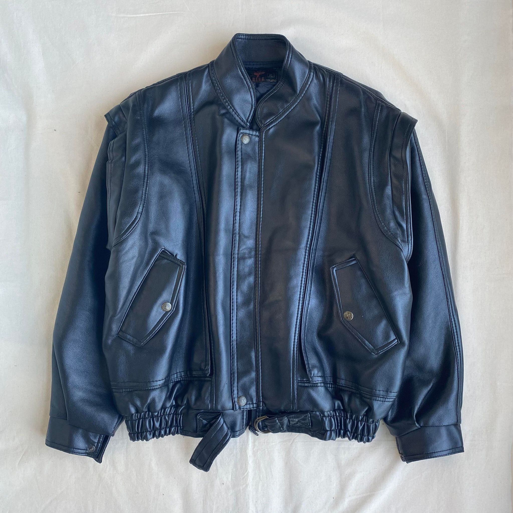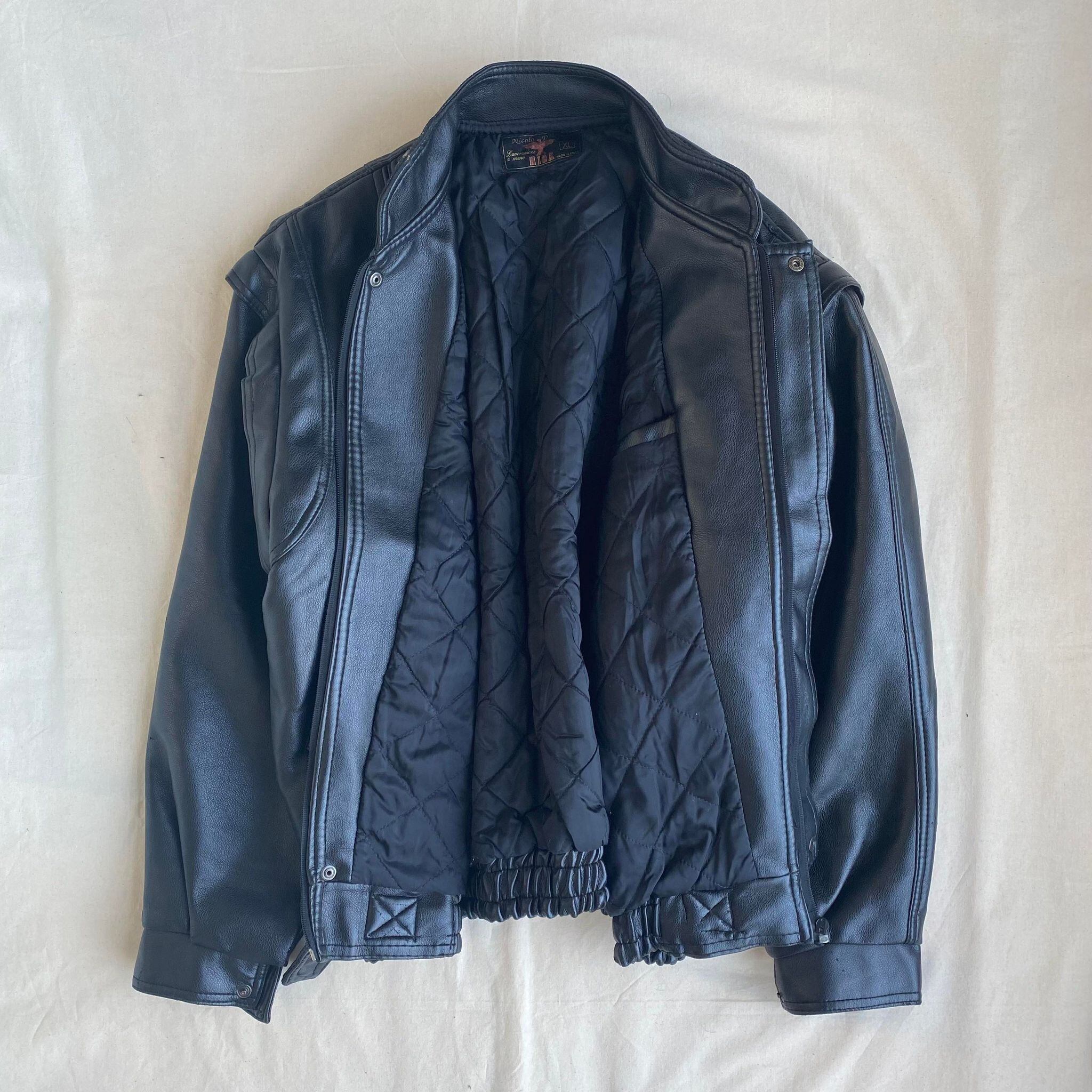 ショート丈のレザージャケット。身幅があって使いやすいデザインです。