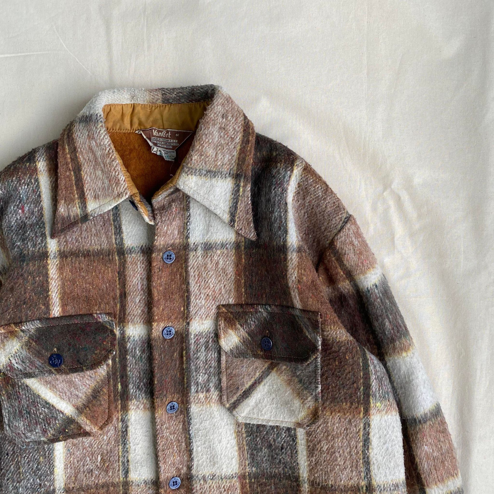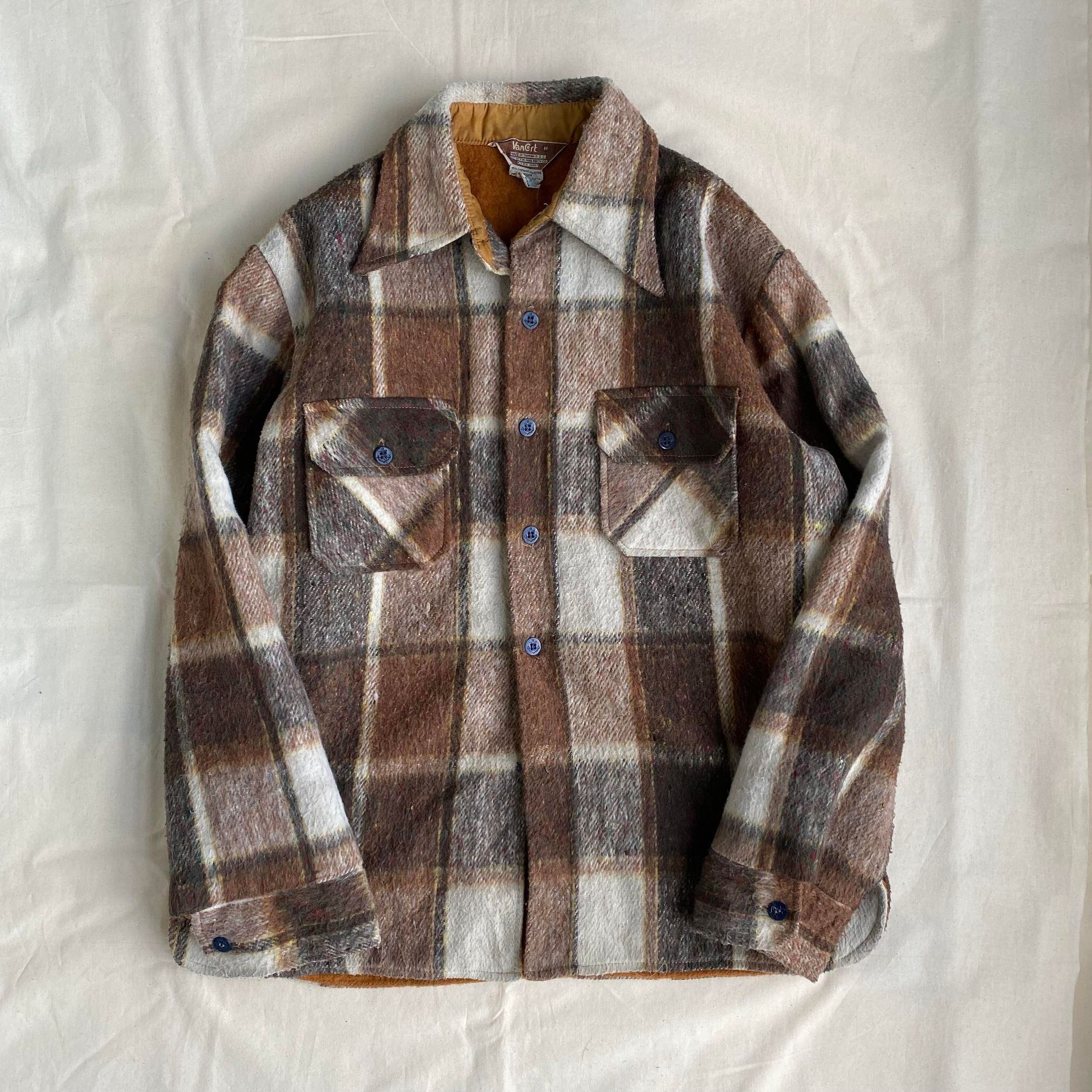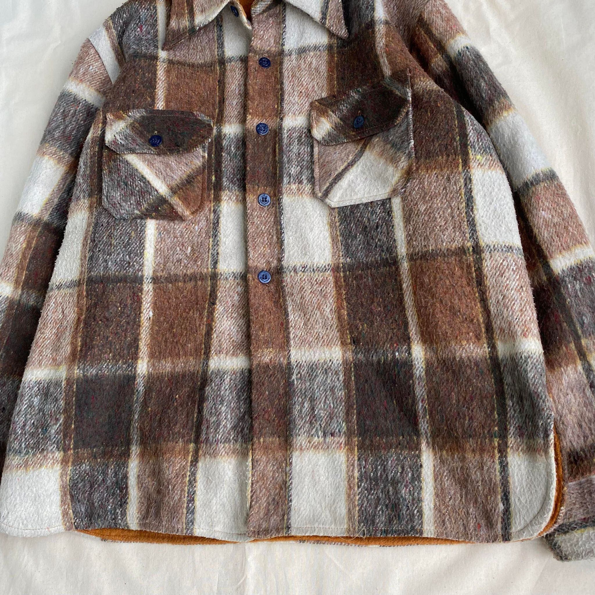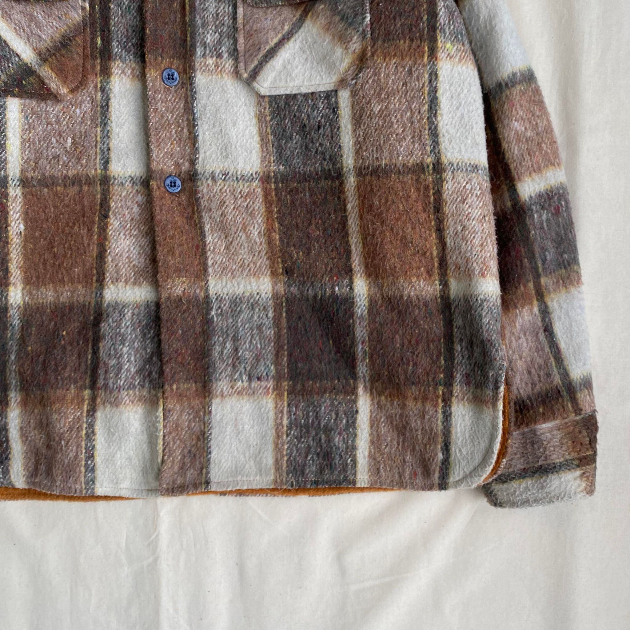 この手のシャツはチクチクしそうですが、こちらは肌触りが良いタイプ。重厚感のある素材ですが、茶×白の色合いで優しい印象になっているところも良いです。ライニングのオレンジもお気に入りポイント。