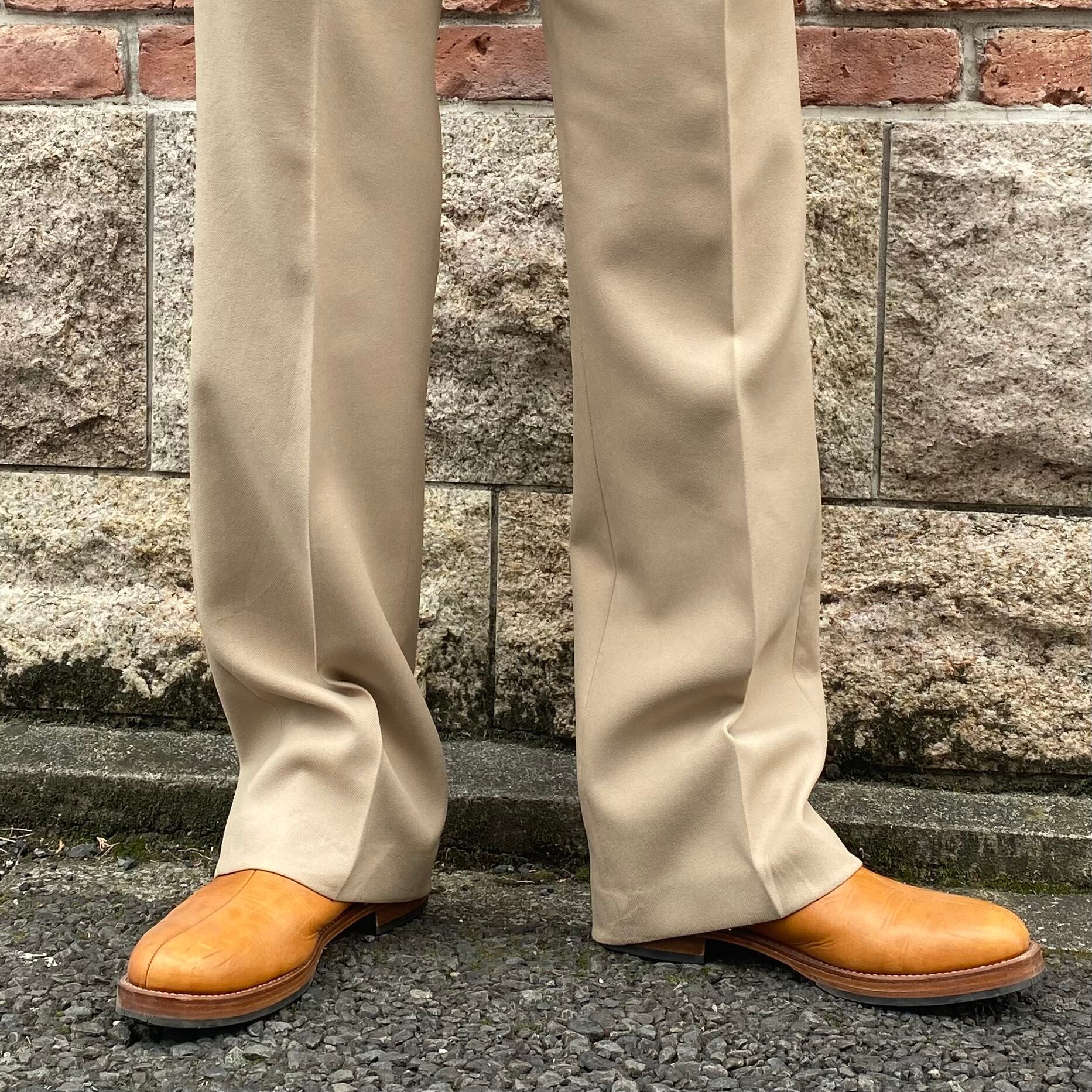 ベージュのアクションスラックス。