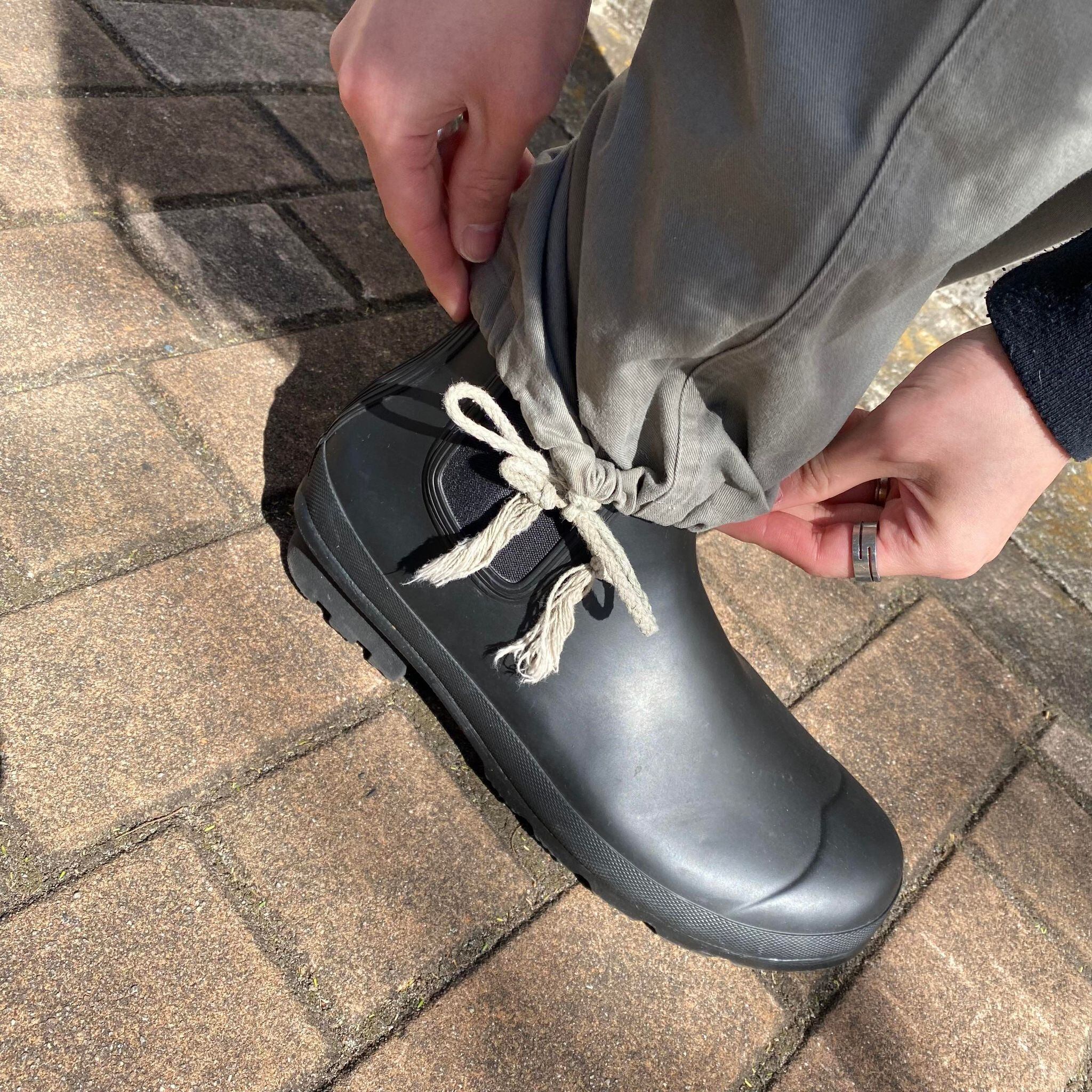 裾にあるドローコードは気分で縛って上げて、夏はサンダルと合わせても◎