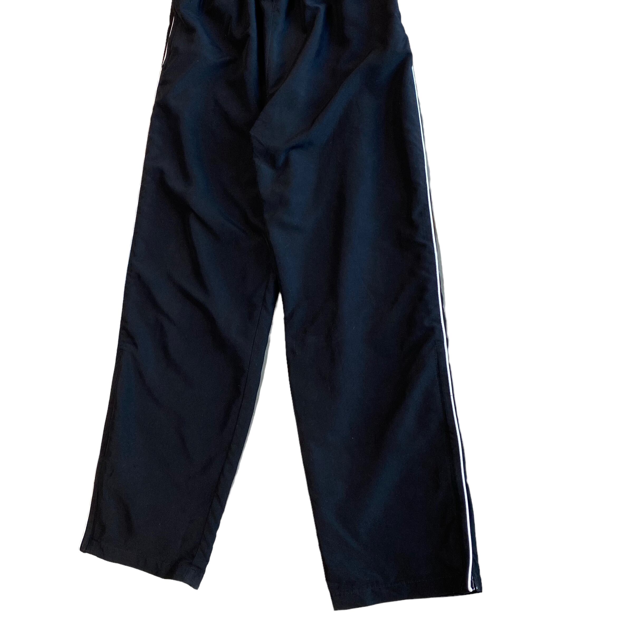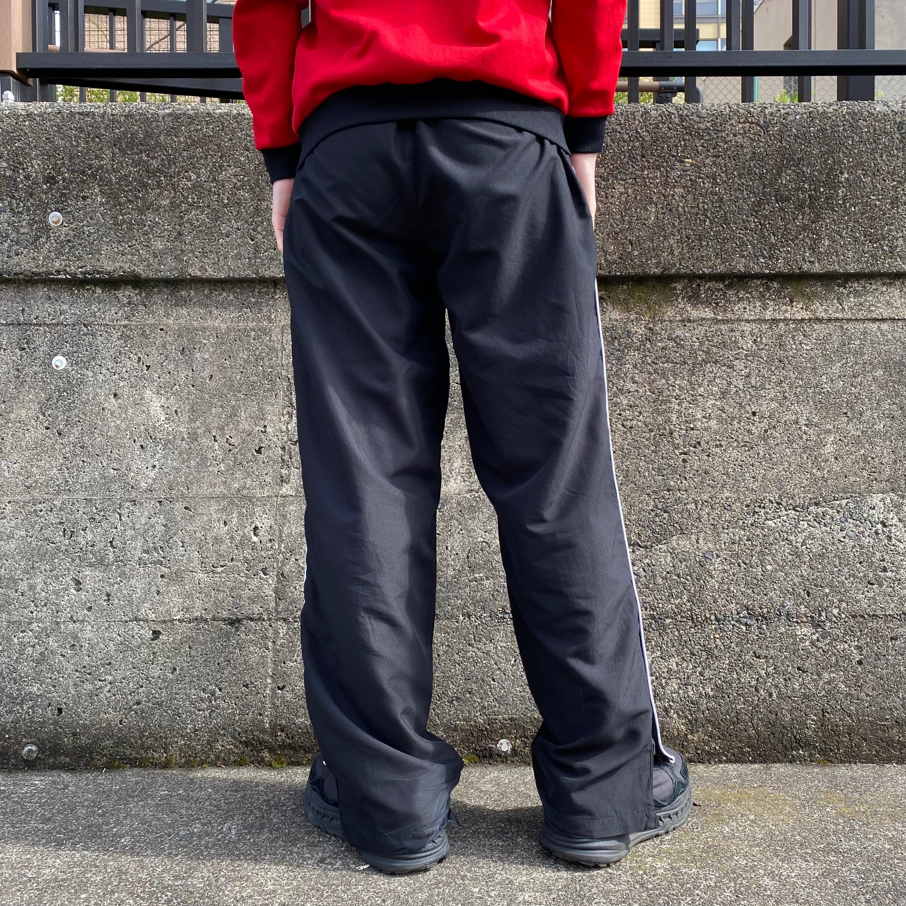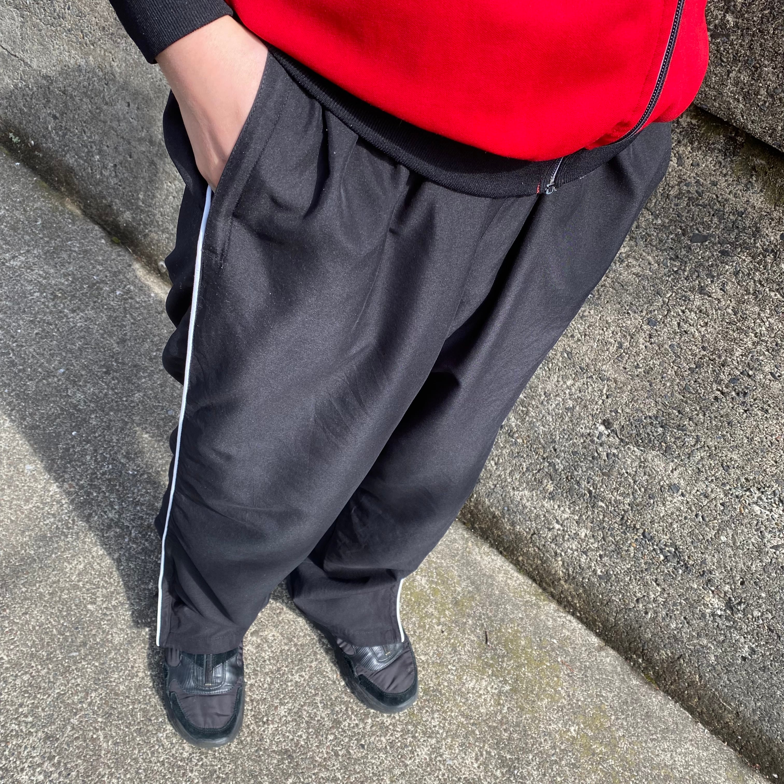 通常のトラックパンツのように太めのテープがつくのもいいですが、これくらいシンプルに潔くサイドラインが入るデザインもいいですね。