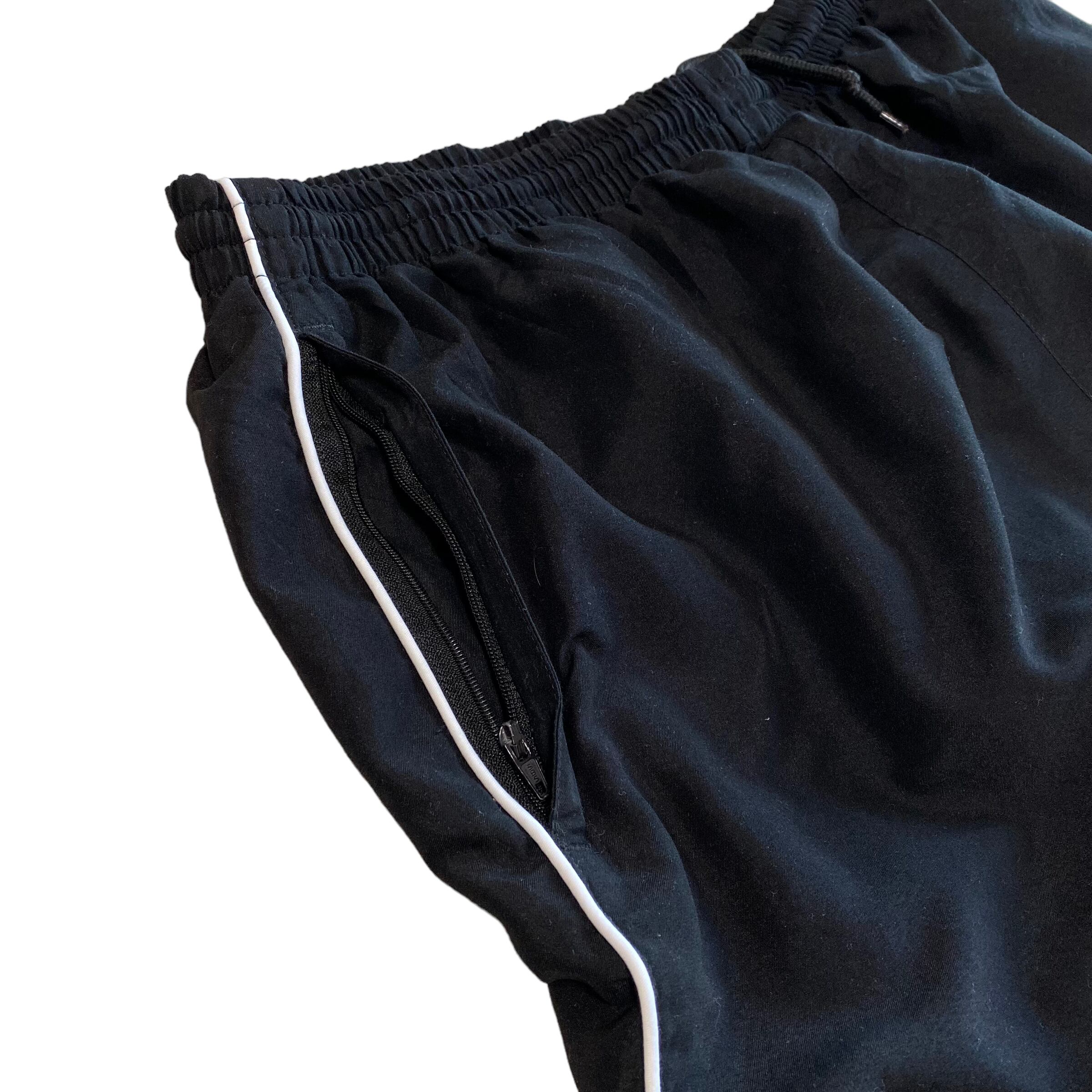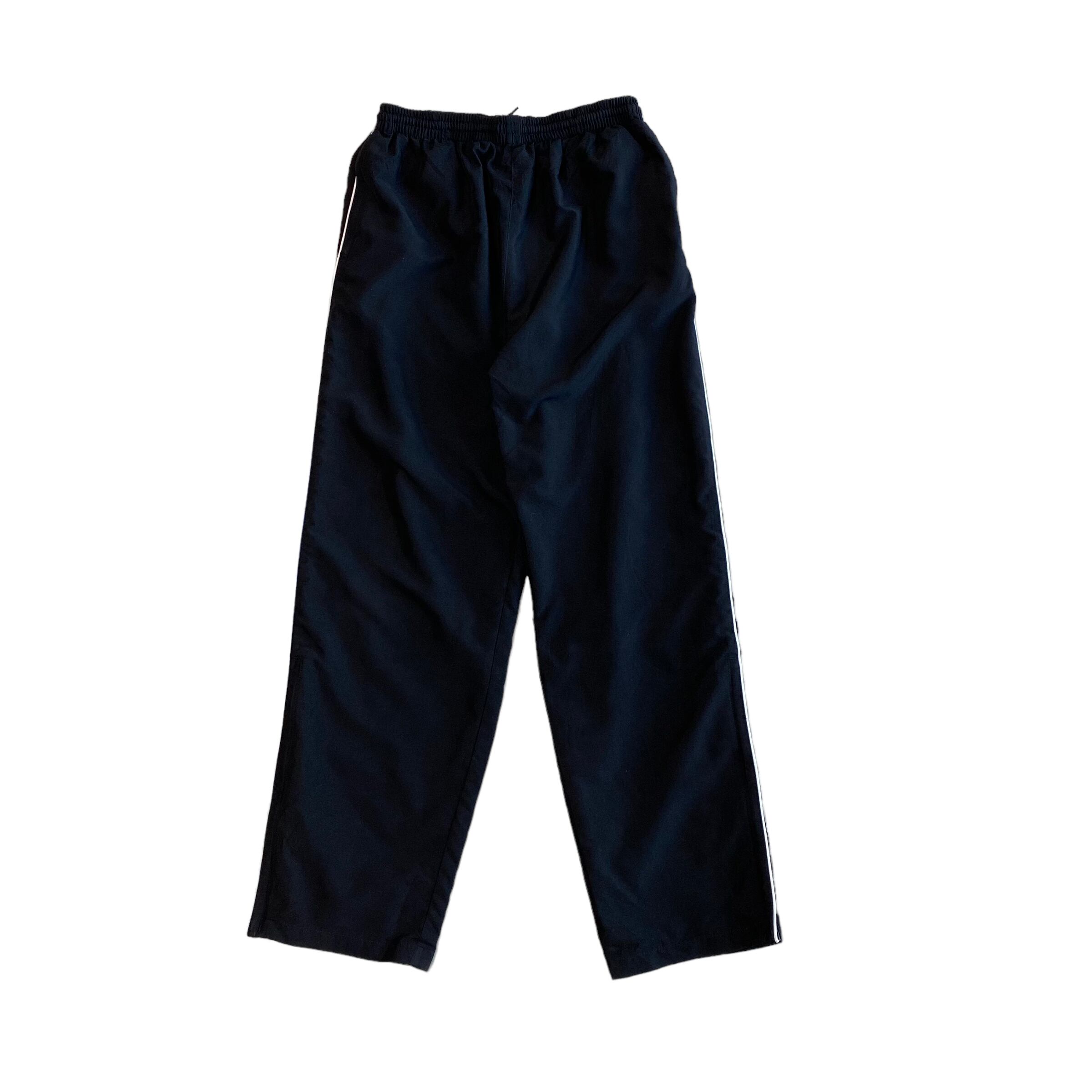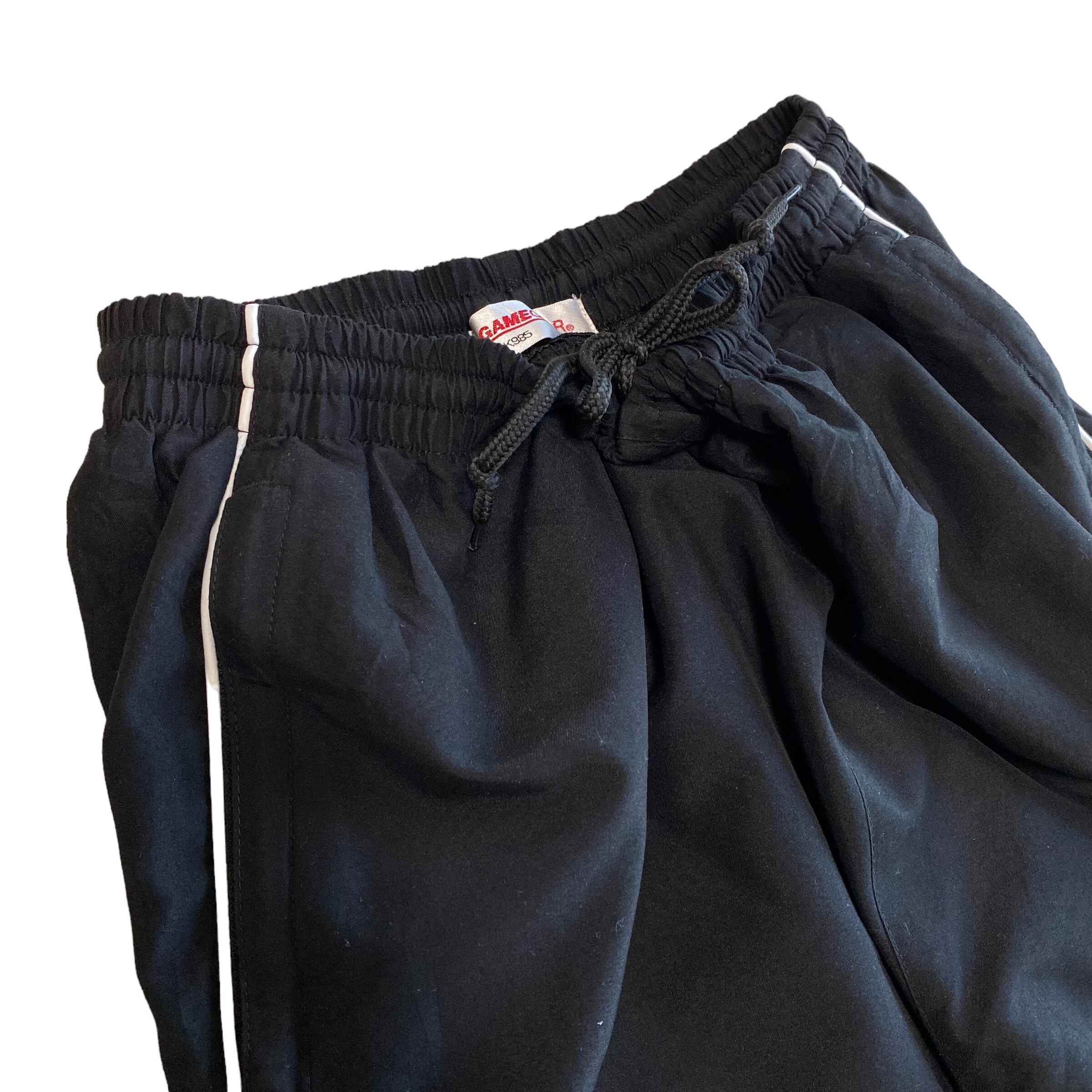 通常のトラックパンツのように太めのテープがつくのもいいですが、これくらいシンプルに潔くサイドラインが入るデザインもいいですね。