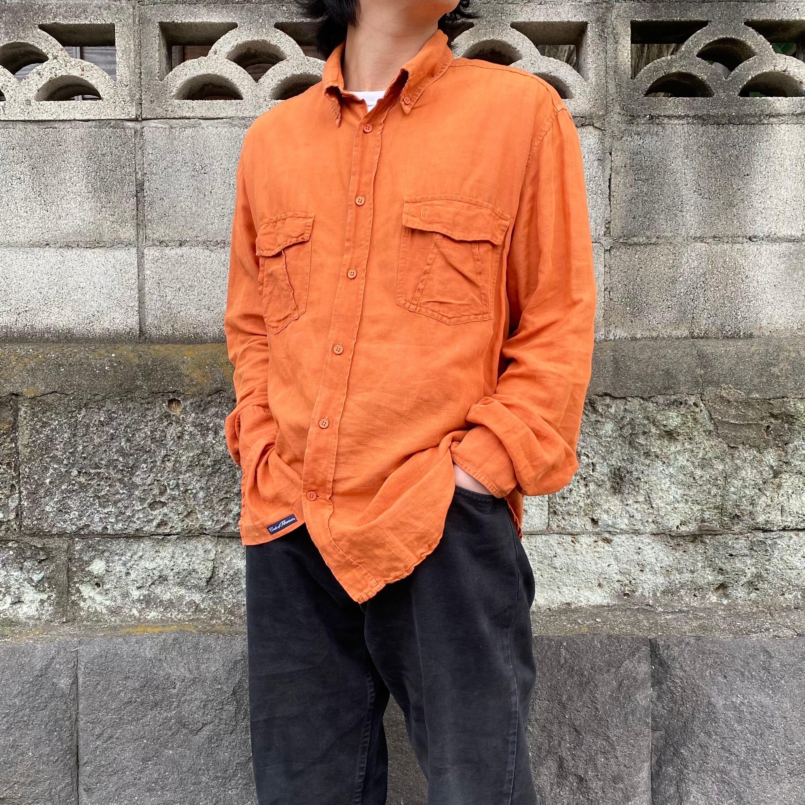 90~00's / orange linen mix shirt