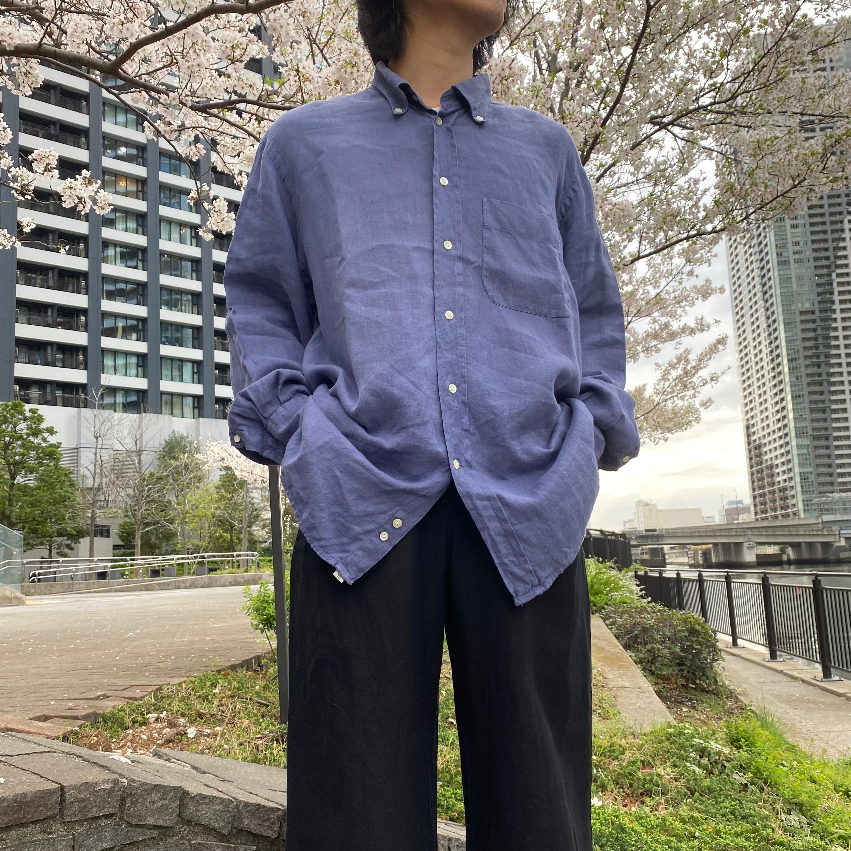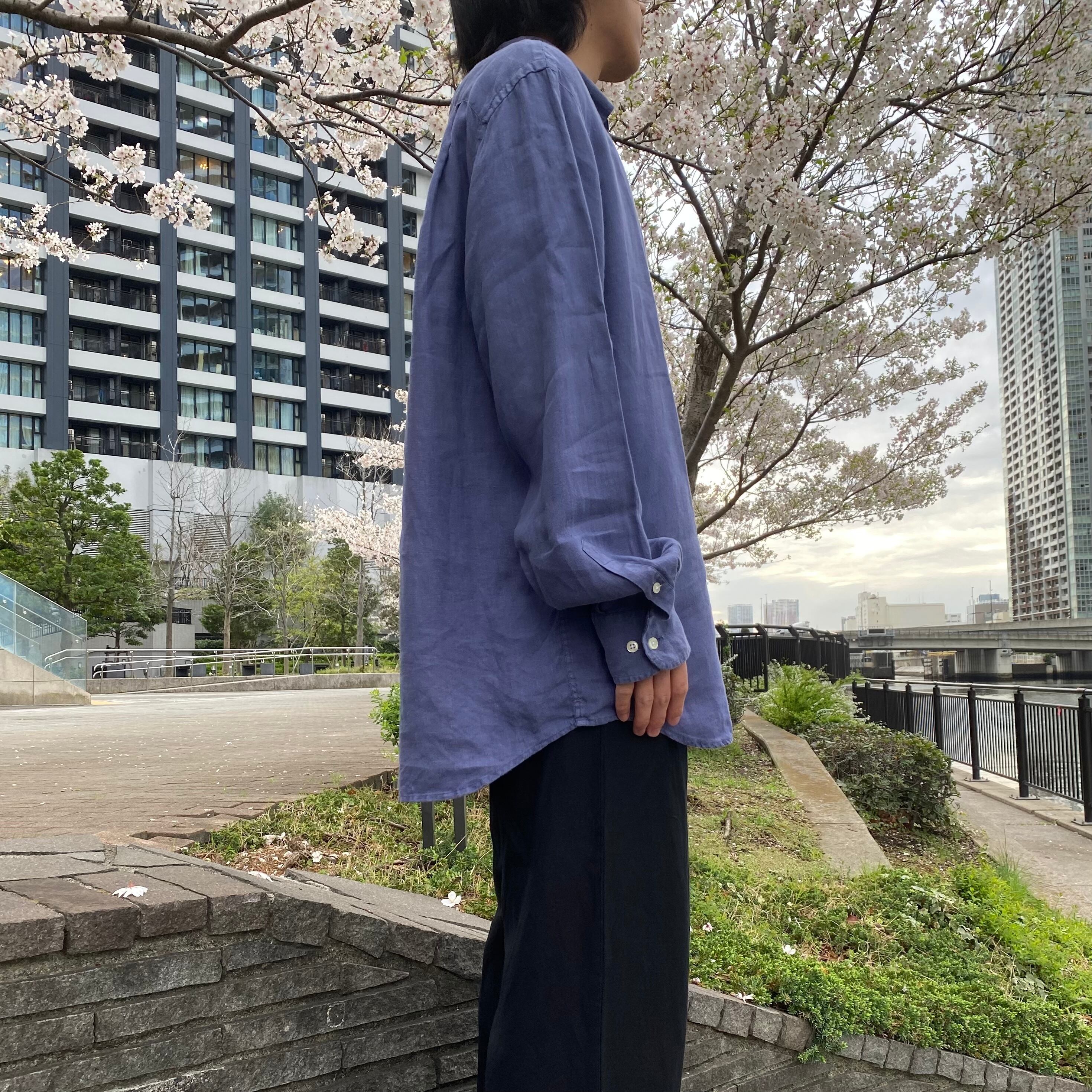 着丈、身幅がしっかりあるサイジングでリラックスしたスタイルに。リネン特有のテロッとした生地感で、裾や袖の揺れる感じががとても良いです。もちろん通気性はバッチリなので、春夏のお供にぴったりなアイテムです。