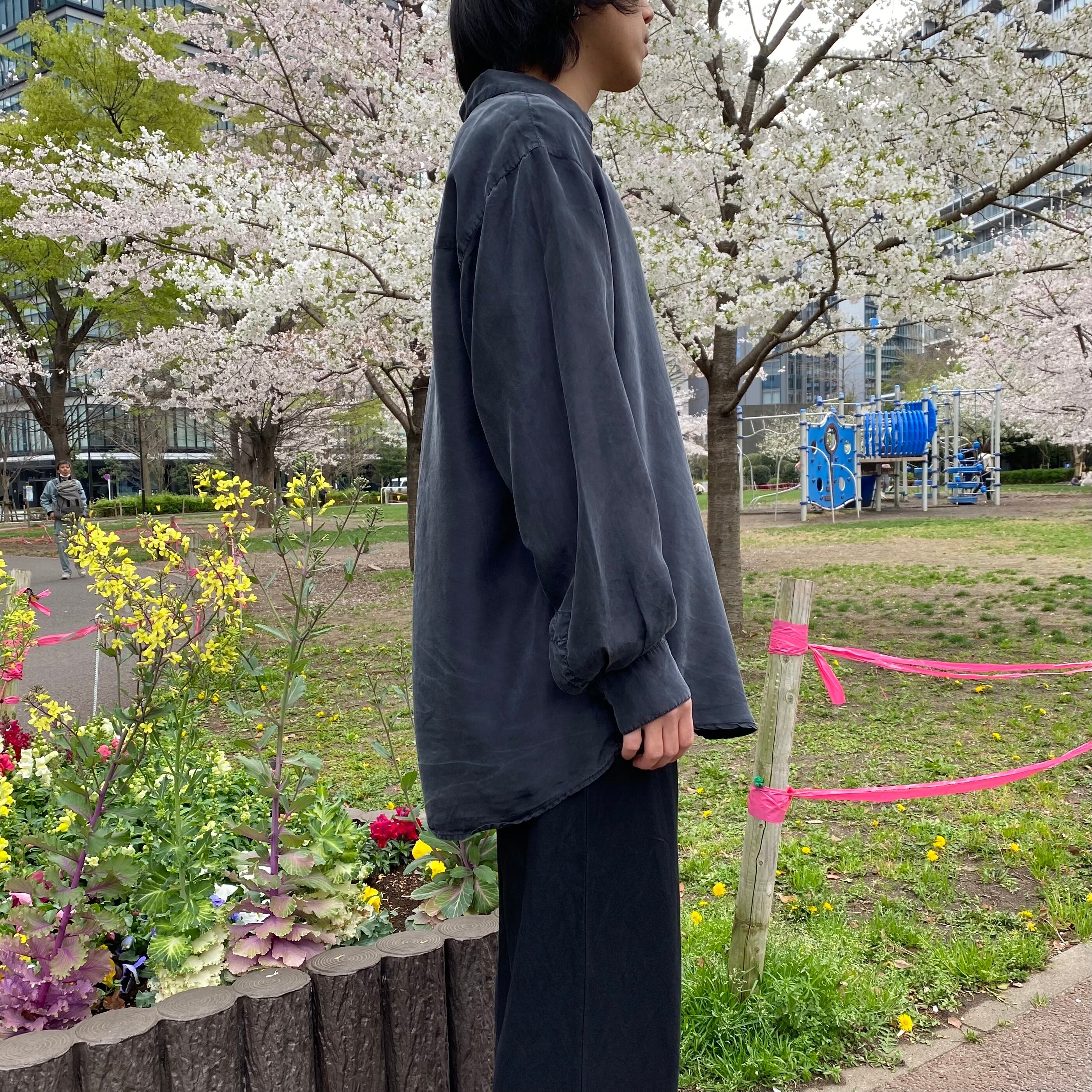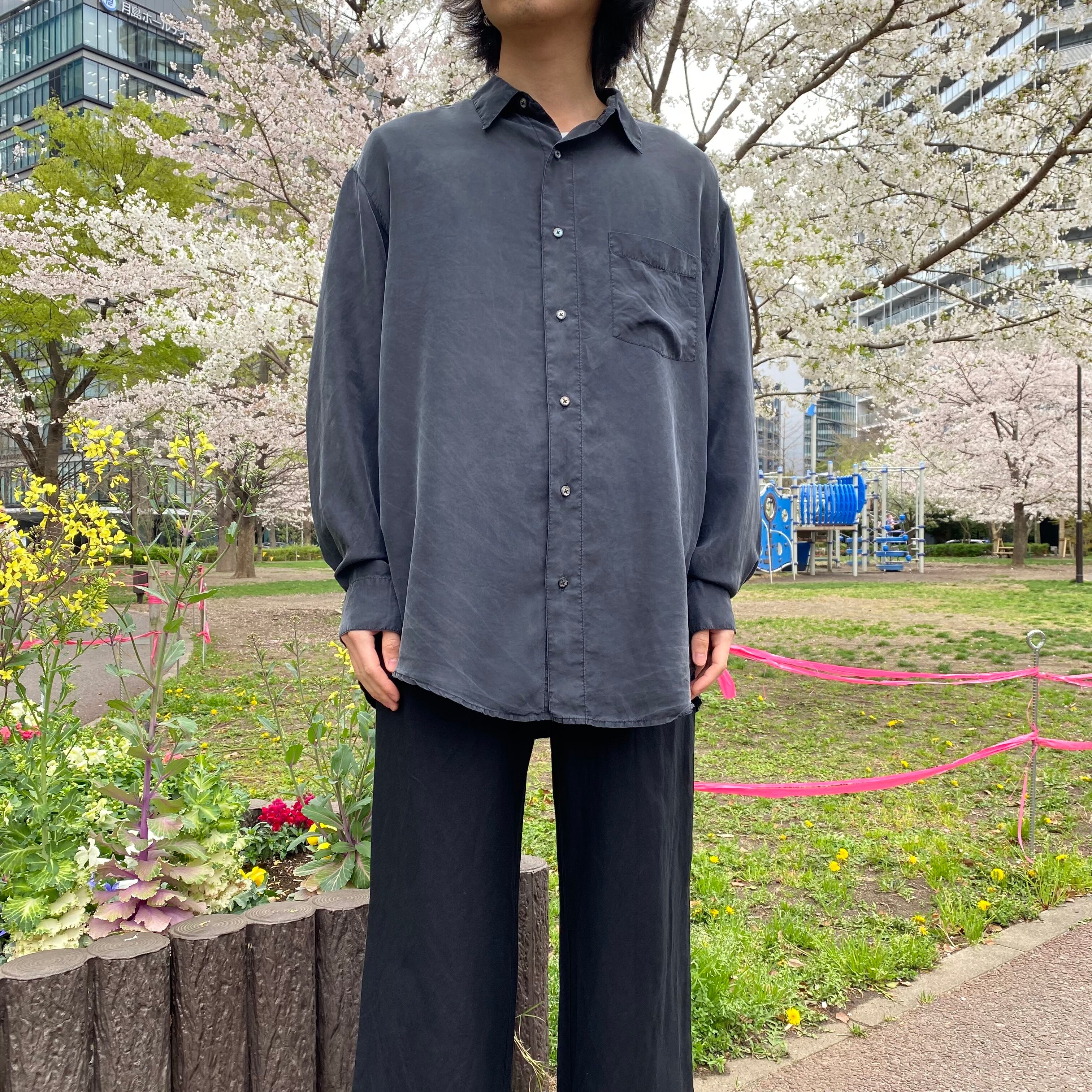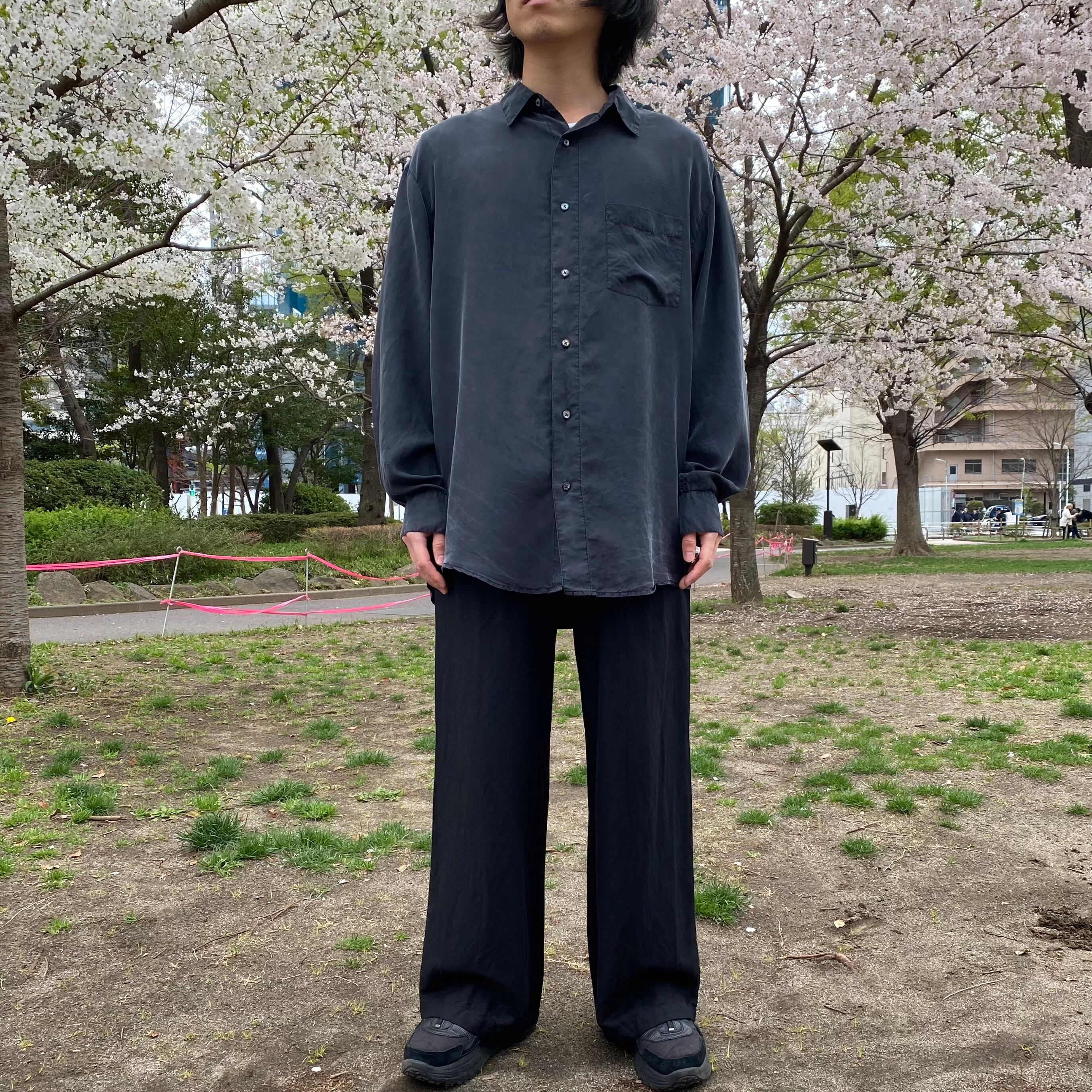 90's / black silk shirt