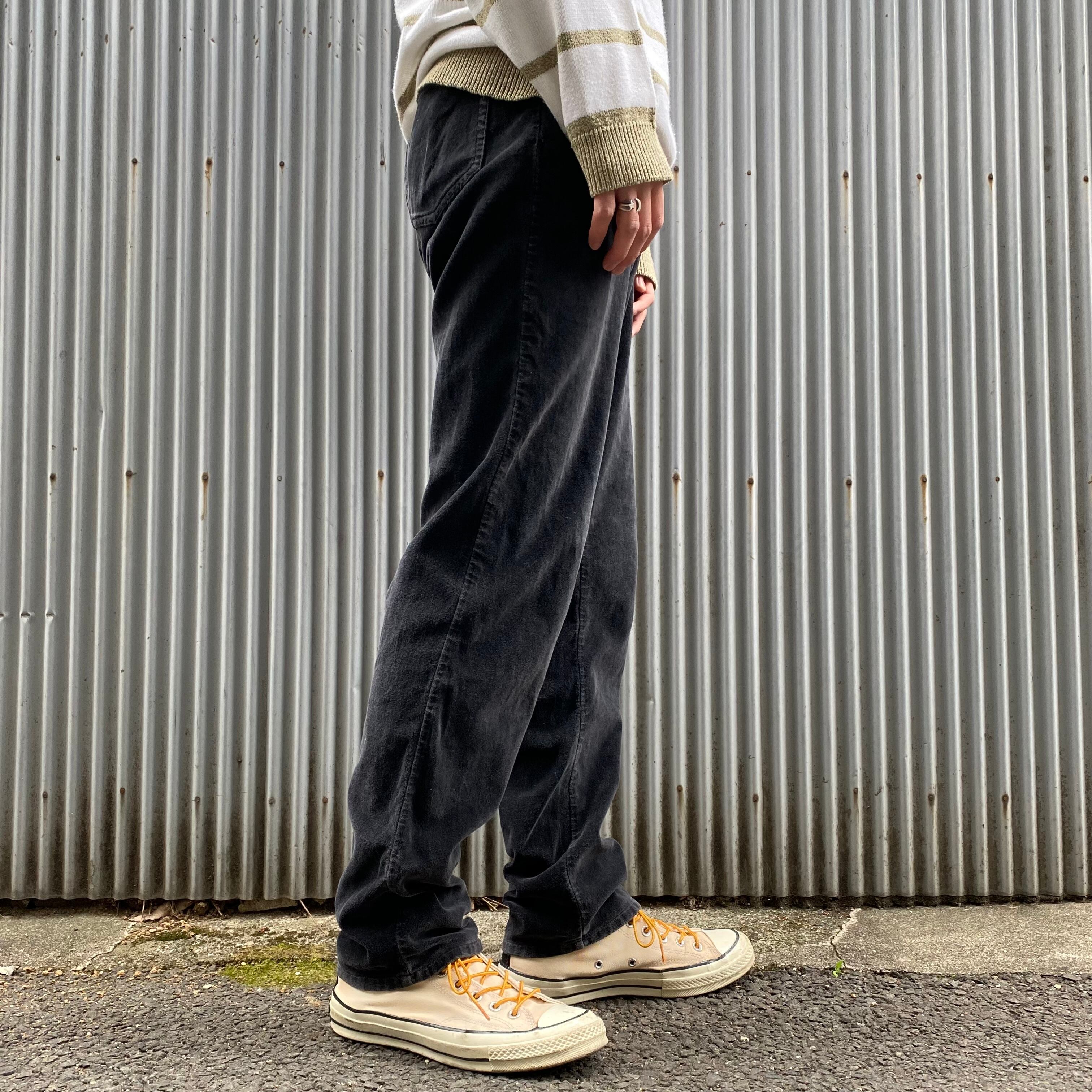 少し光沢があり上品な印象のスエード素材で、デニムとは違った風合いがあり面白いです。素材はコットン100%でストレッチ感と軽さがあり、履きやすさ抜群。長時間外出っていう時にもお供できちゃうかと思います。