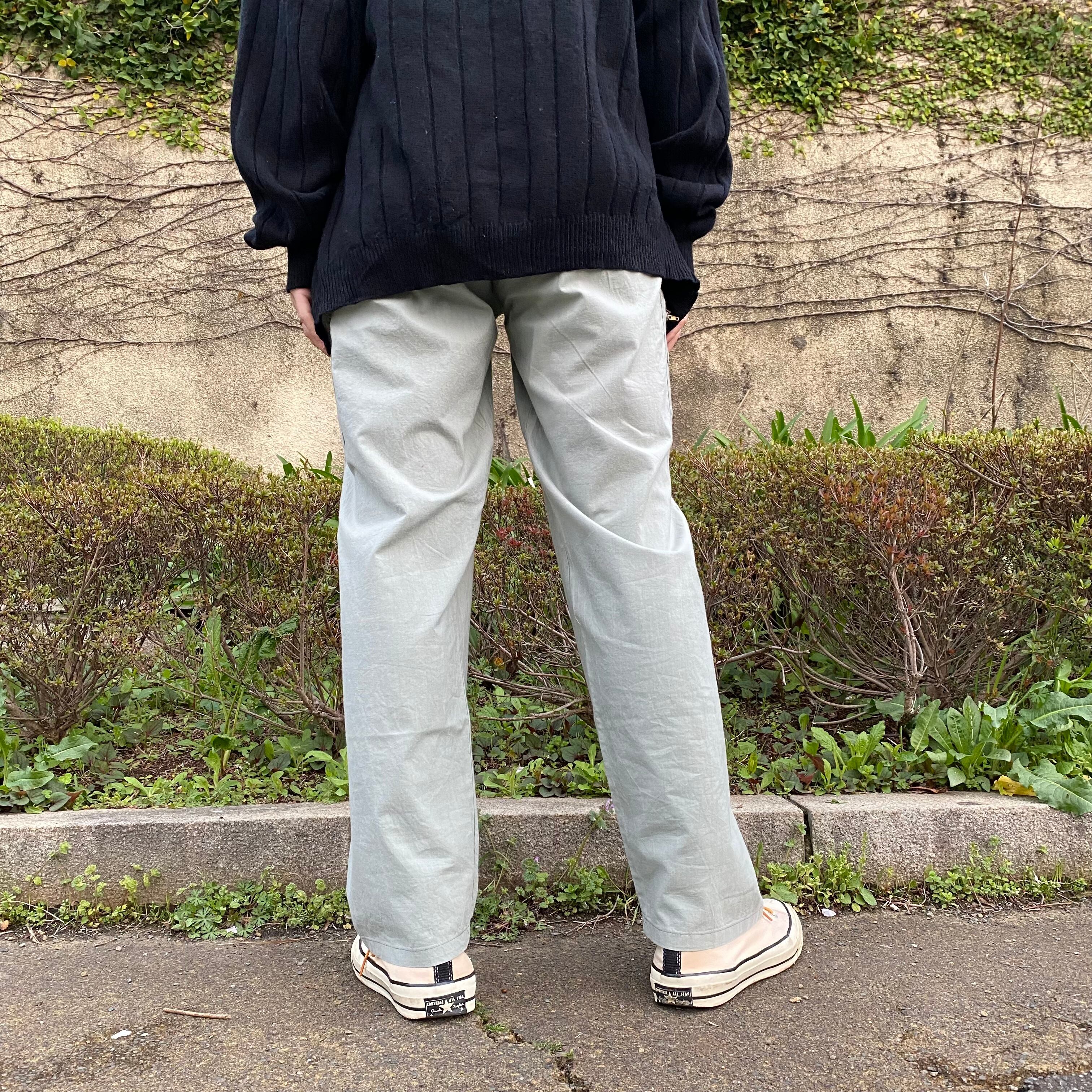 素材は薄手のコットンで、とても軽く履いていてかなり楽チンです。が、綺麗なストレートシルエットなので、ダル着感はほぼゼロ。楽な履き心地と、綺麗なシルエットの両立がしっかりされています。
