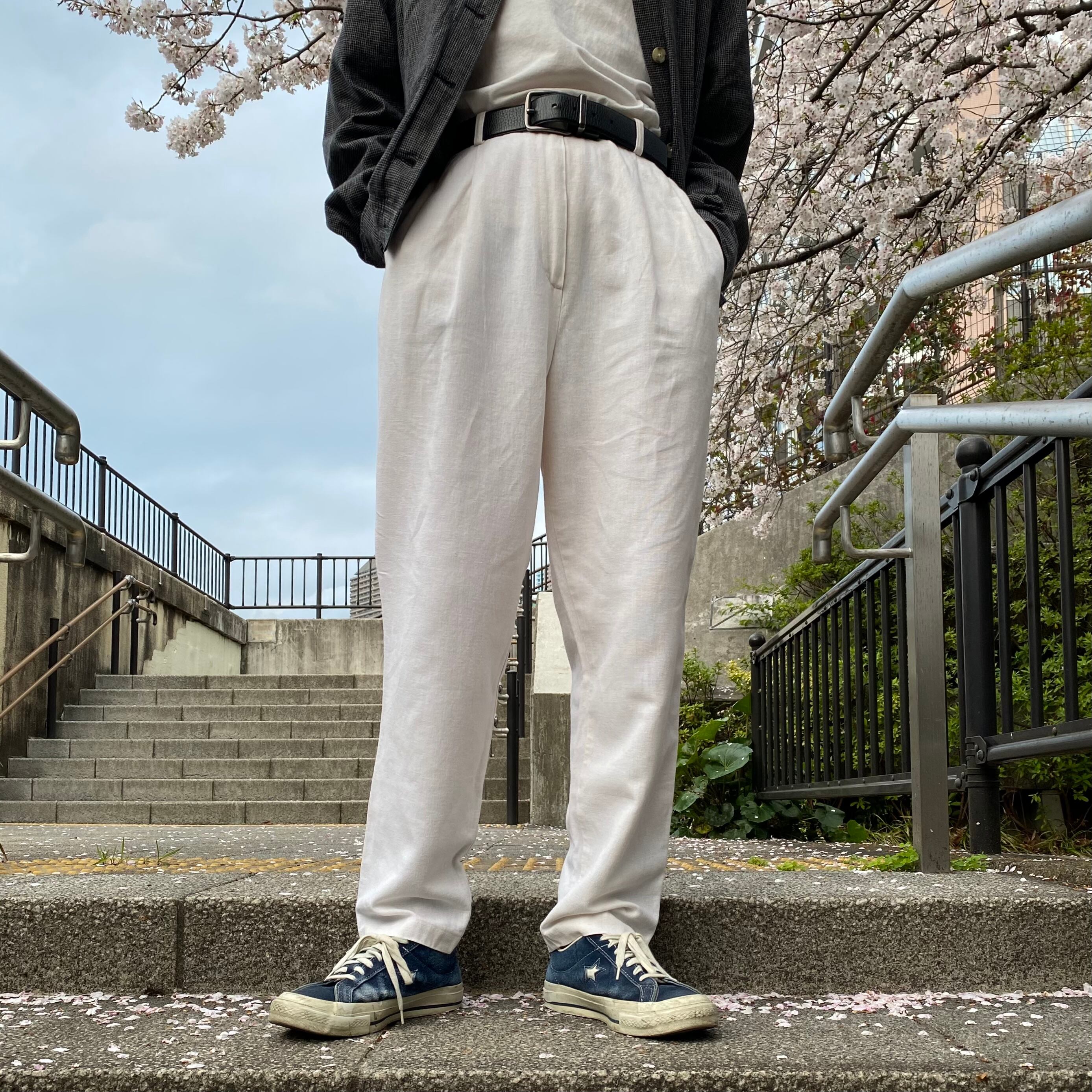 イギリスの百貨店チェーン、マークス&スペンサーの自社ブランドである「St.Michael」からリネンミックスのパンツ。1928年からブランド終了の2000年まで愛され続けたイギリスを代表するブランドの一つです。