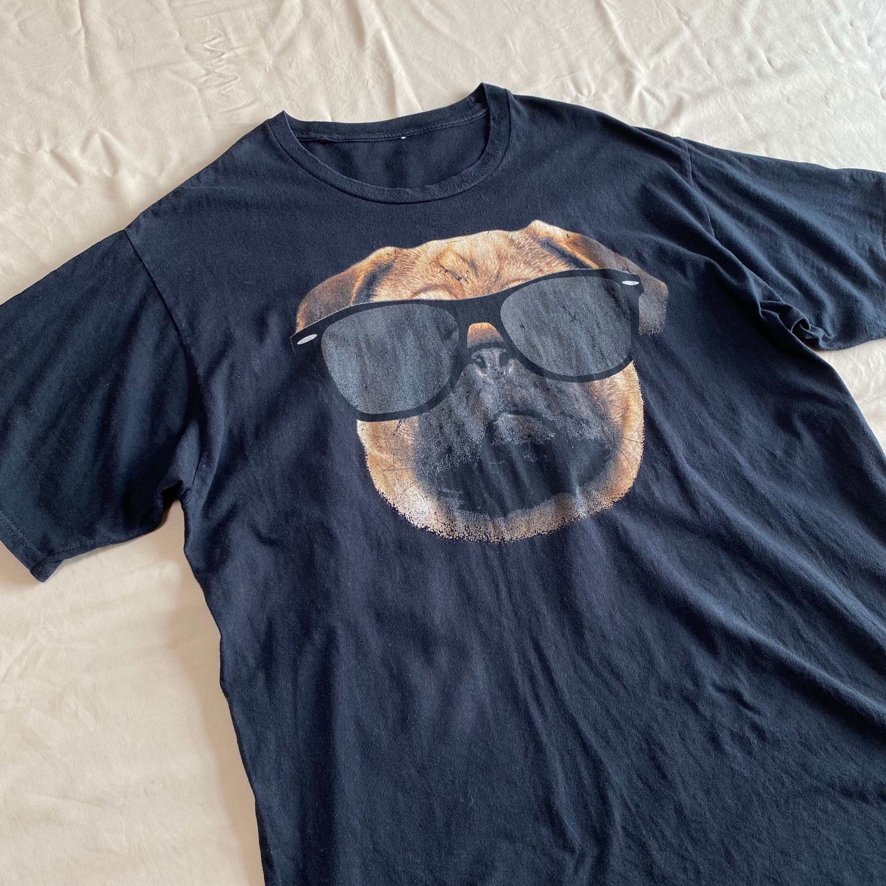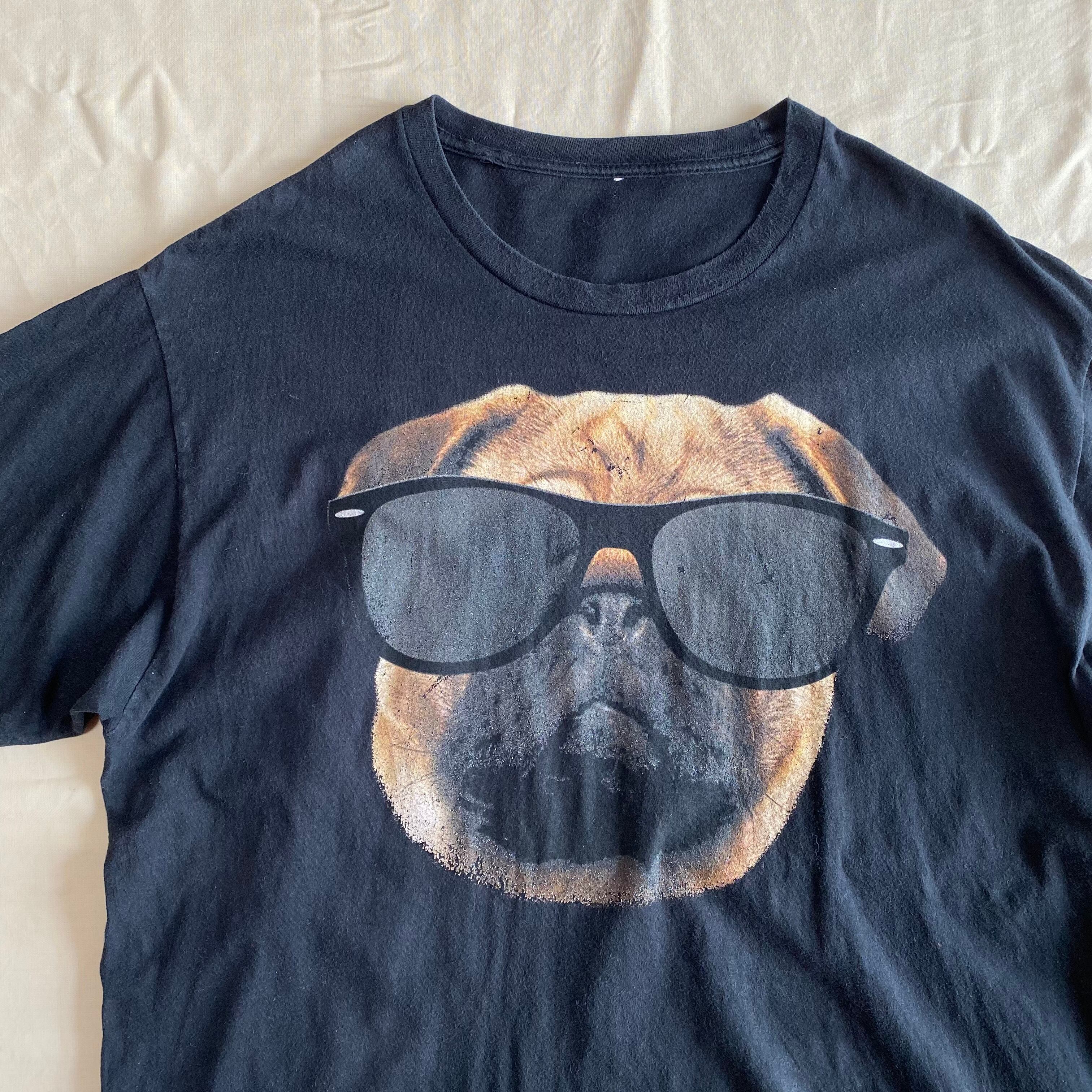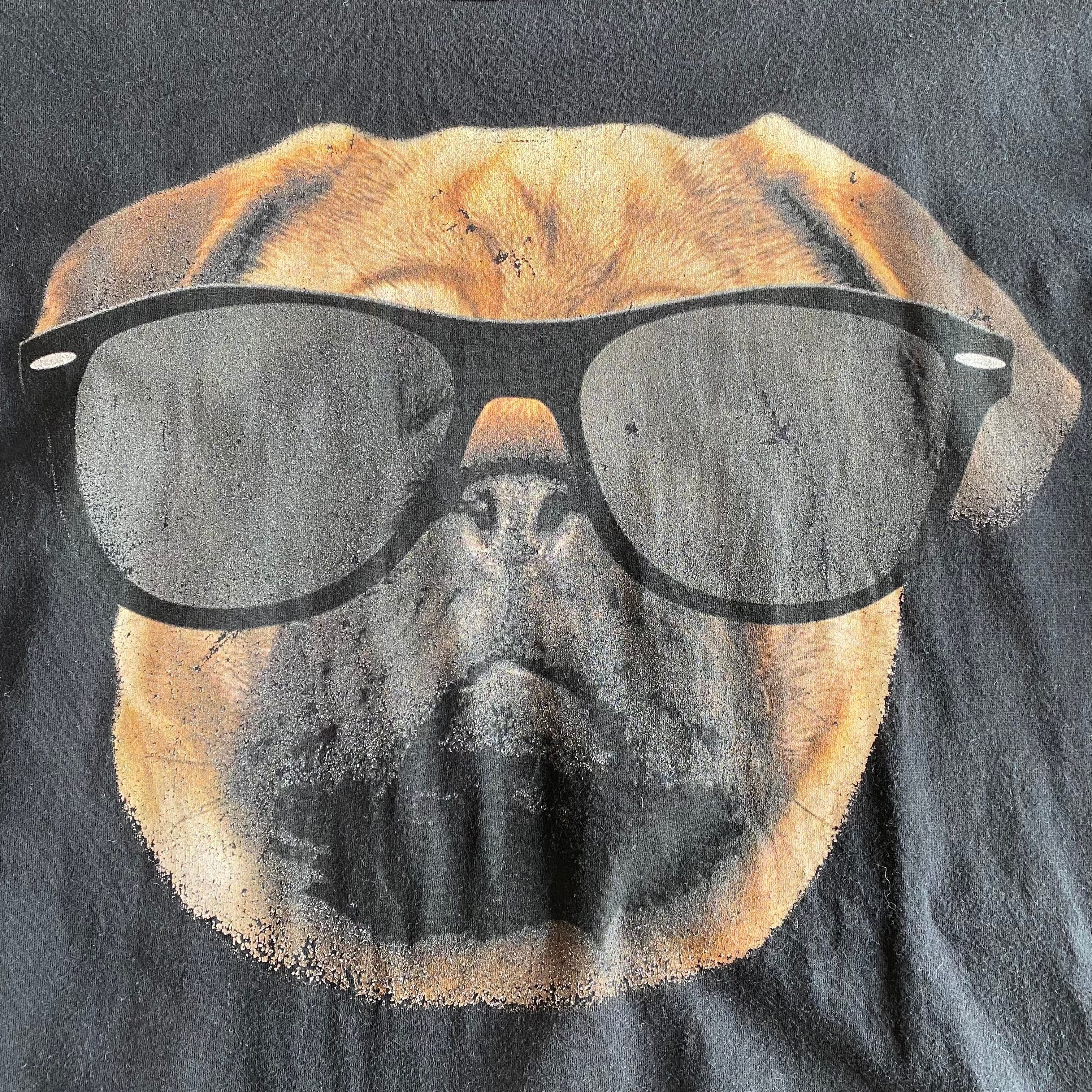その小顔に対してデカめのサングラスをかけたパグがドドンと中心に配置されており、インパクトがあります。