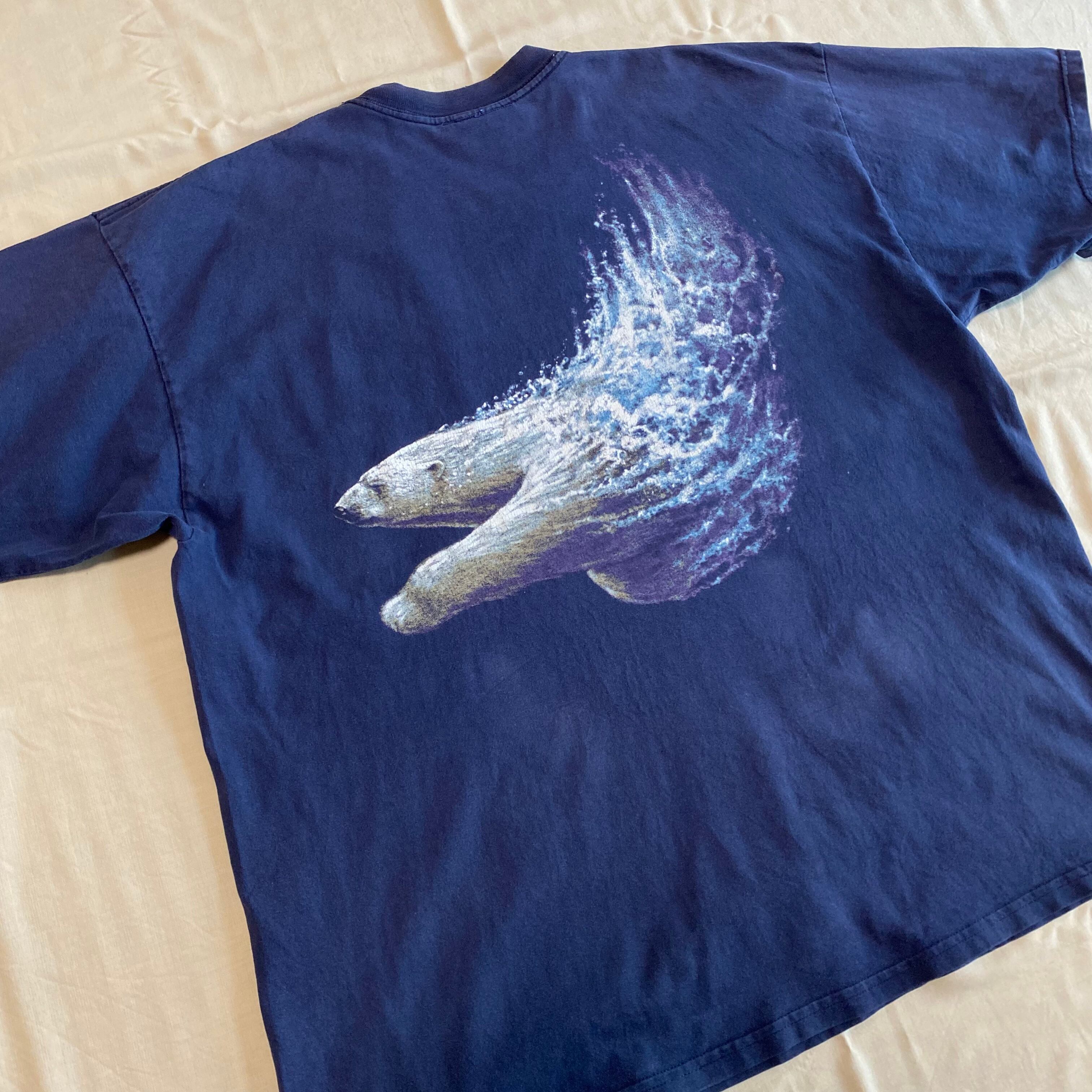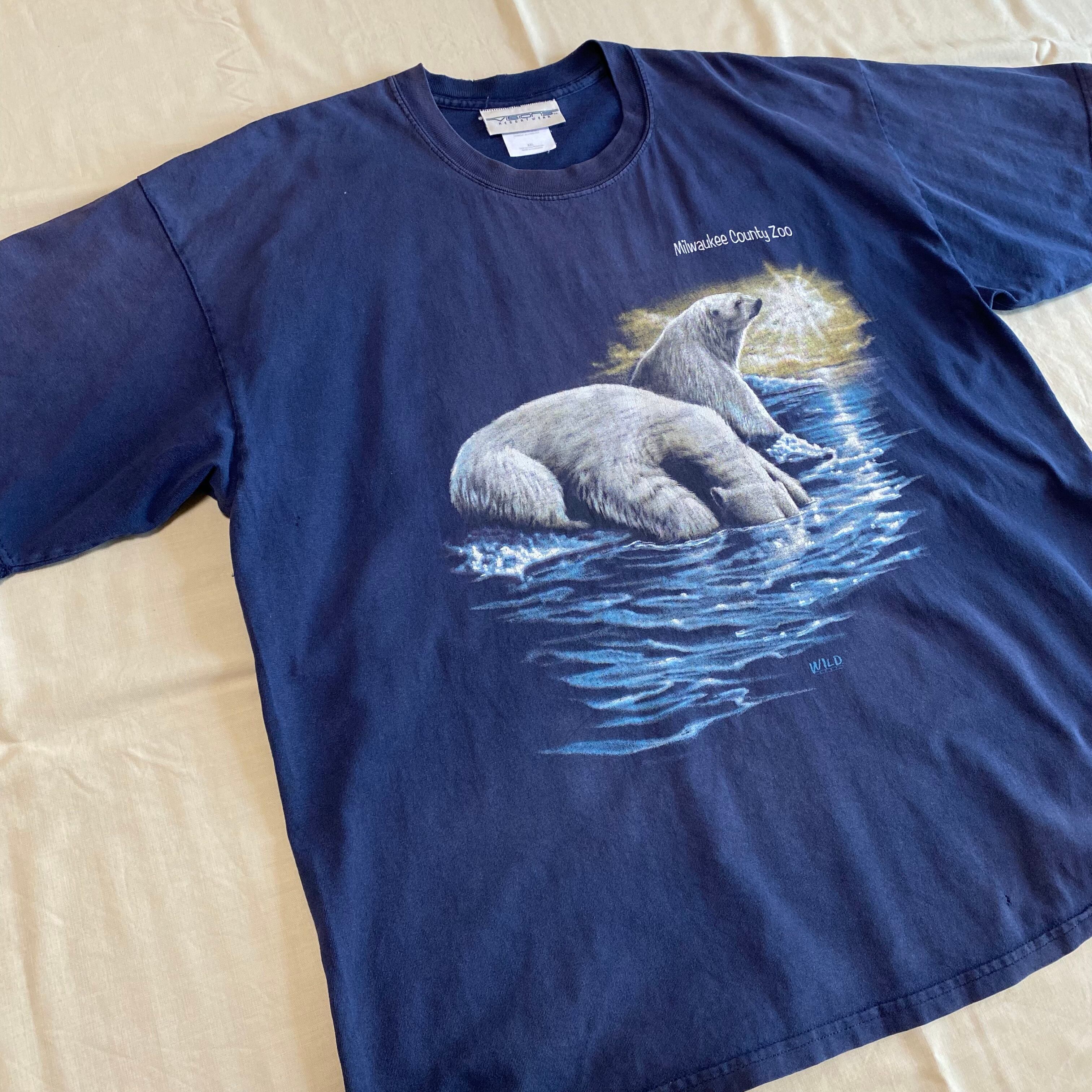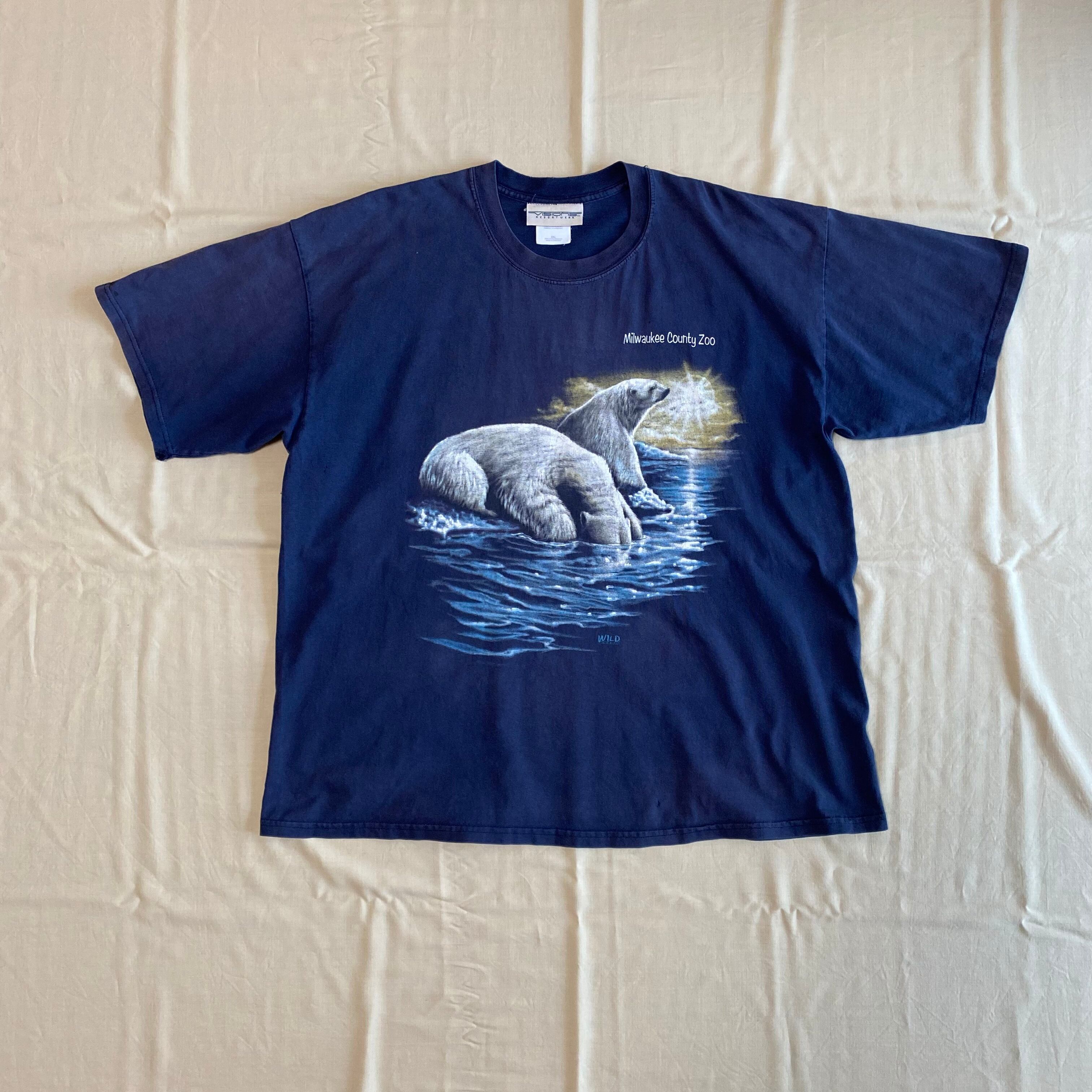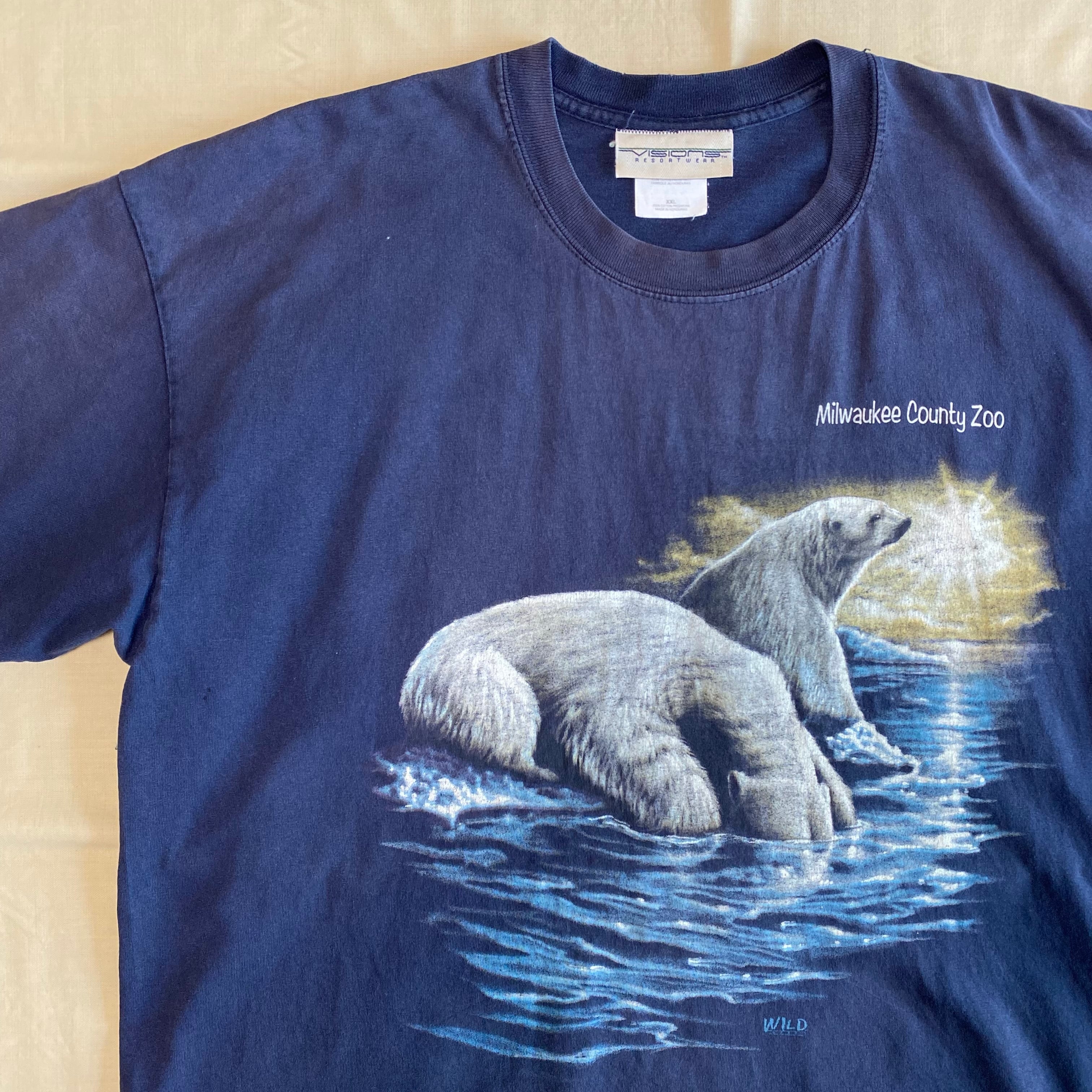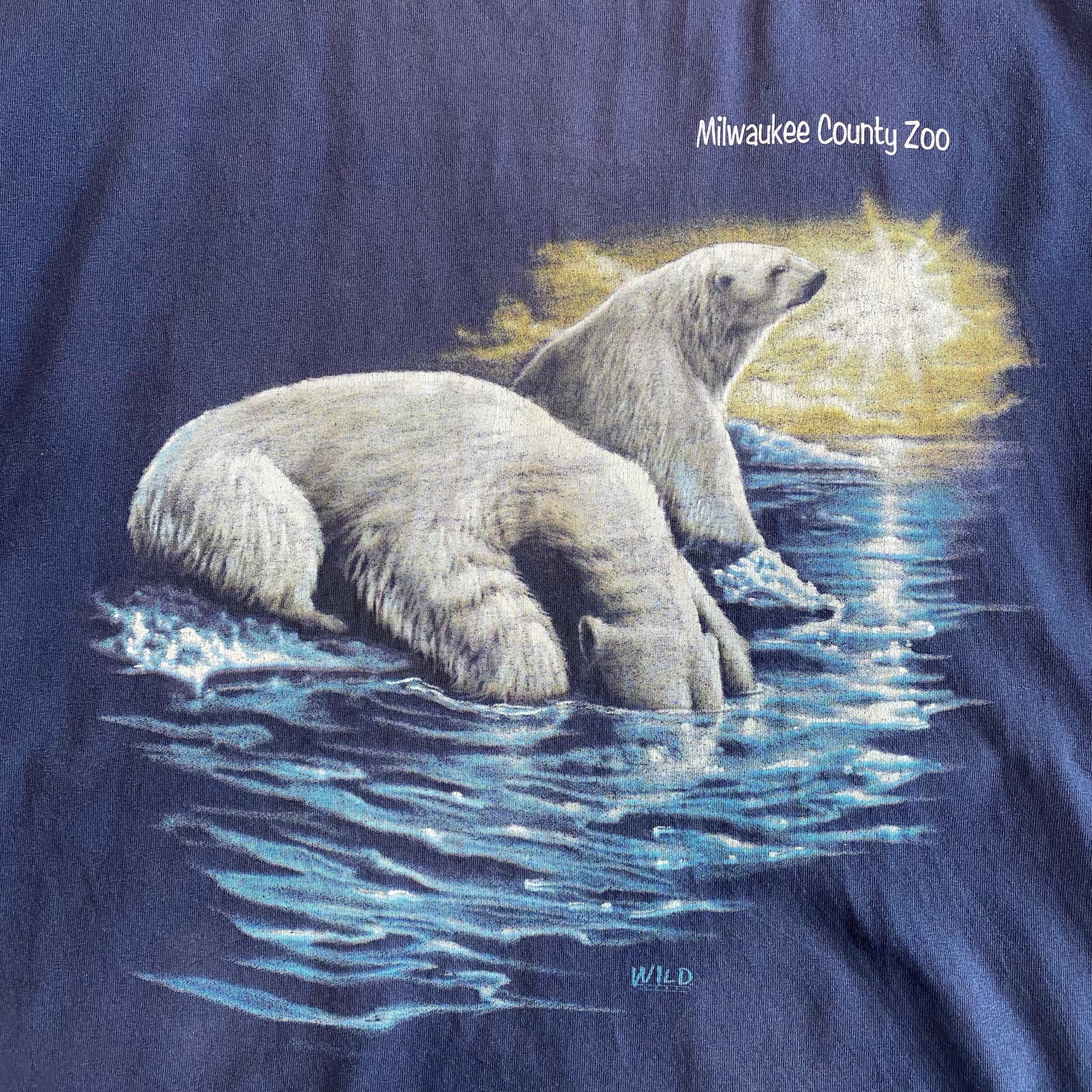 なぜホッキョクグマかというと、1919年に北米で初めて飼育下でのホッキョクグマの誕生と生育に成功したのがこちらのミルウォーキー動物園ということで、おそらくですが、園を象徴する動物ということでこのTシャツが誕生したのかもしれません。