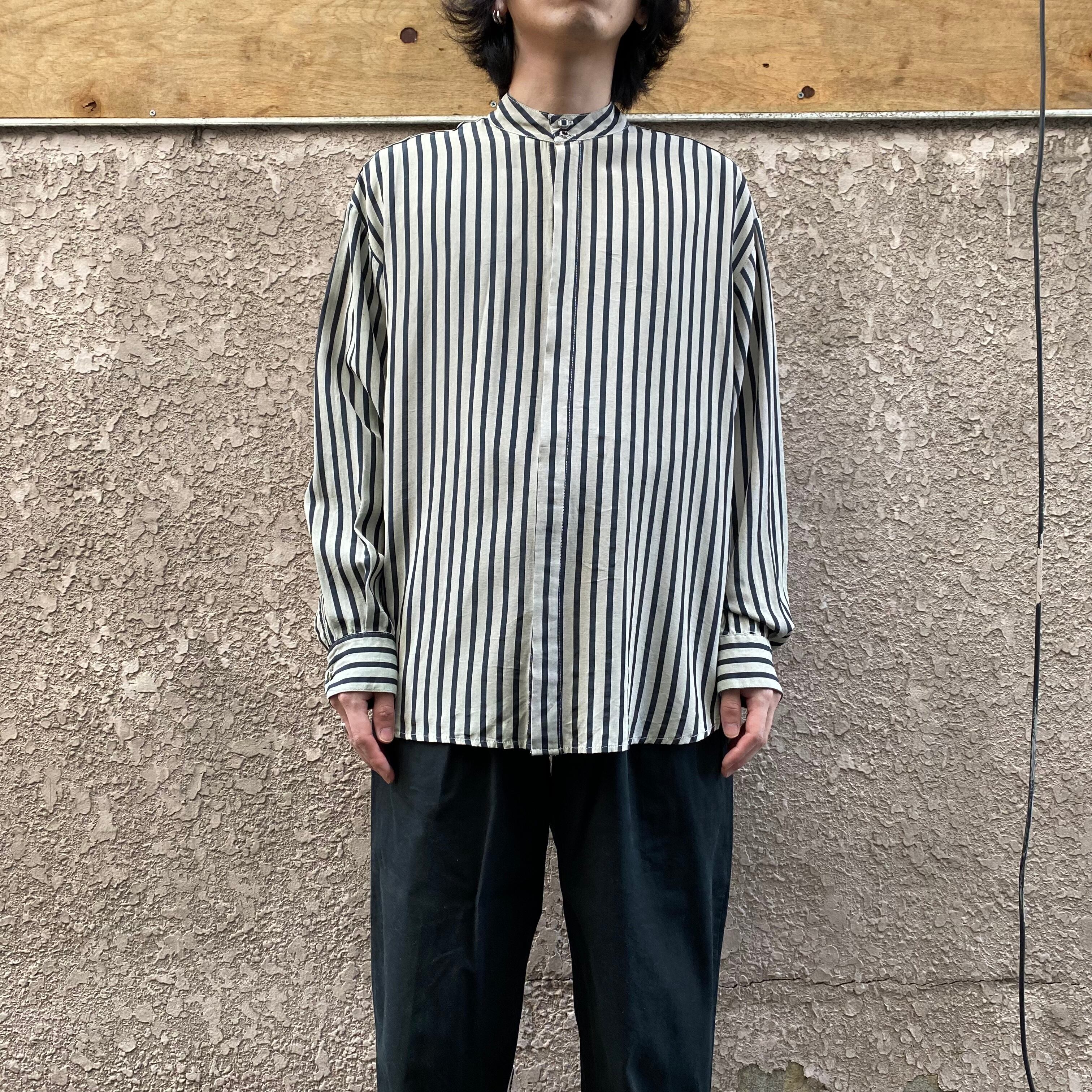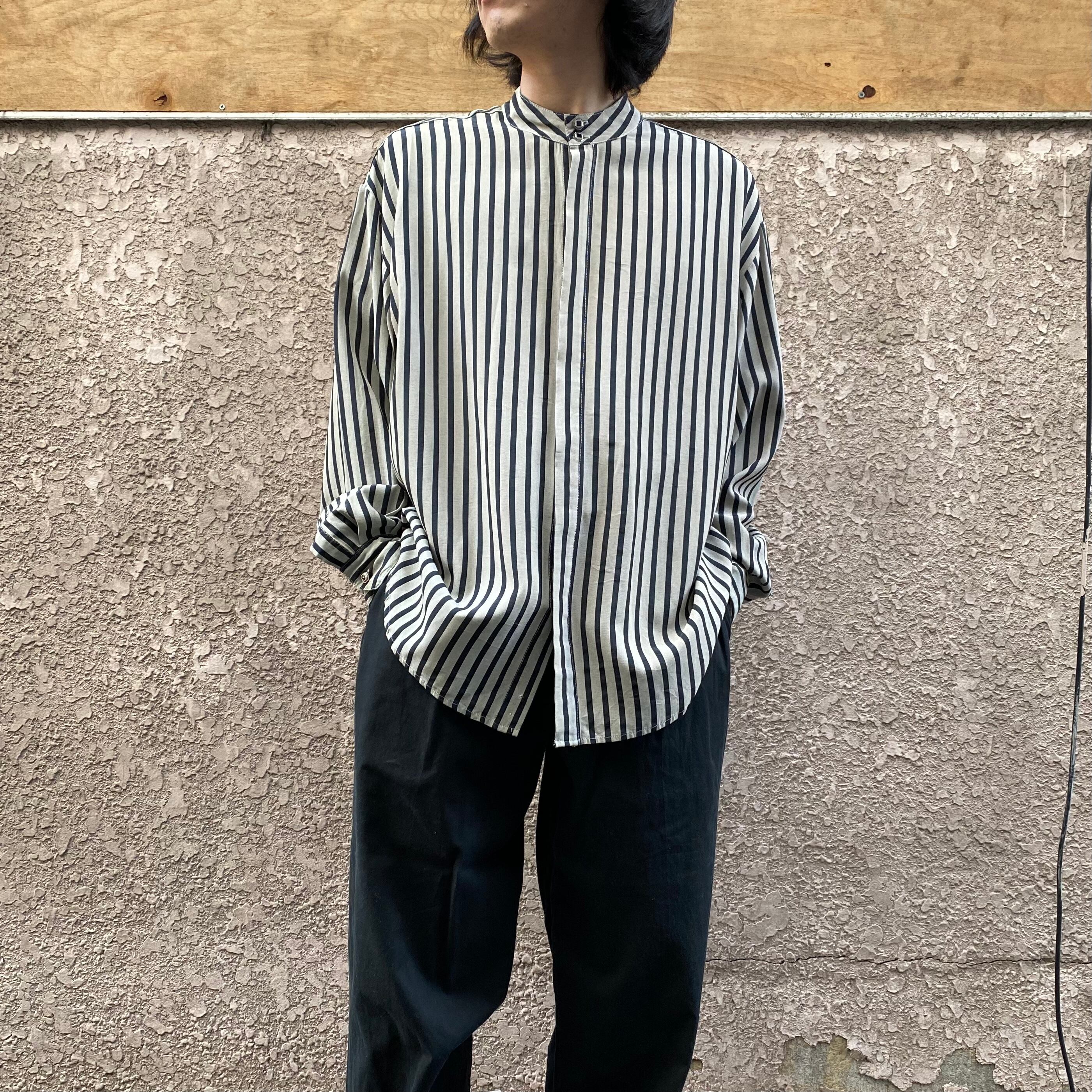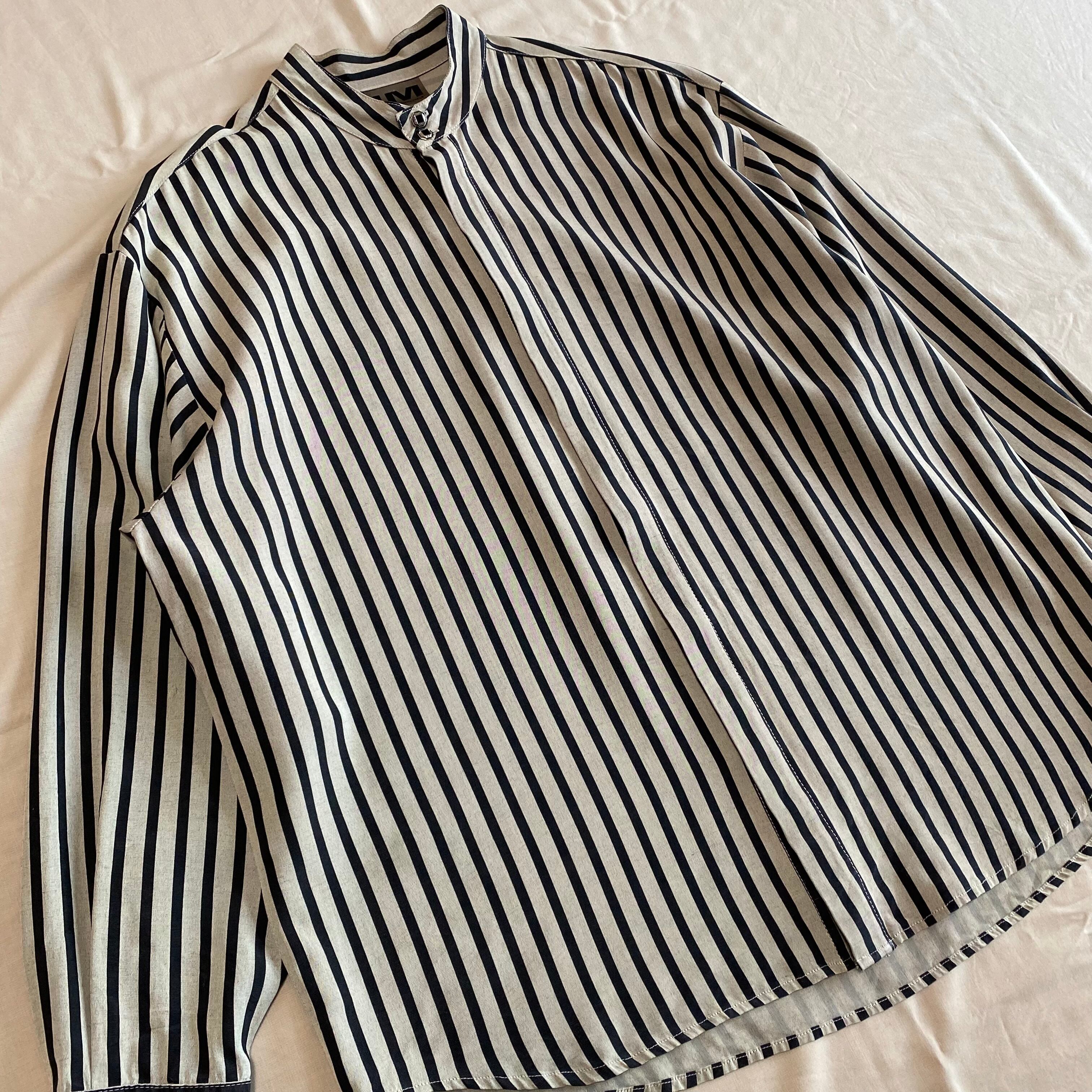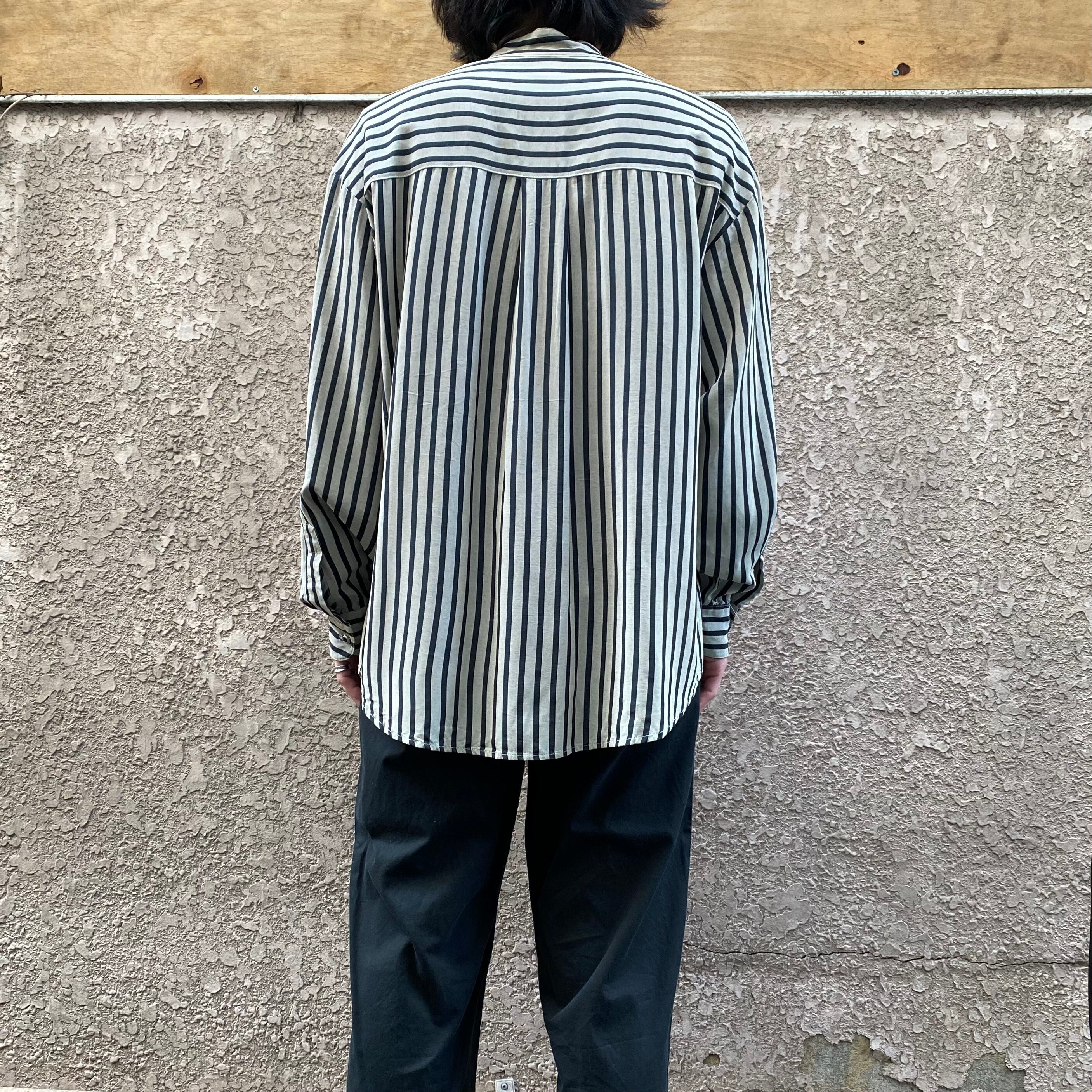 80's USA made / stand collar striped shirt
