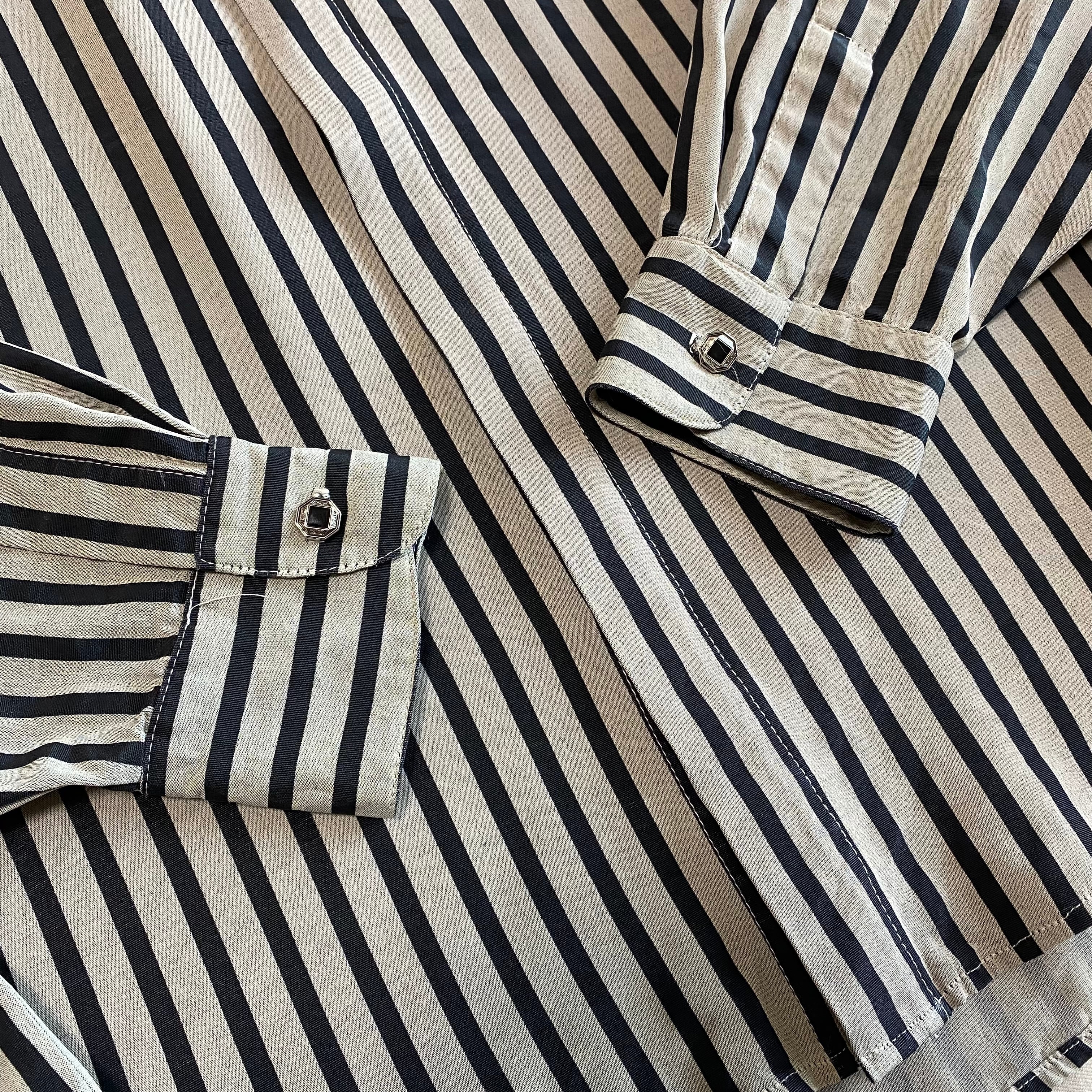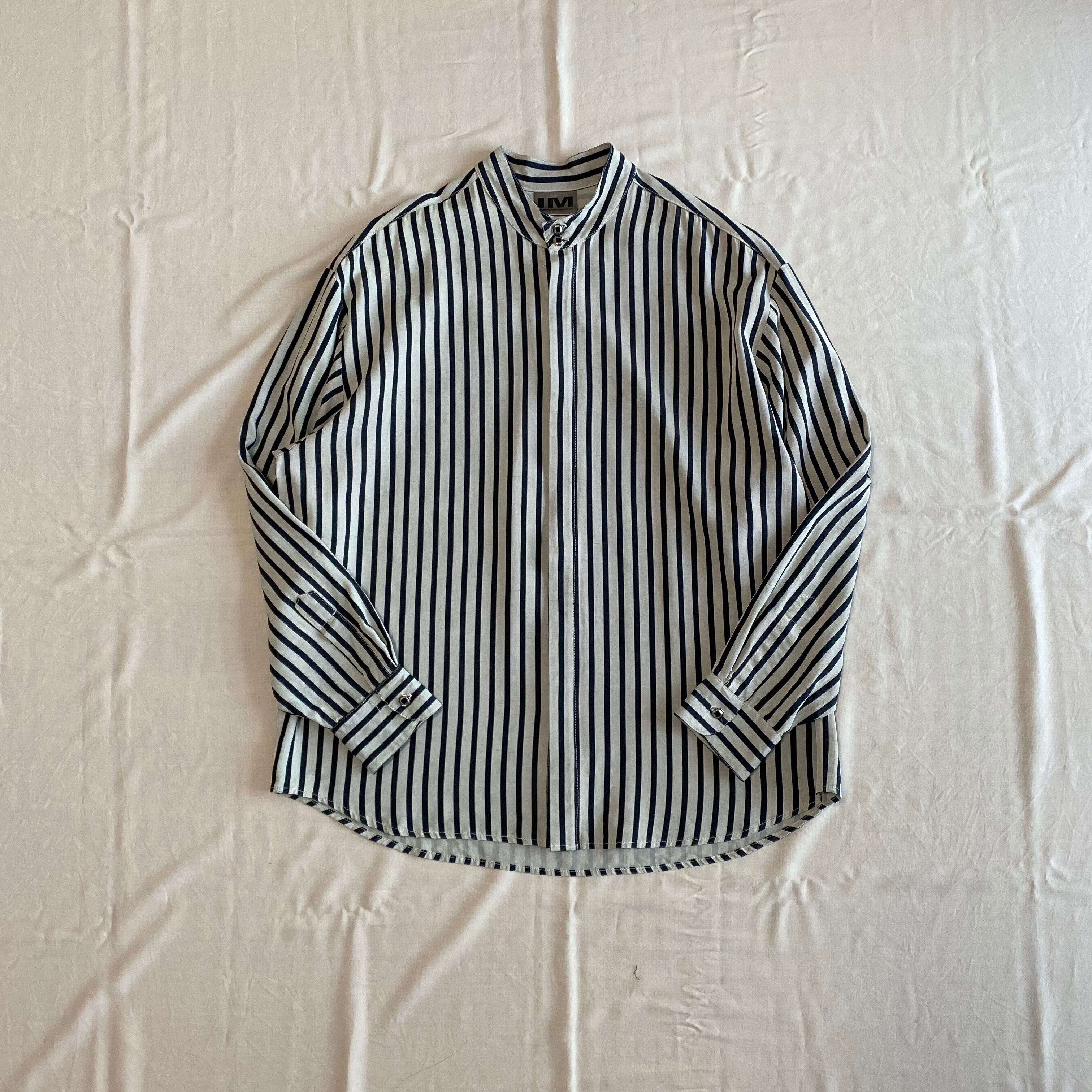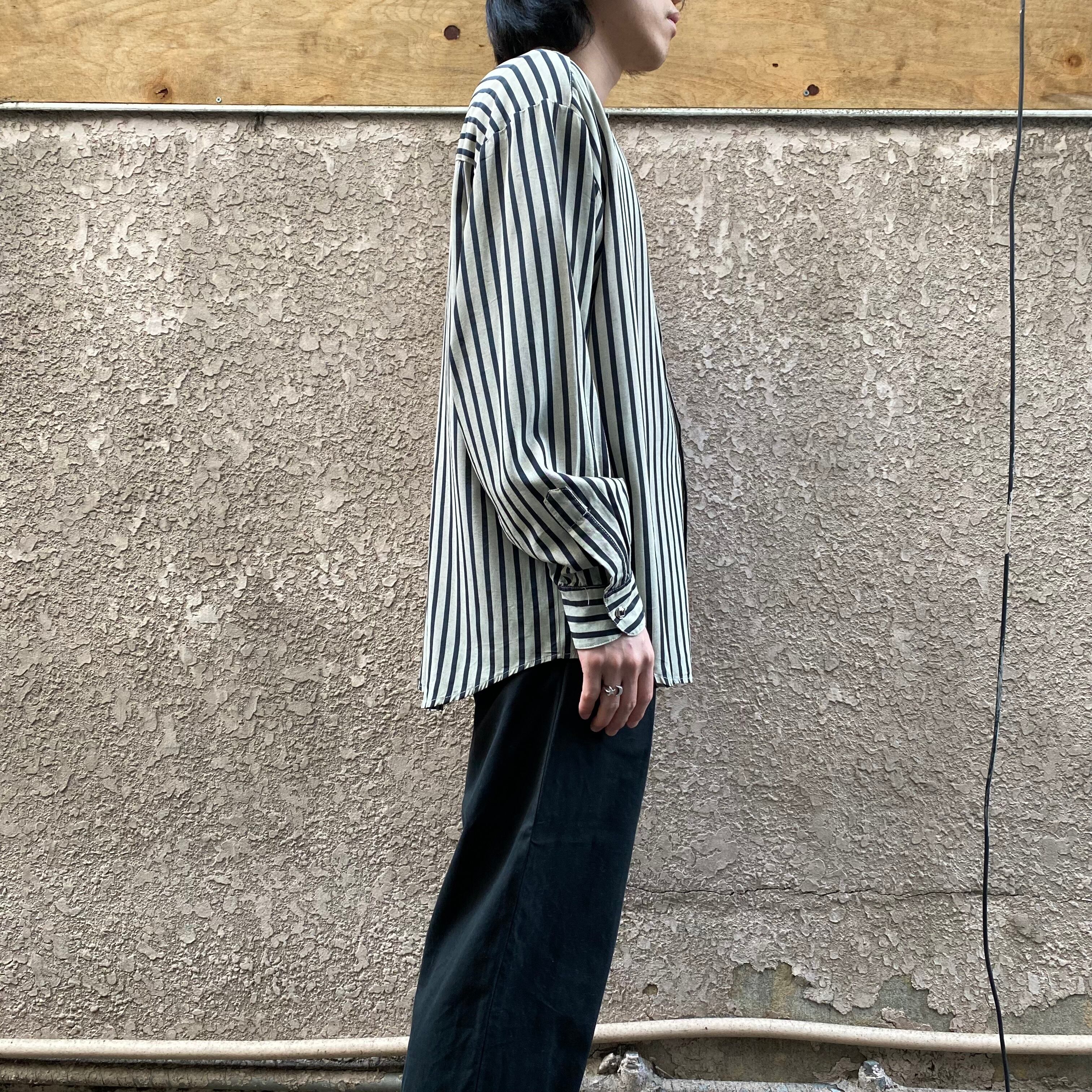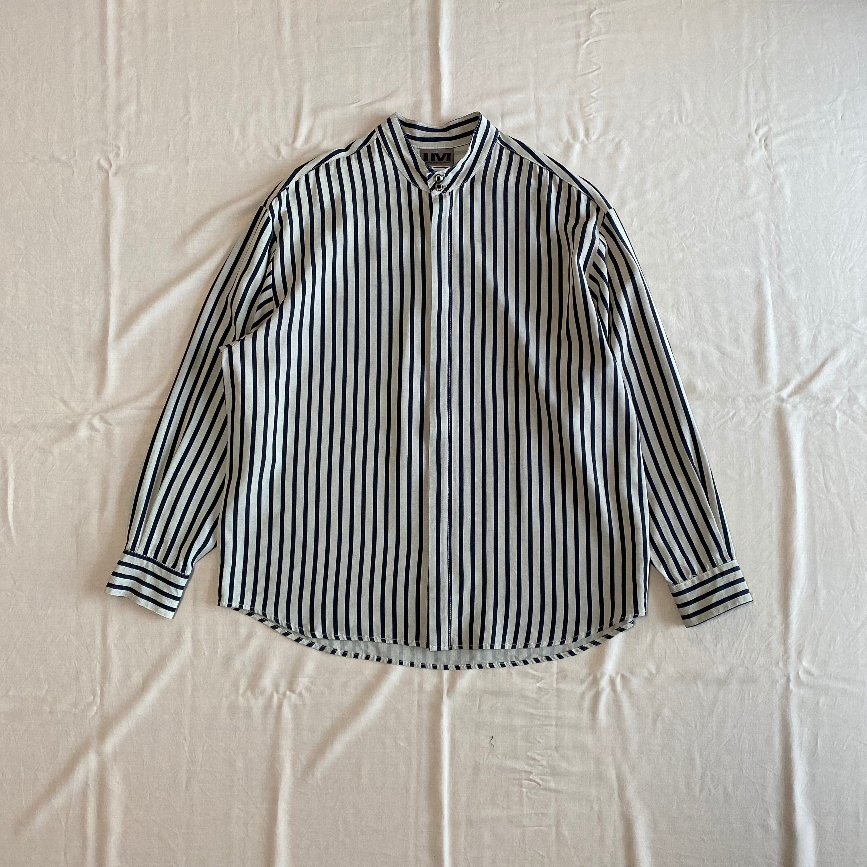 80's USA made / stand collar striped shirt