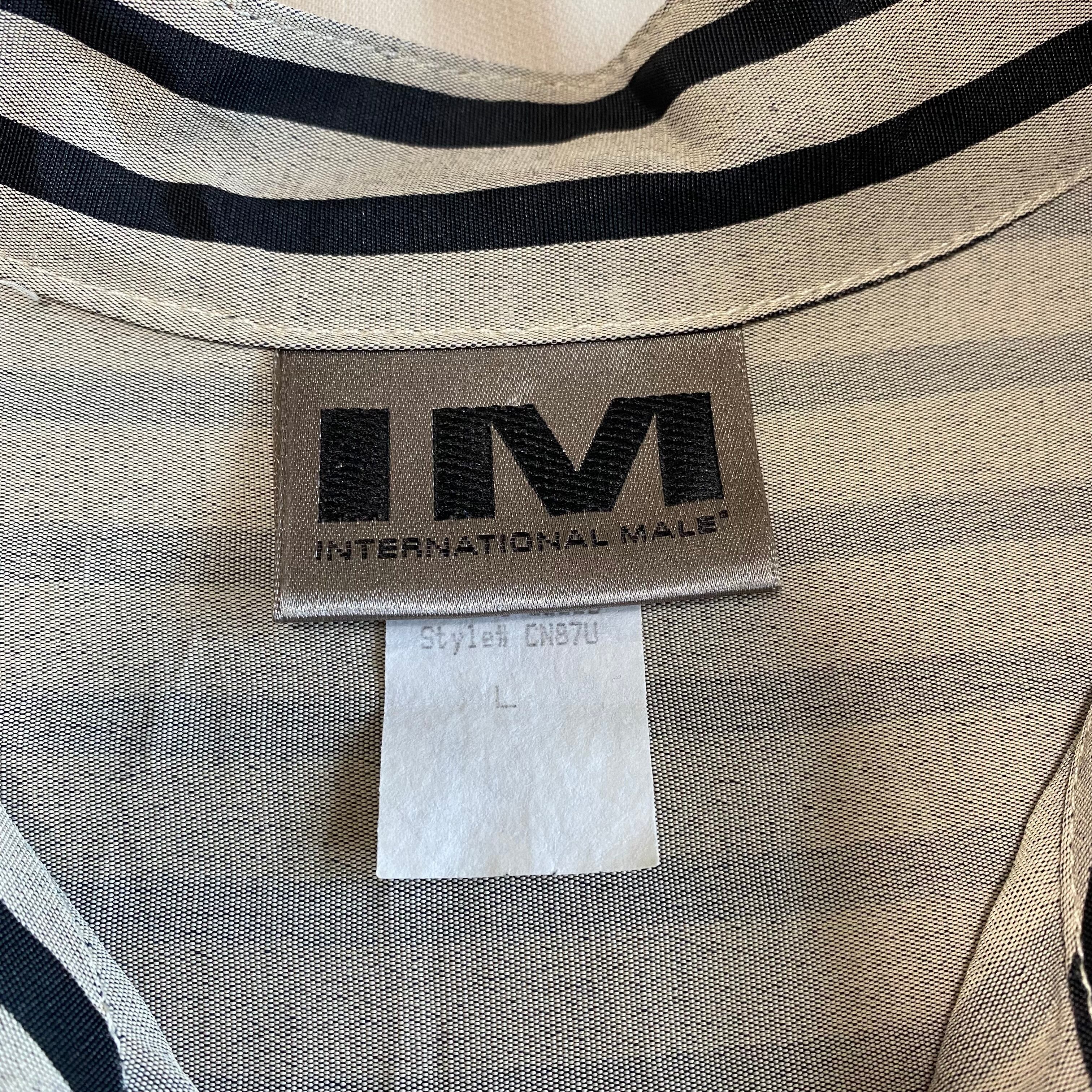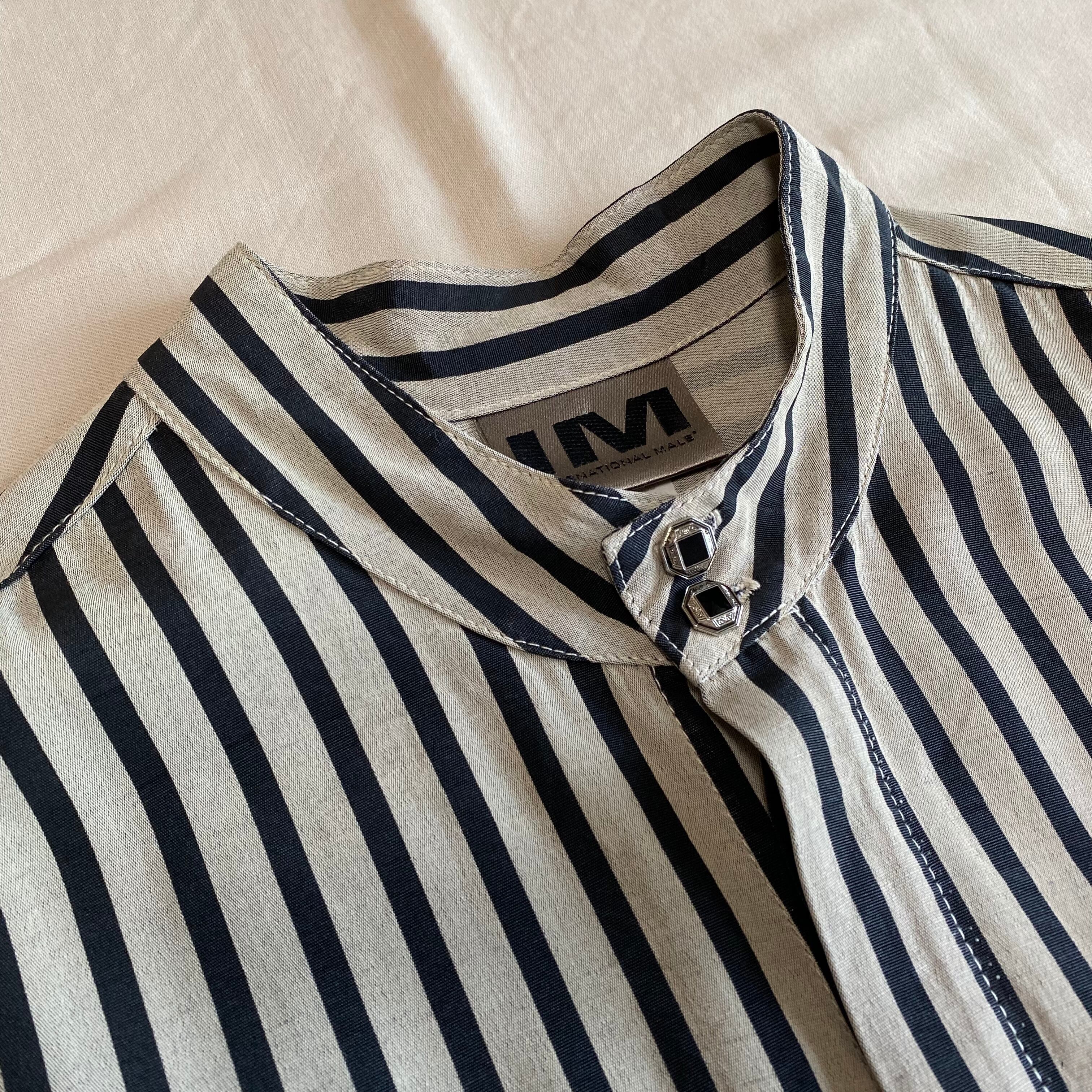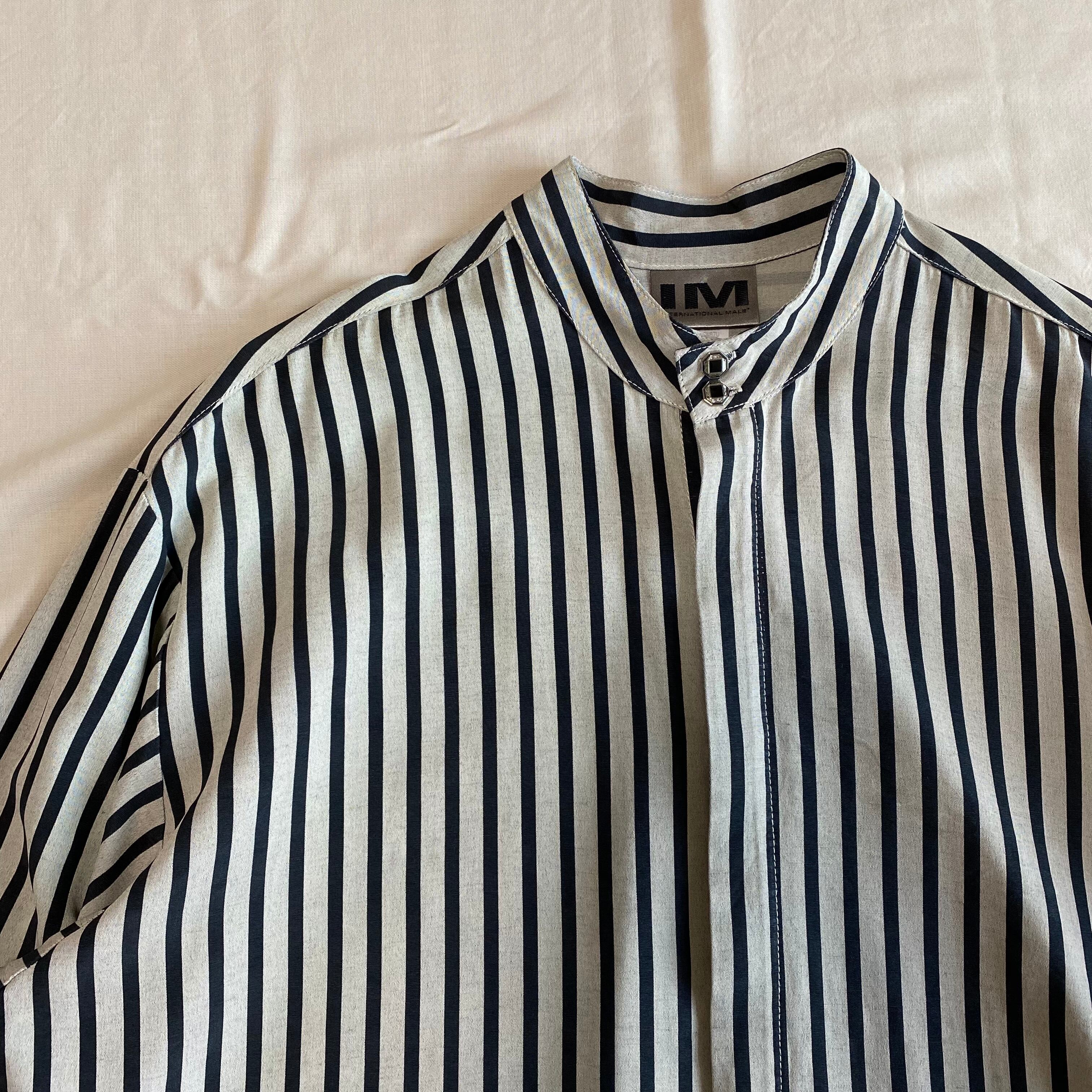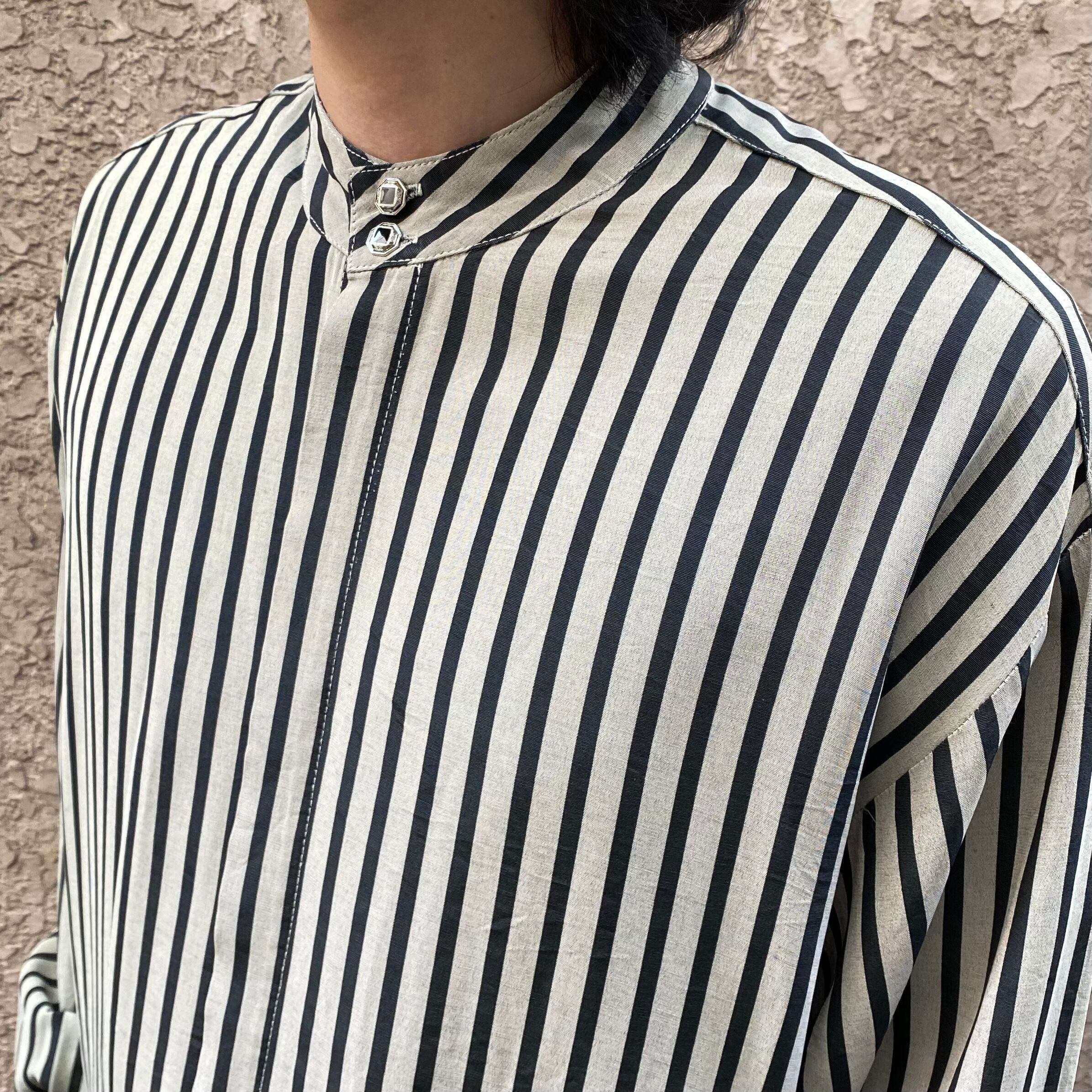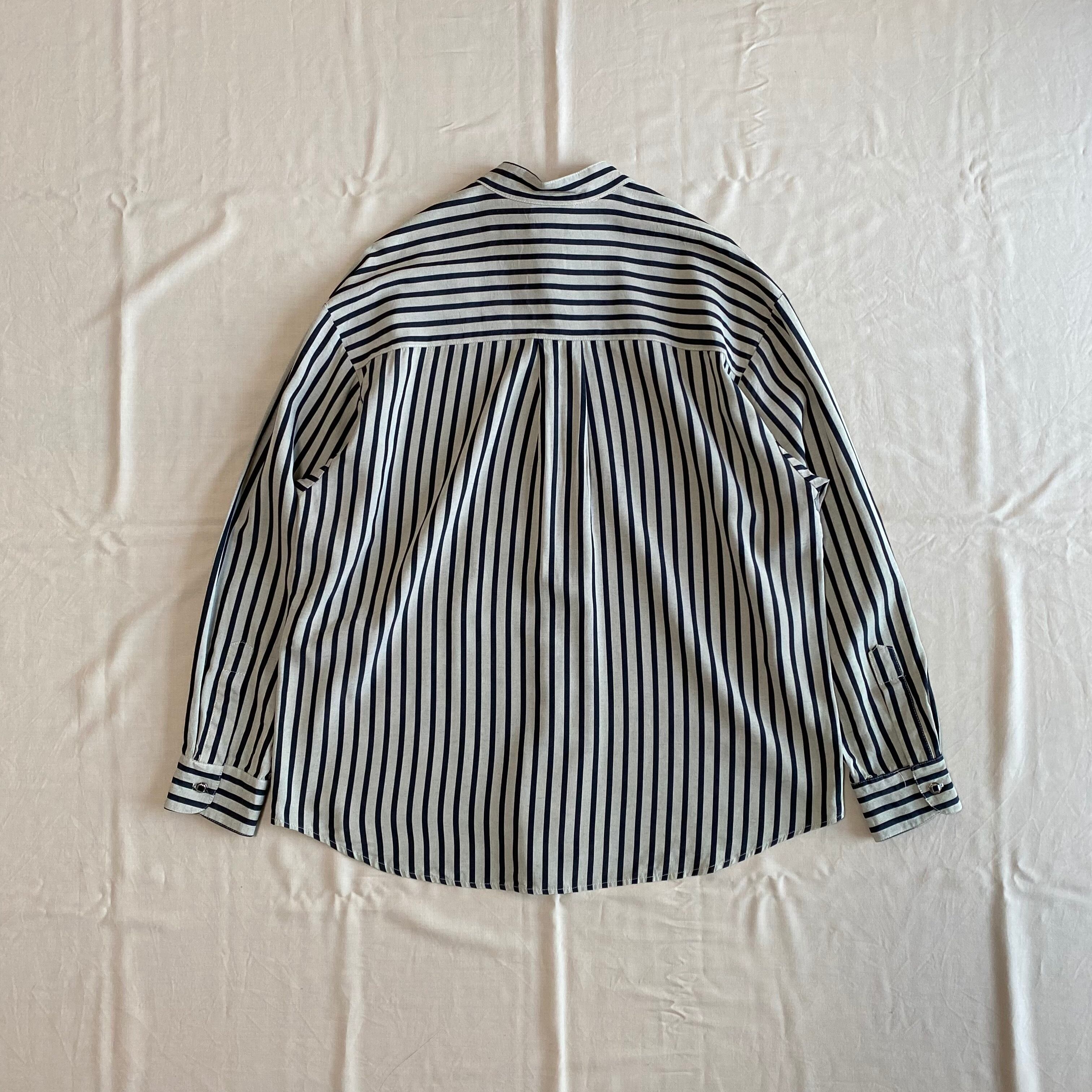 アメリカ製、ストライプのスタンドカラーシャツ。