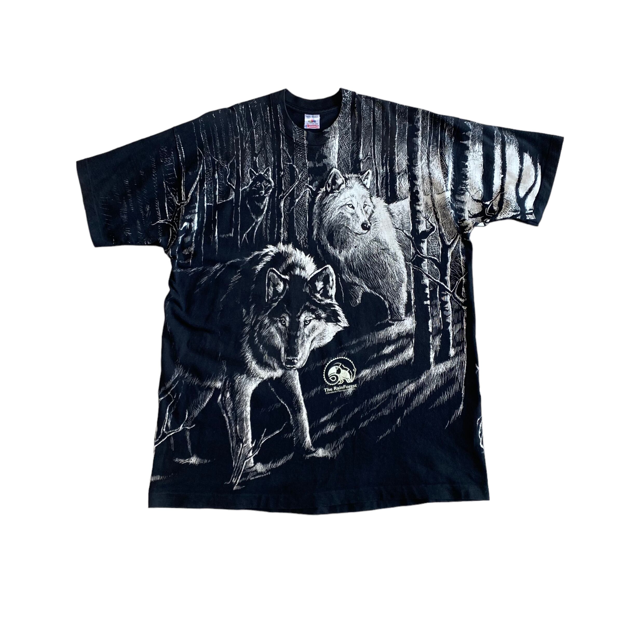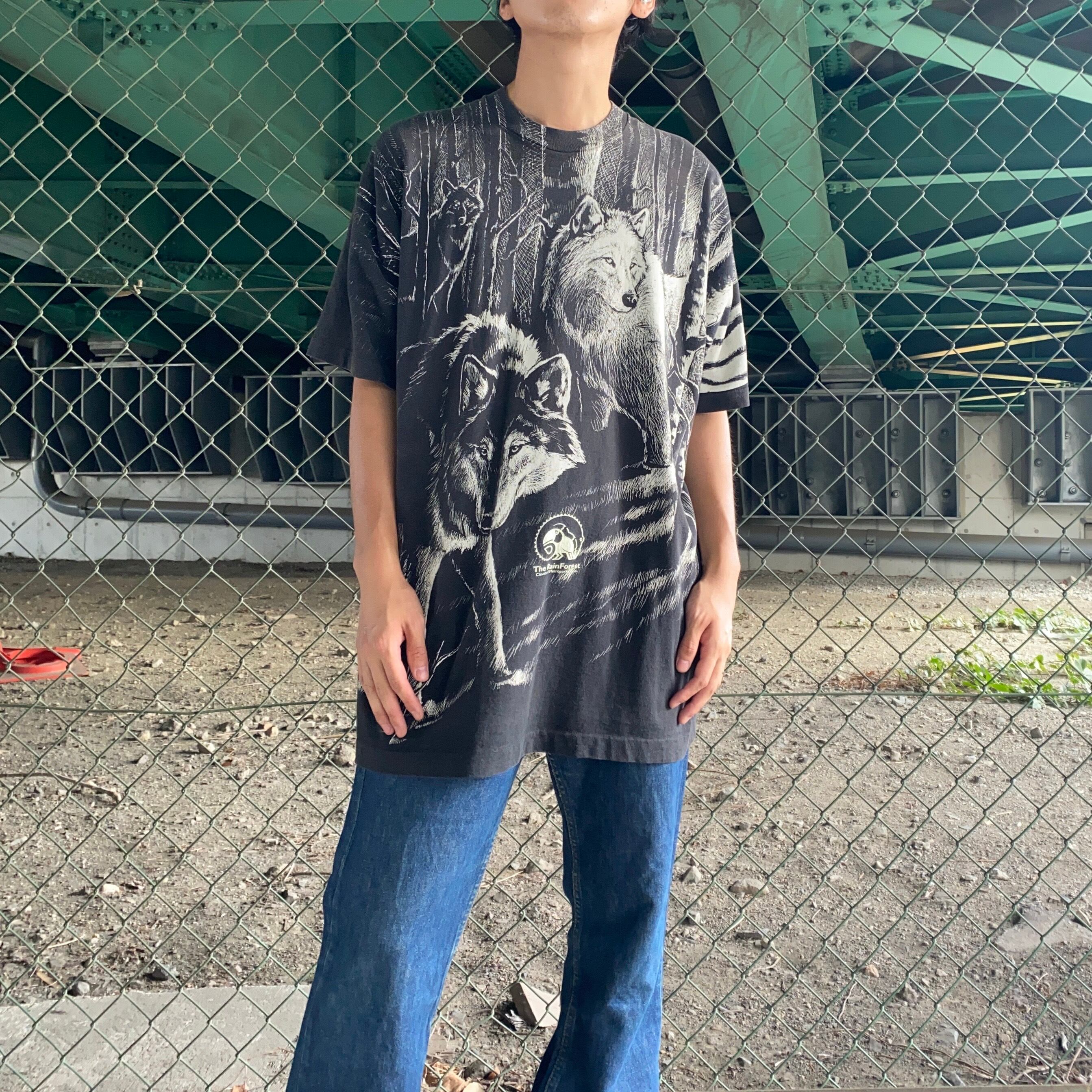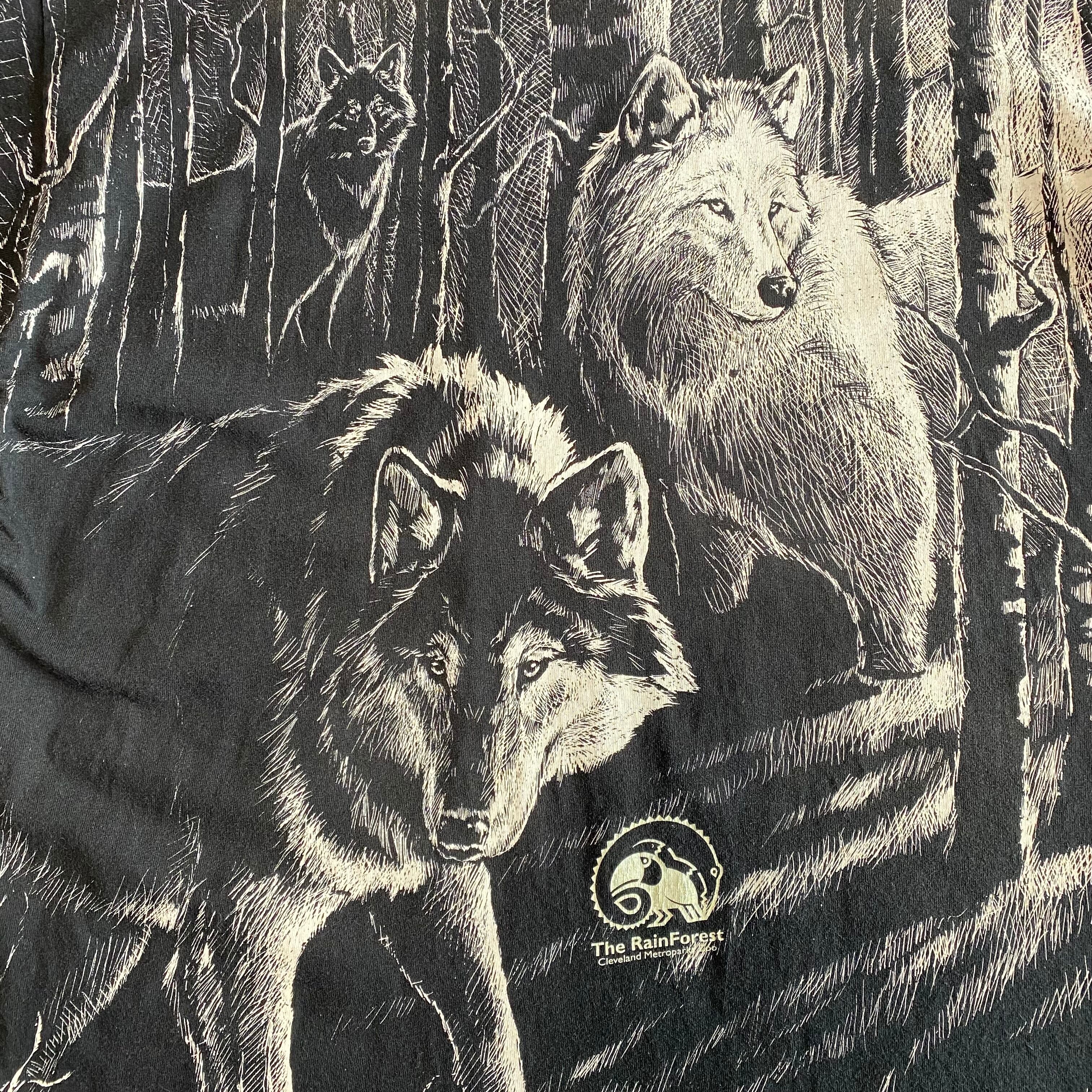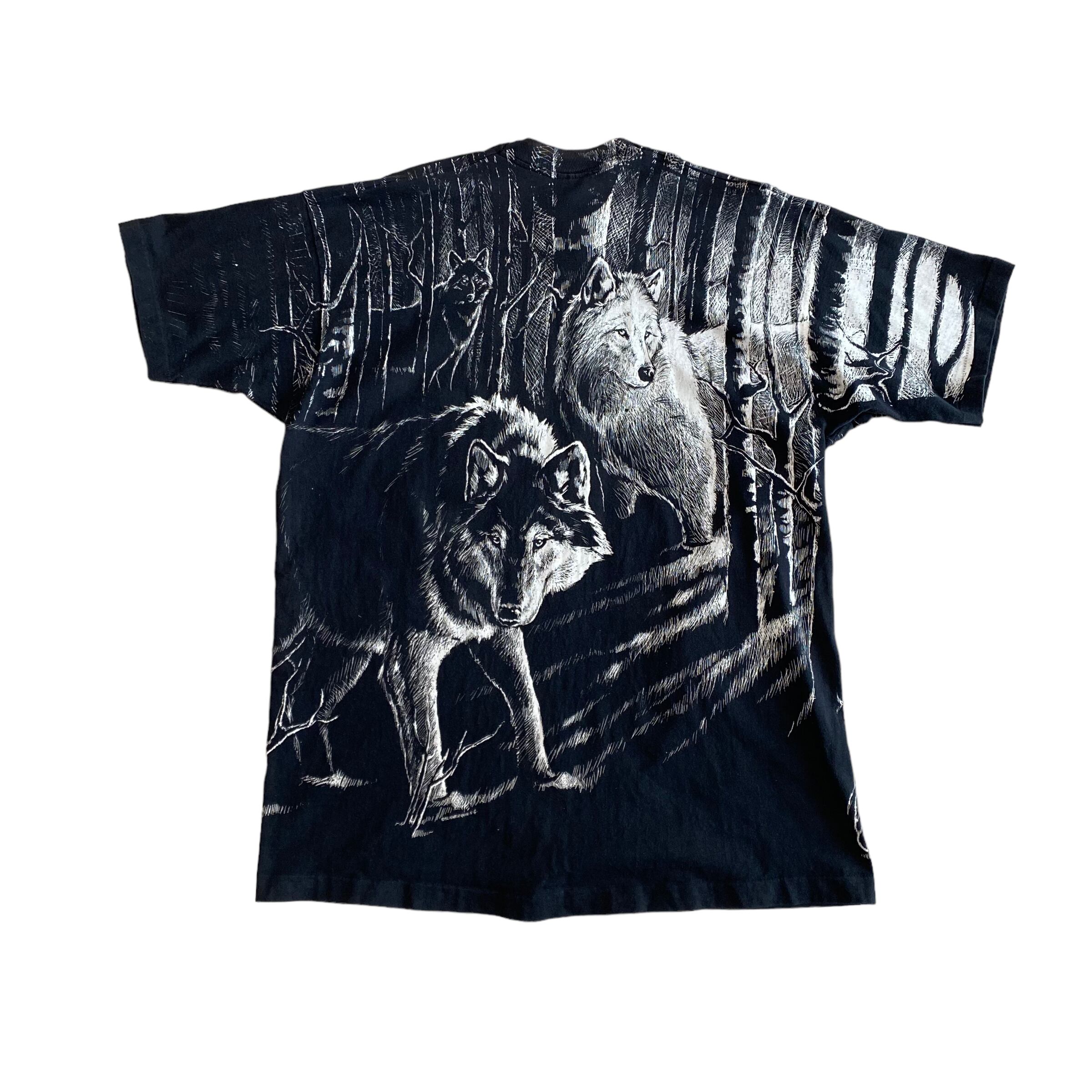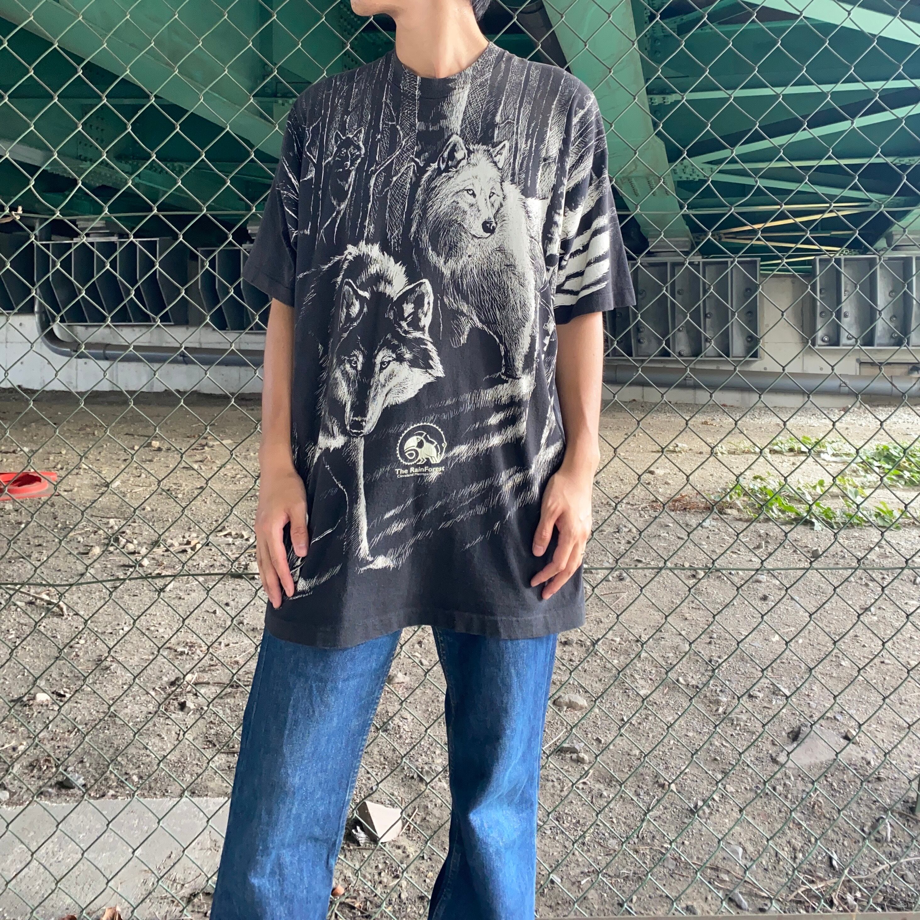 90's USA made / wolves print t-shirt