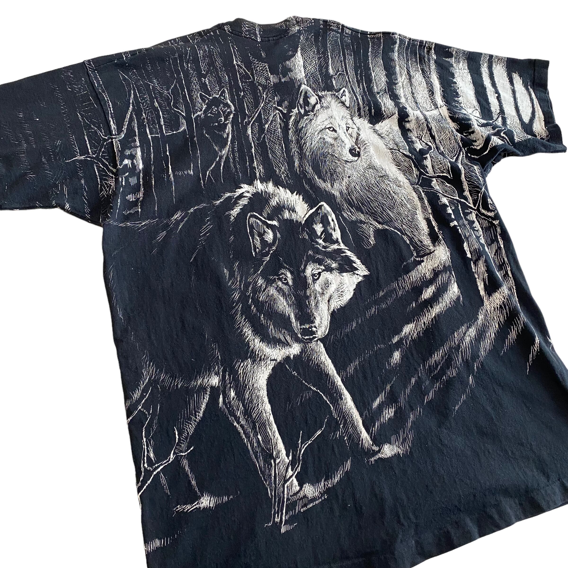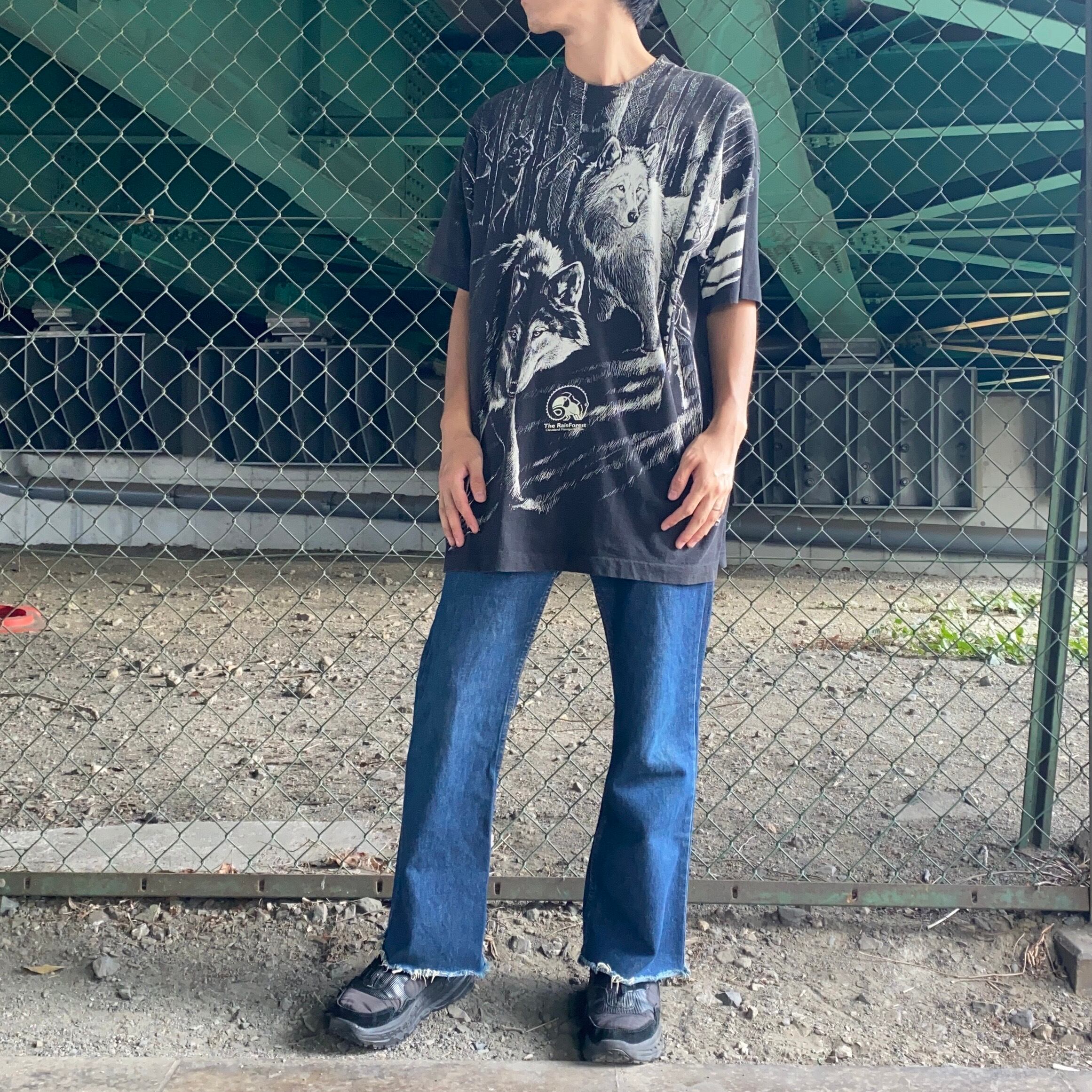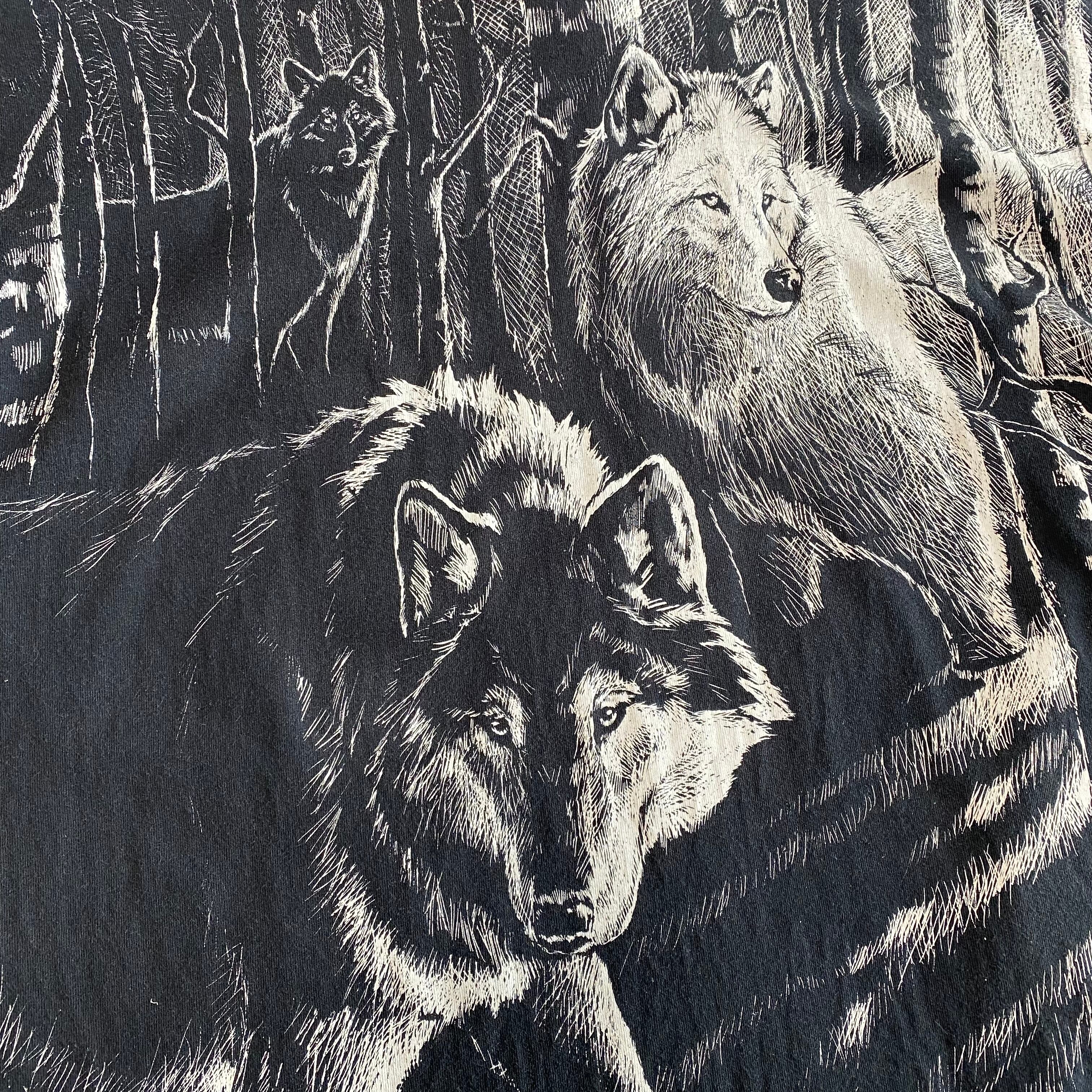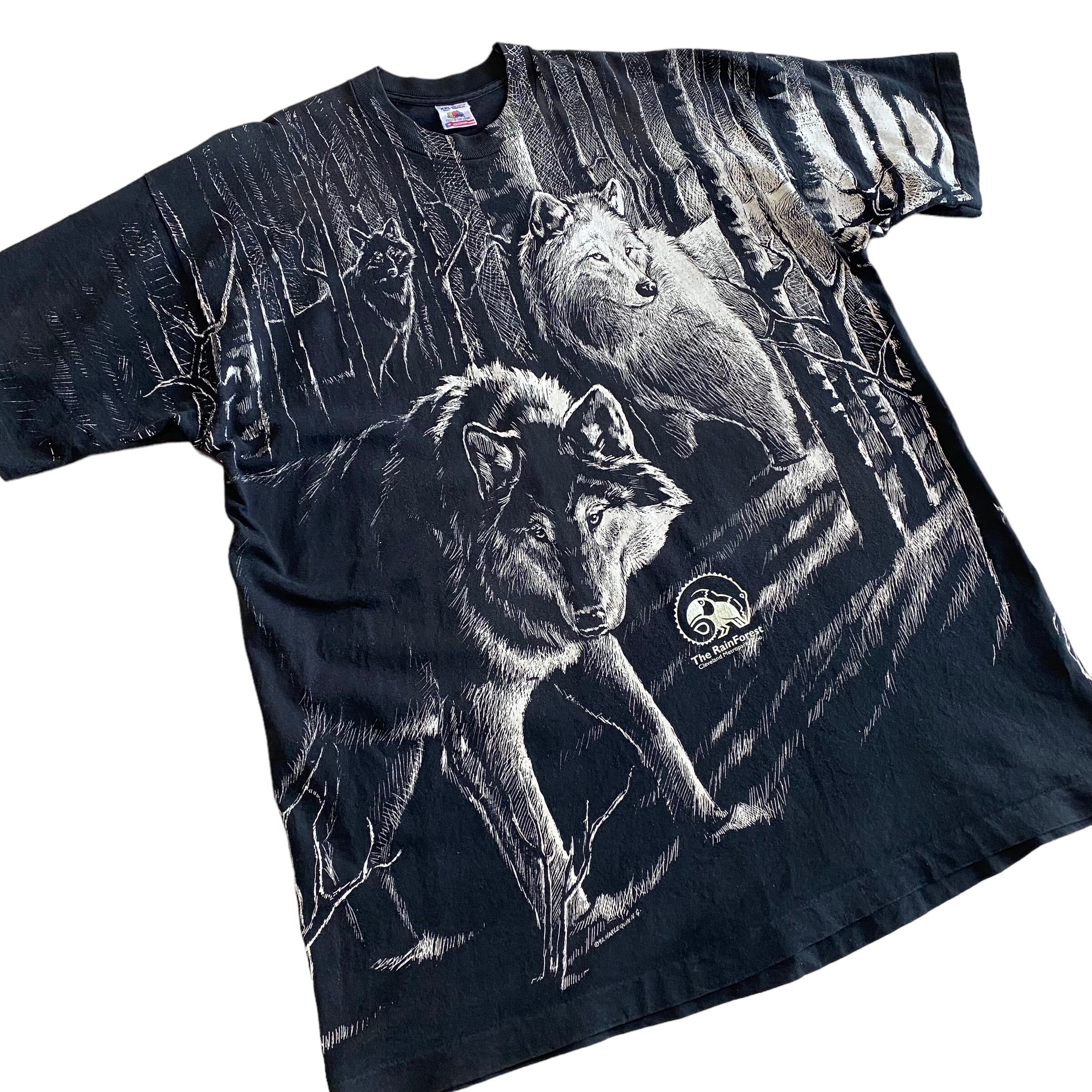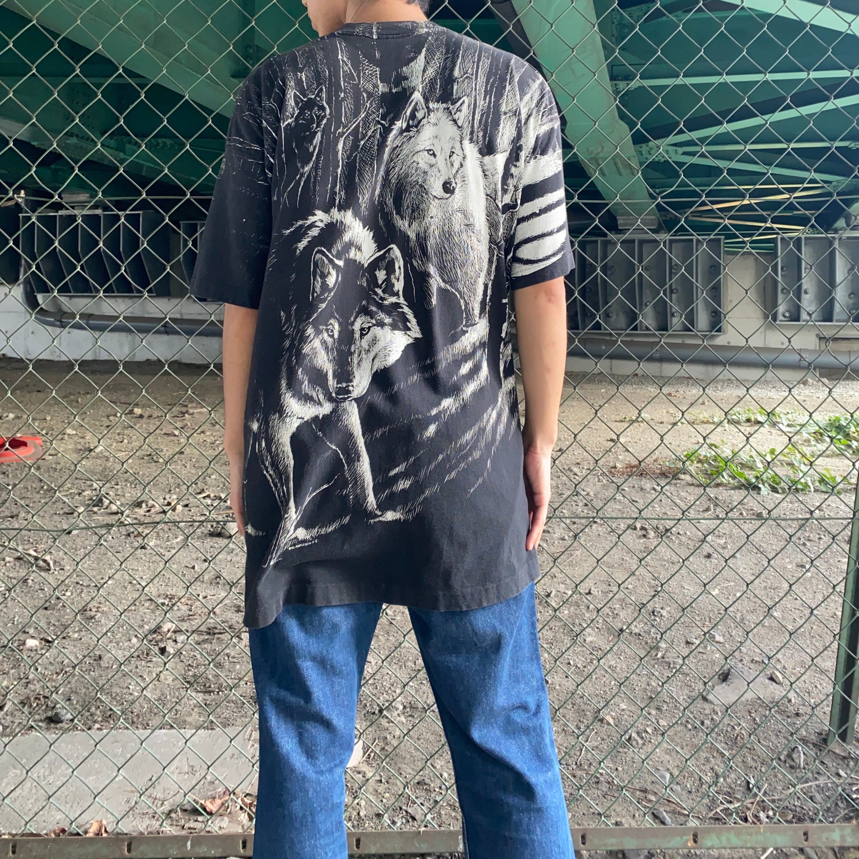 90's USA made / wolves print t-shirt