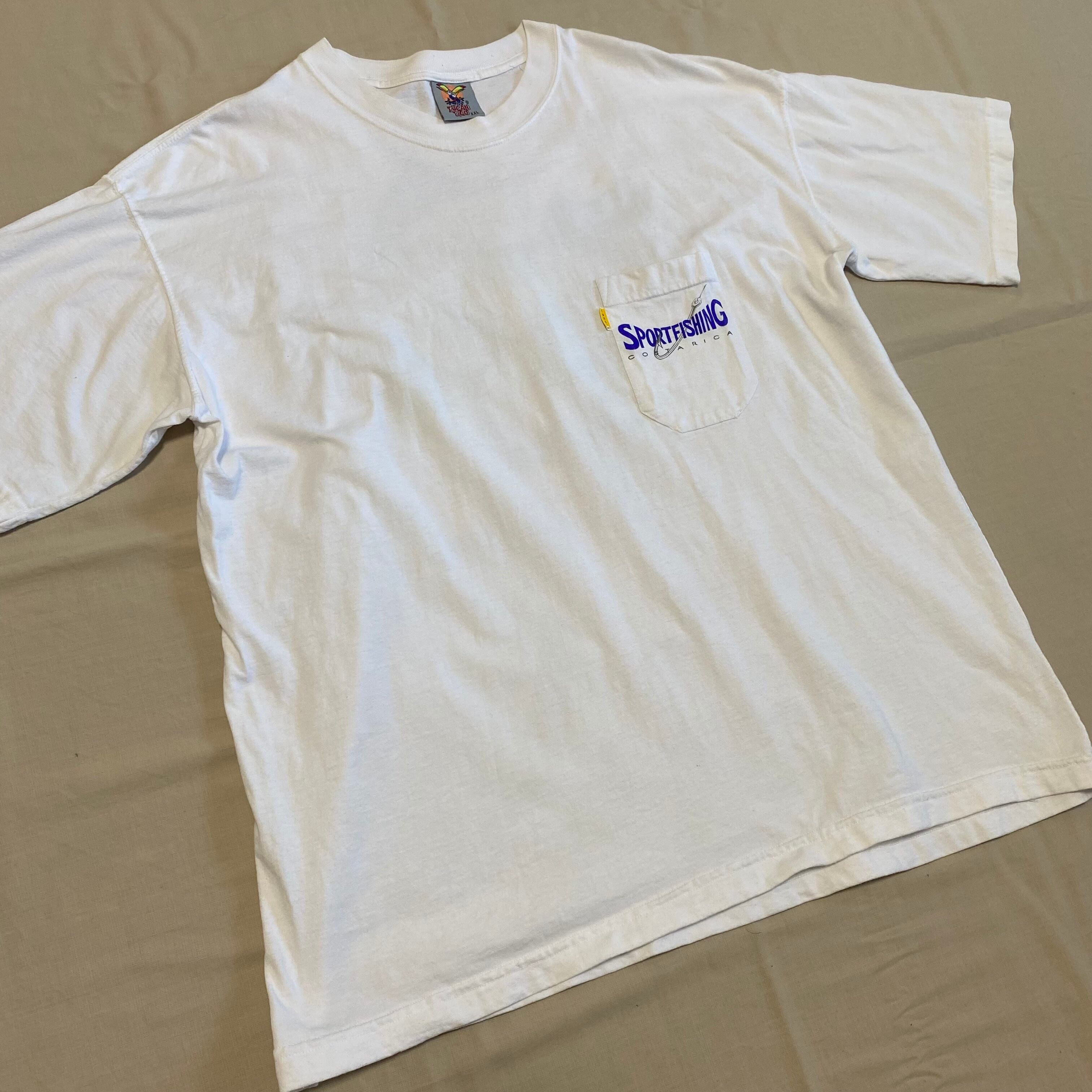 前面は、ポケット部分にロゴが施されたシンプルなプリント。