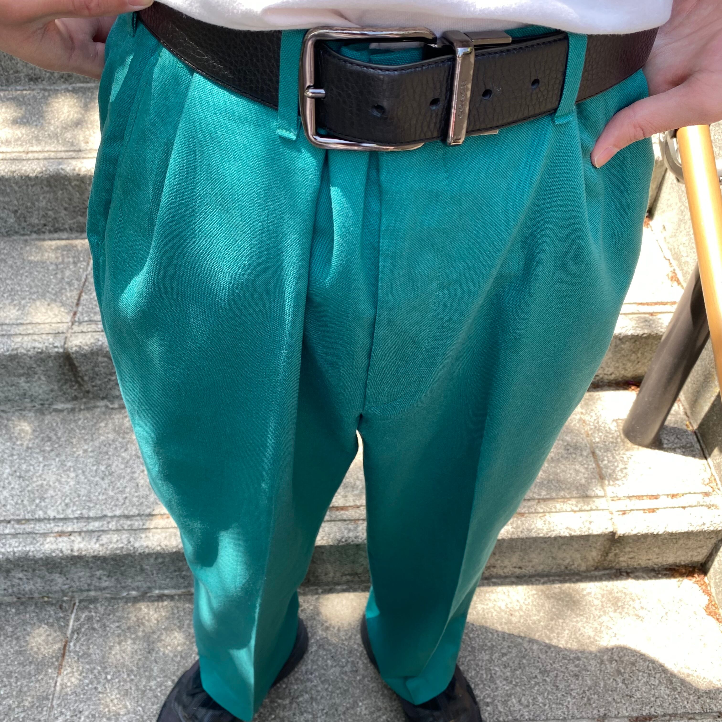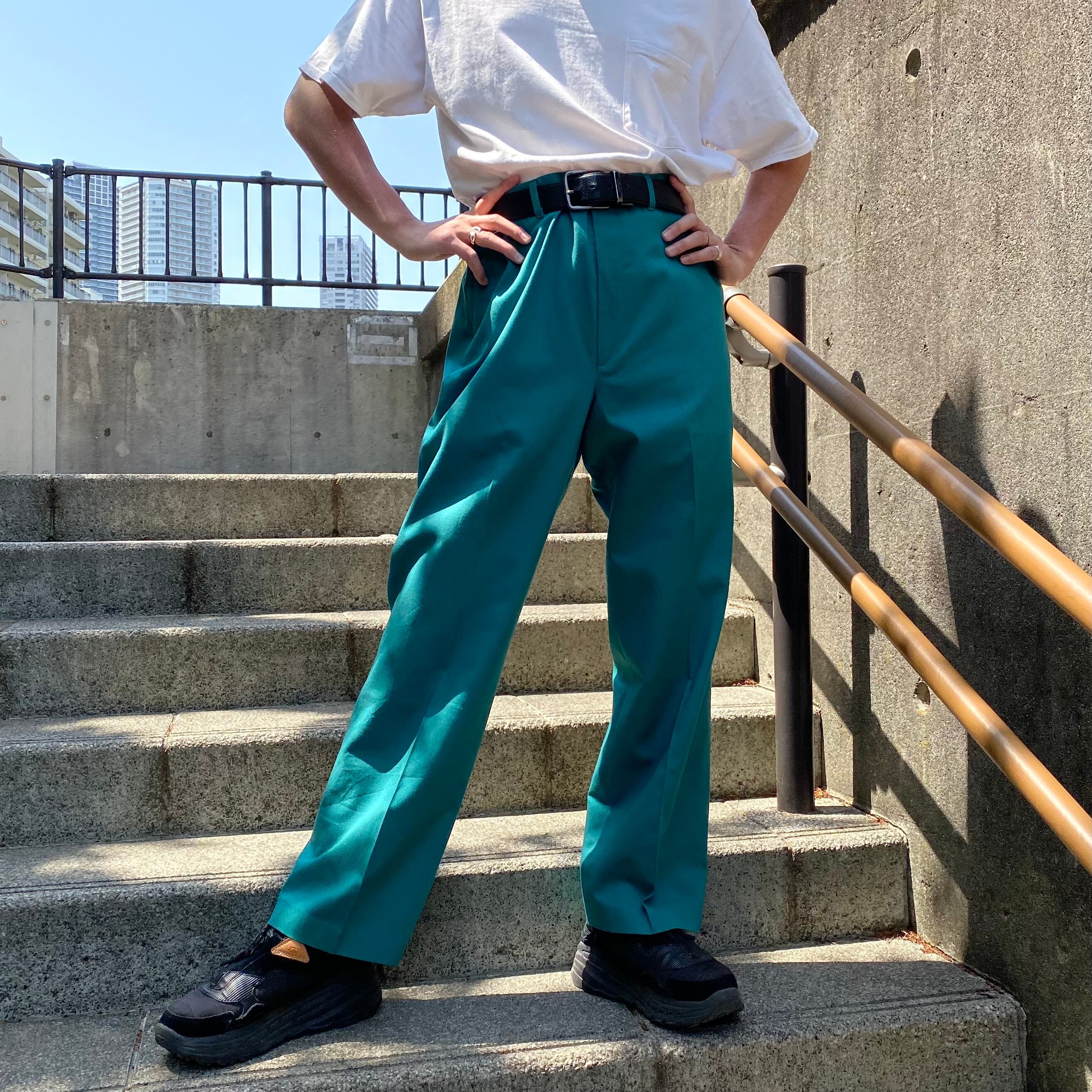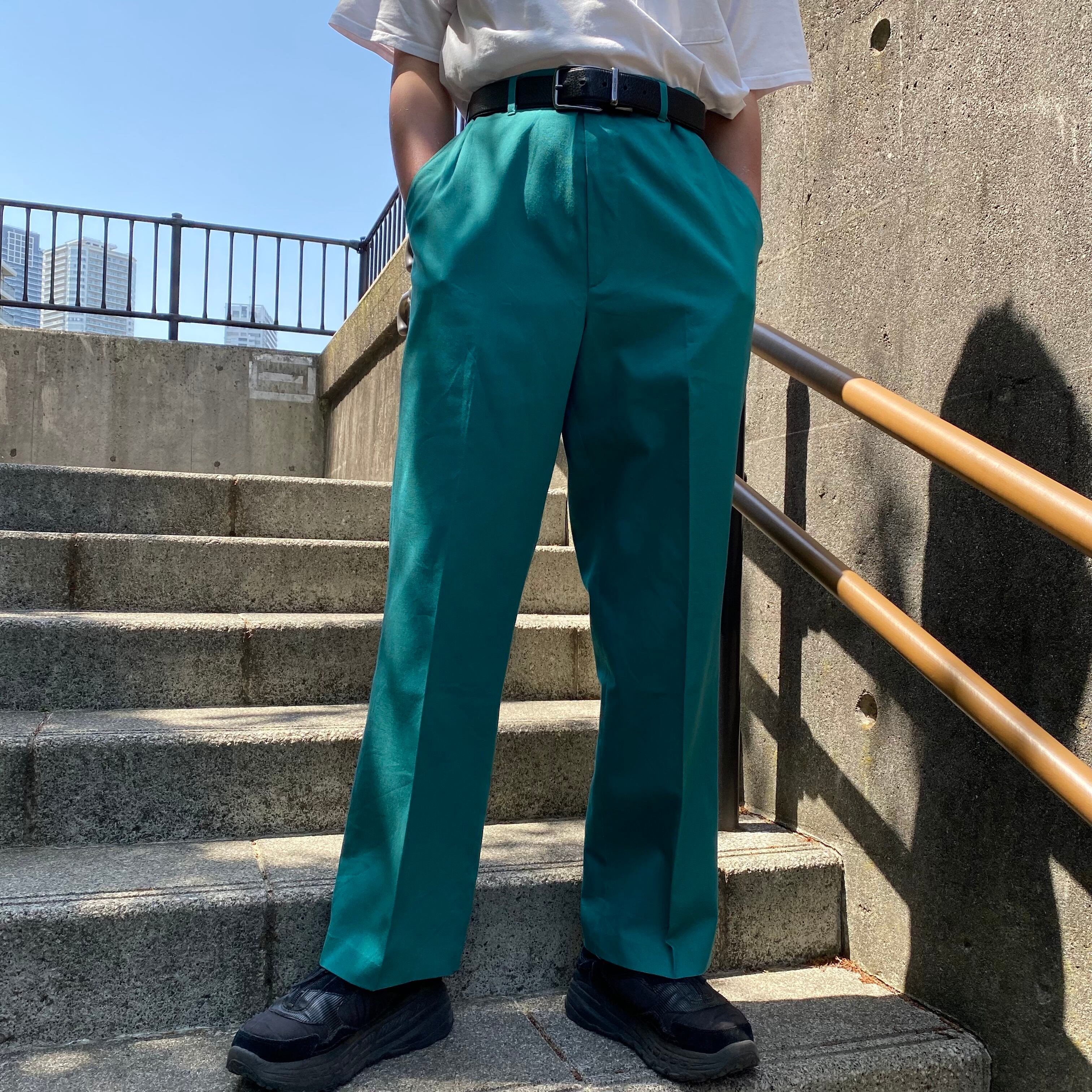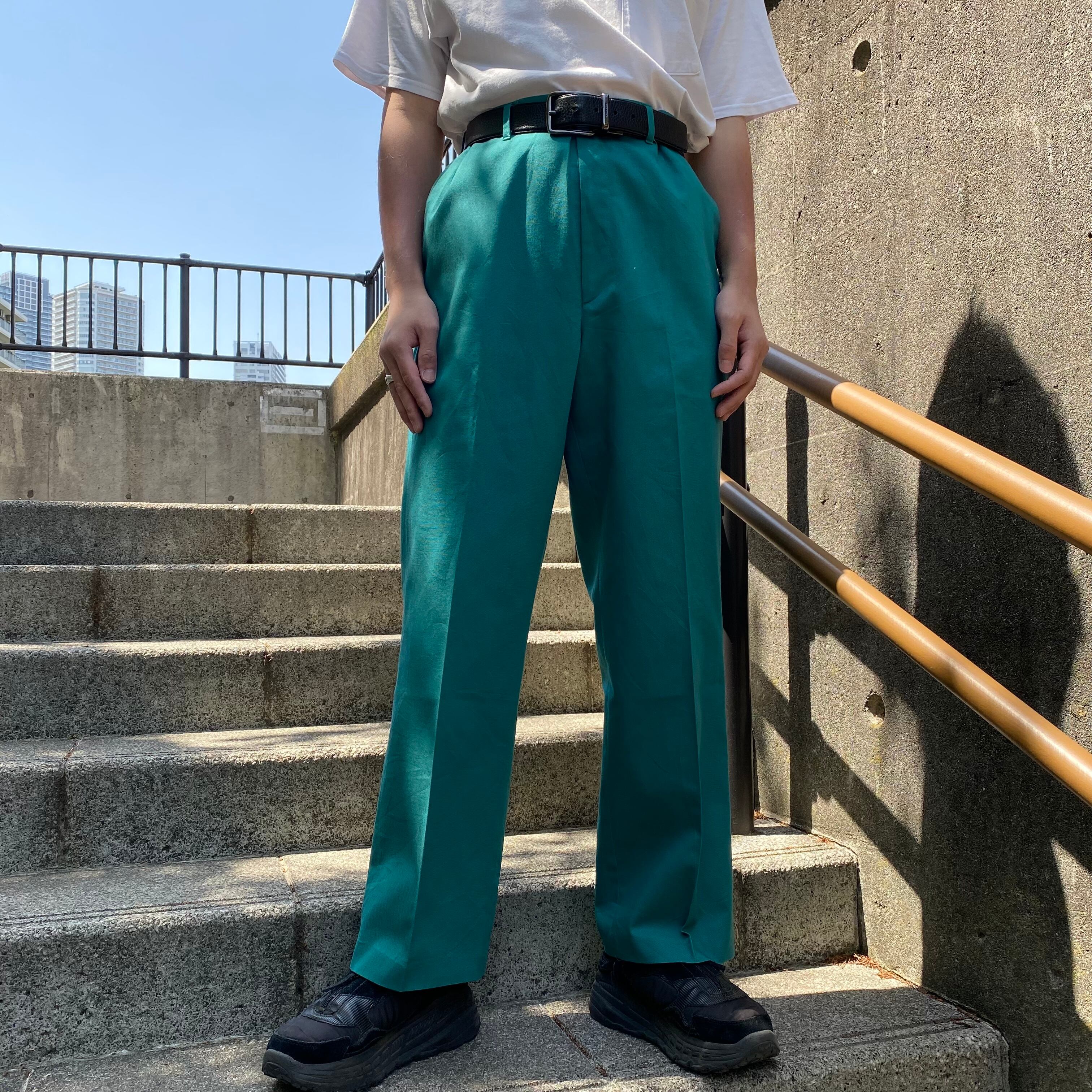 80's~ USA made / 《HAGGAR》turquoise green slacks