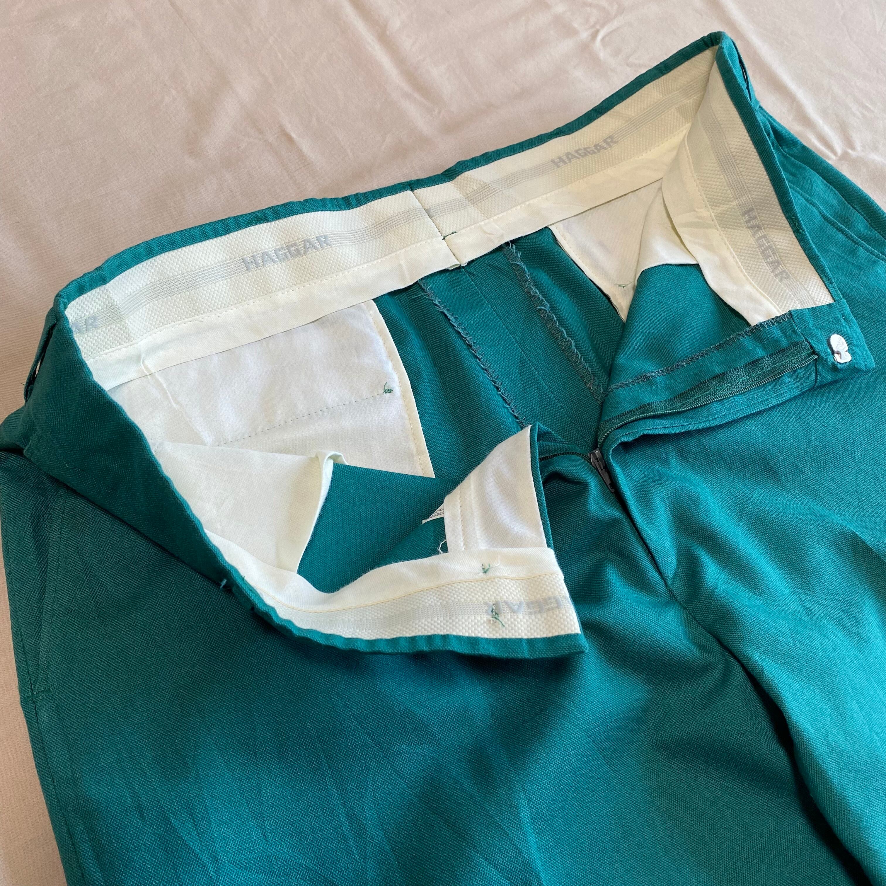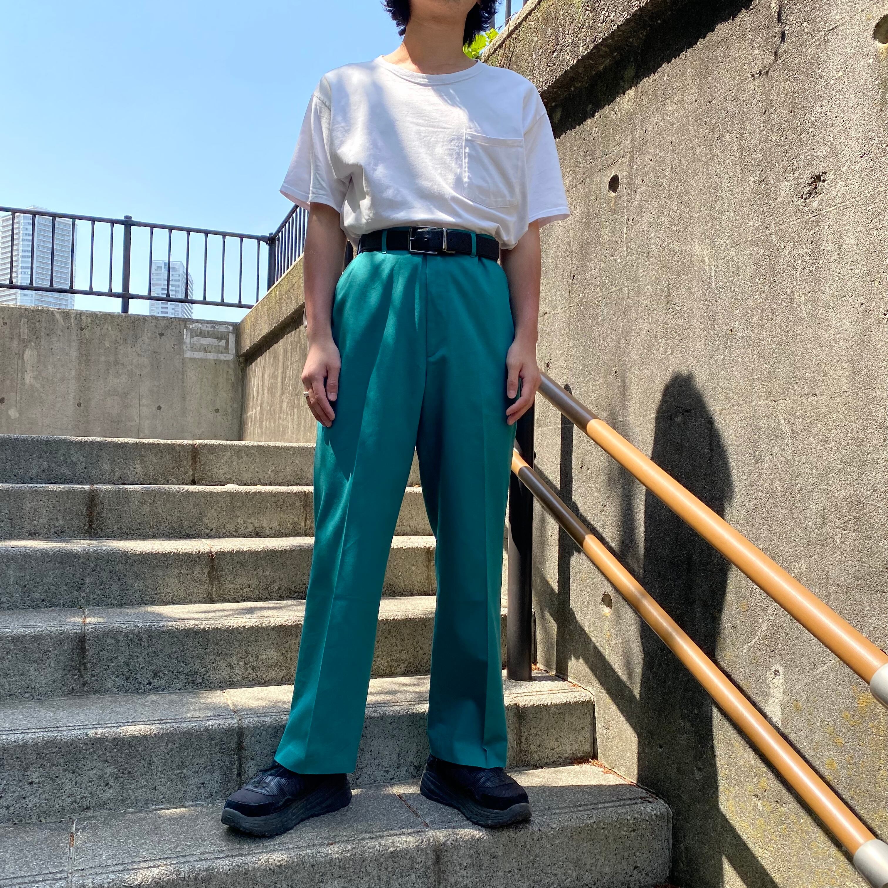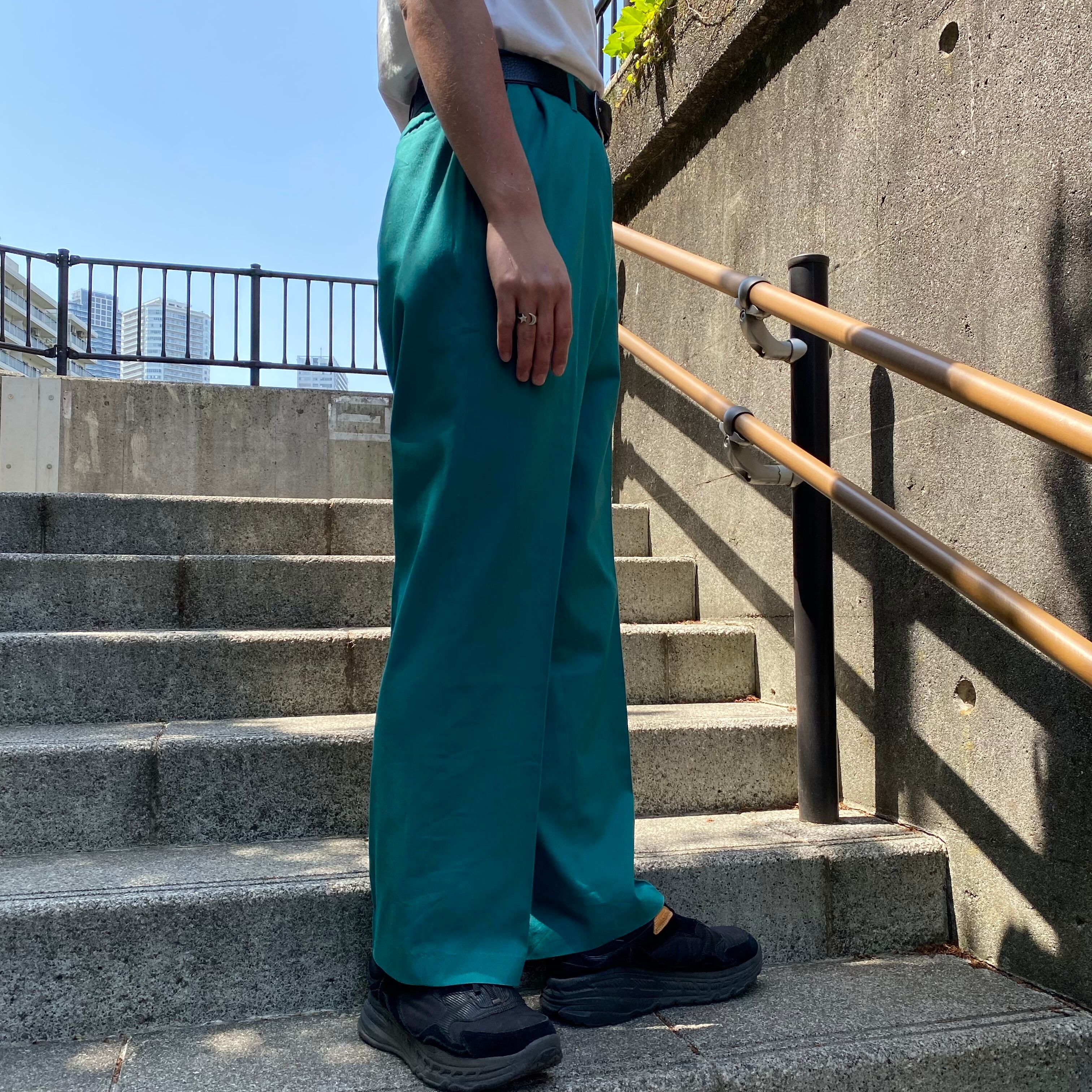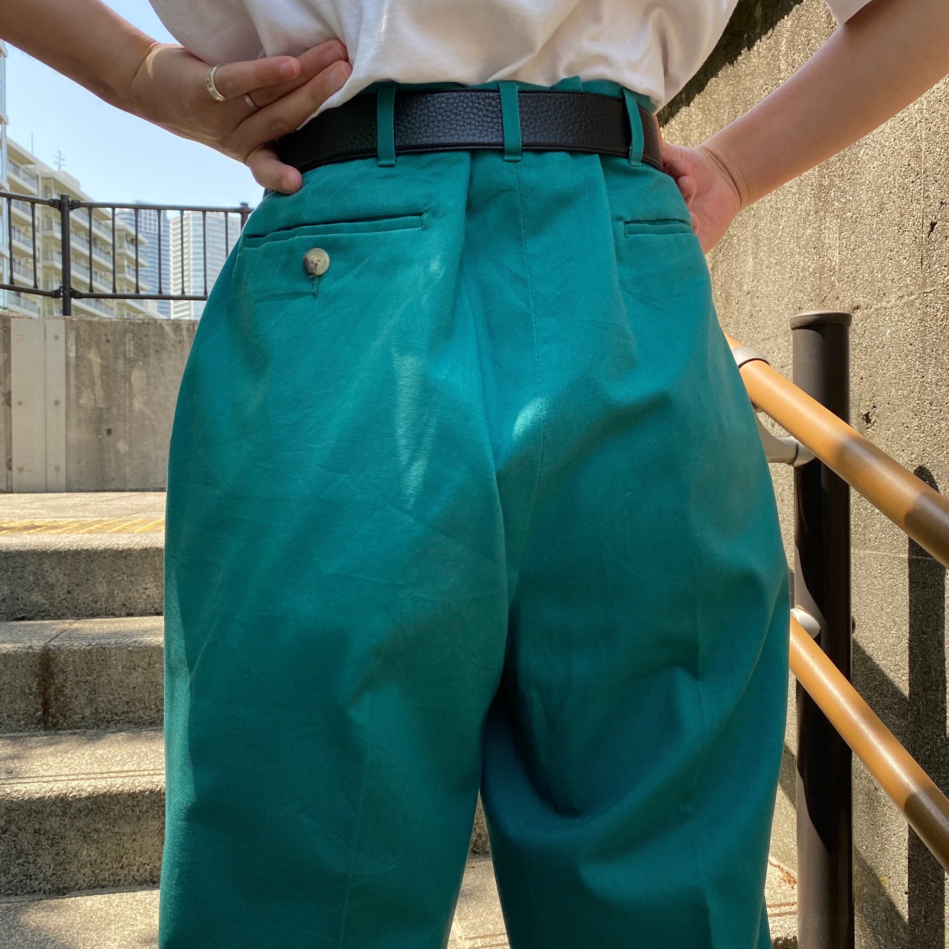 80's~ USA made / 《HAGGAR》turquoise green slacks