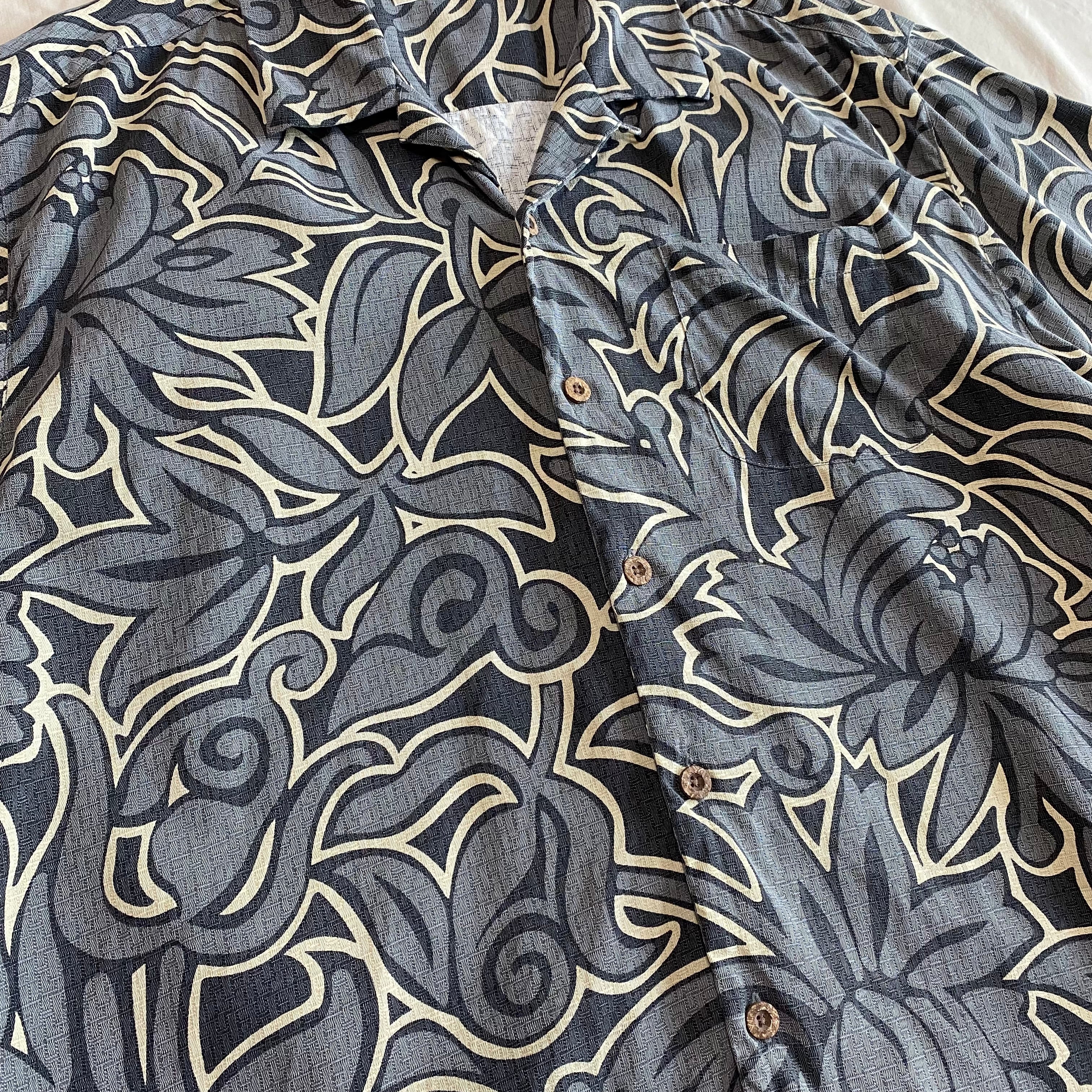 こちらは「Tommy Bahama」という、1992年にアメリカはシアトルで立ち上がったブランド。アイランド・ライフスタイルをコンセプトにゆったりとしたリゾート感のあるウェアを展開してます。こちらのアイテムも例に漏れず、オーバーサイズも相まって、ゆったりとしたリラックス感のある印象です。
