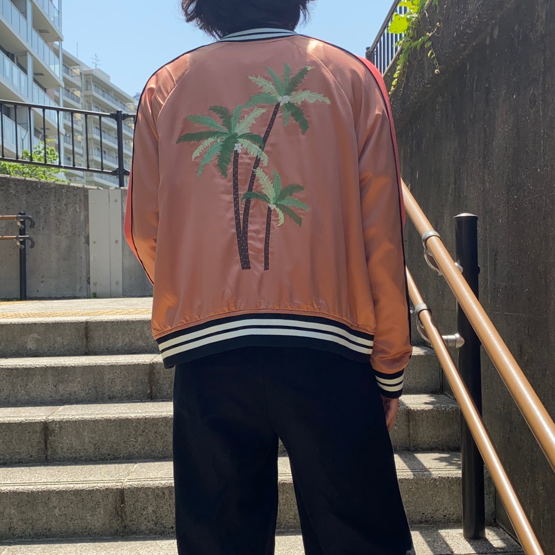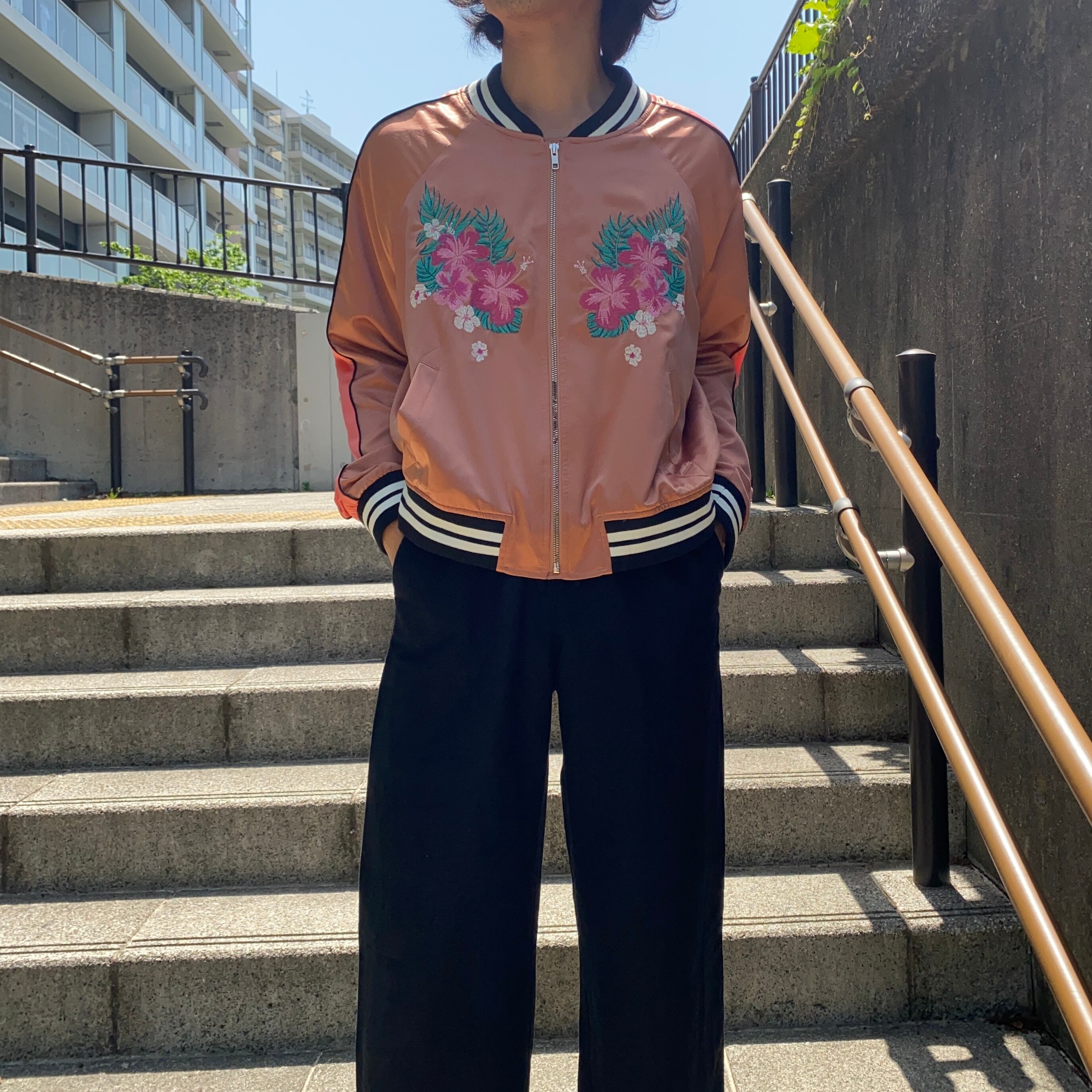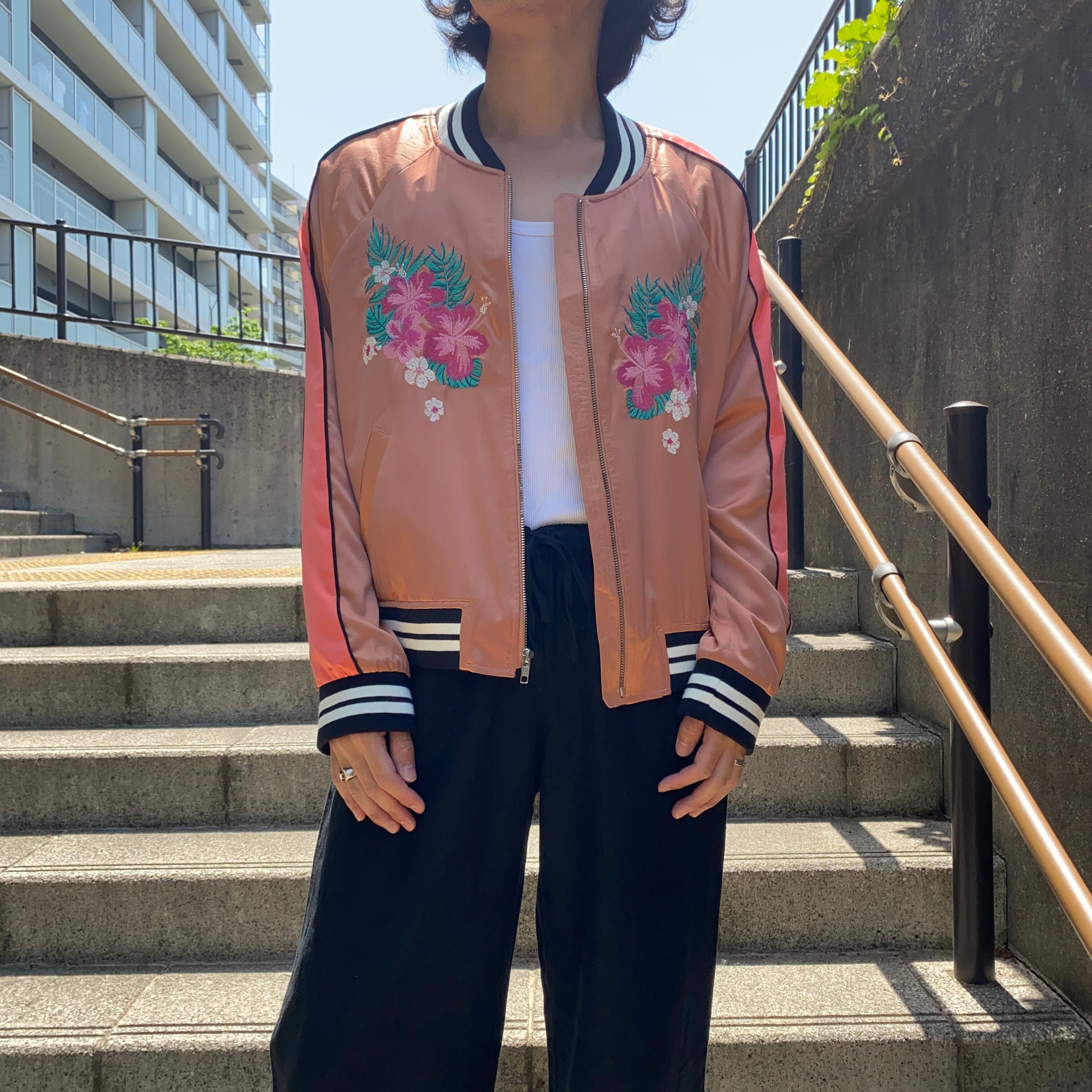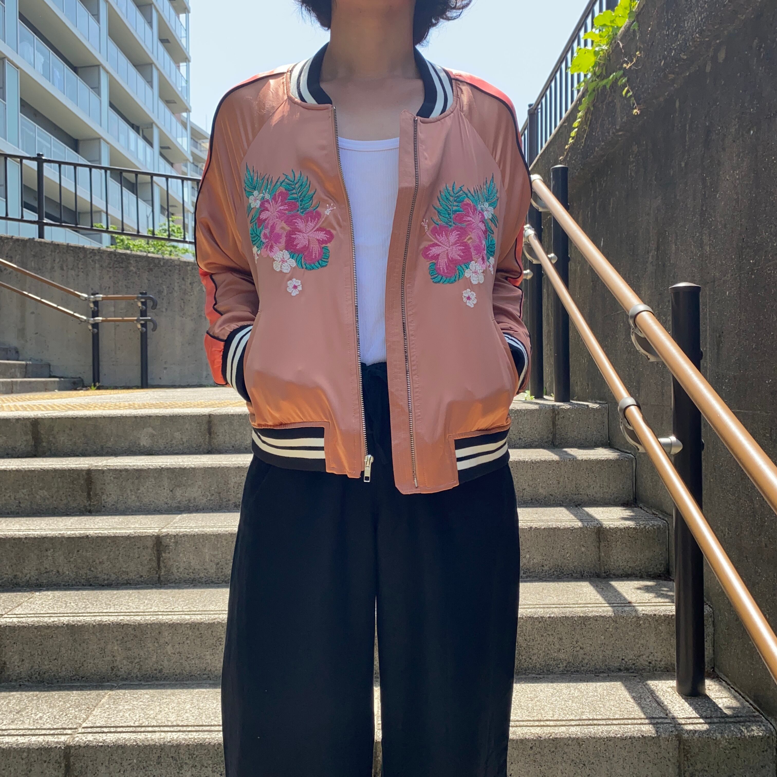 スカジャンタイプのジップアップジャケット。