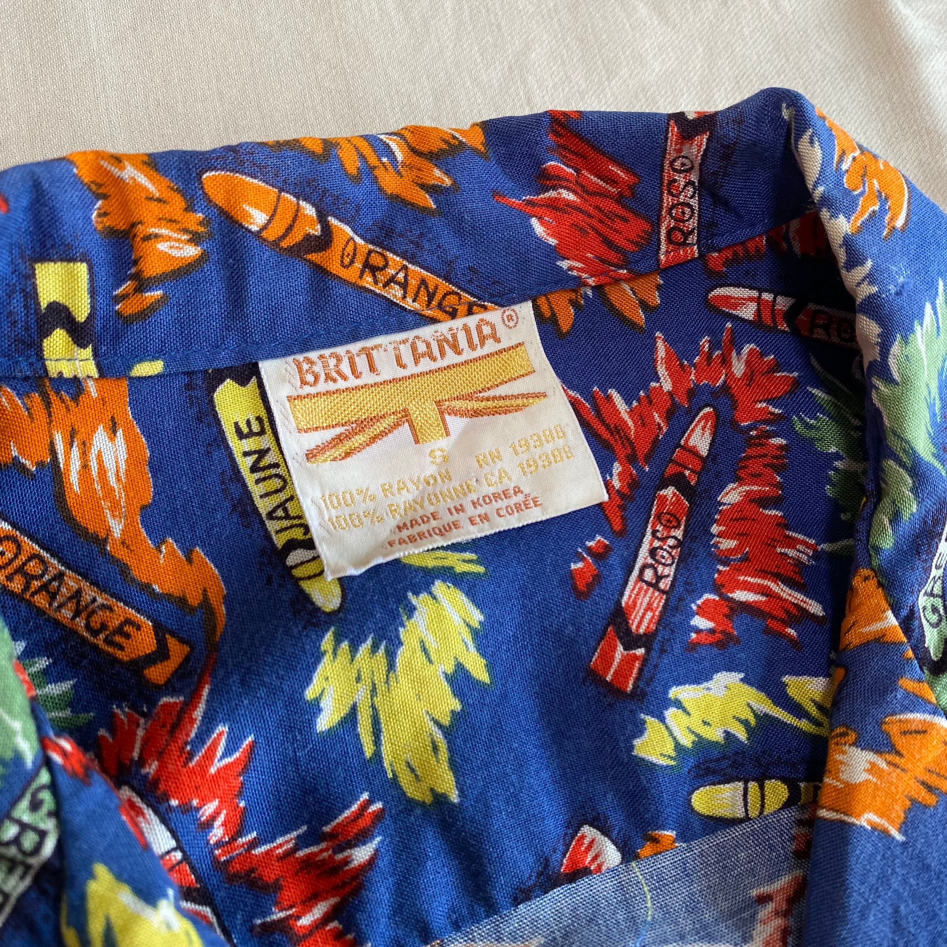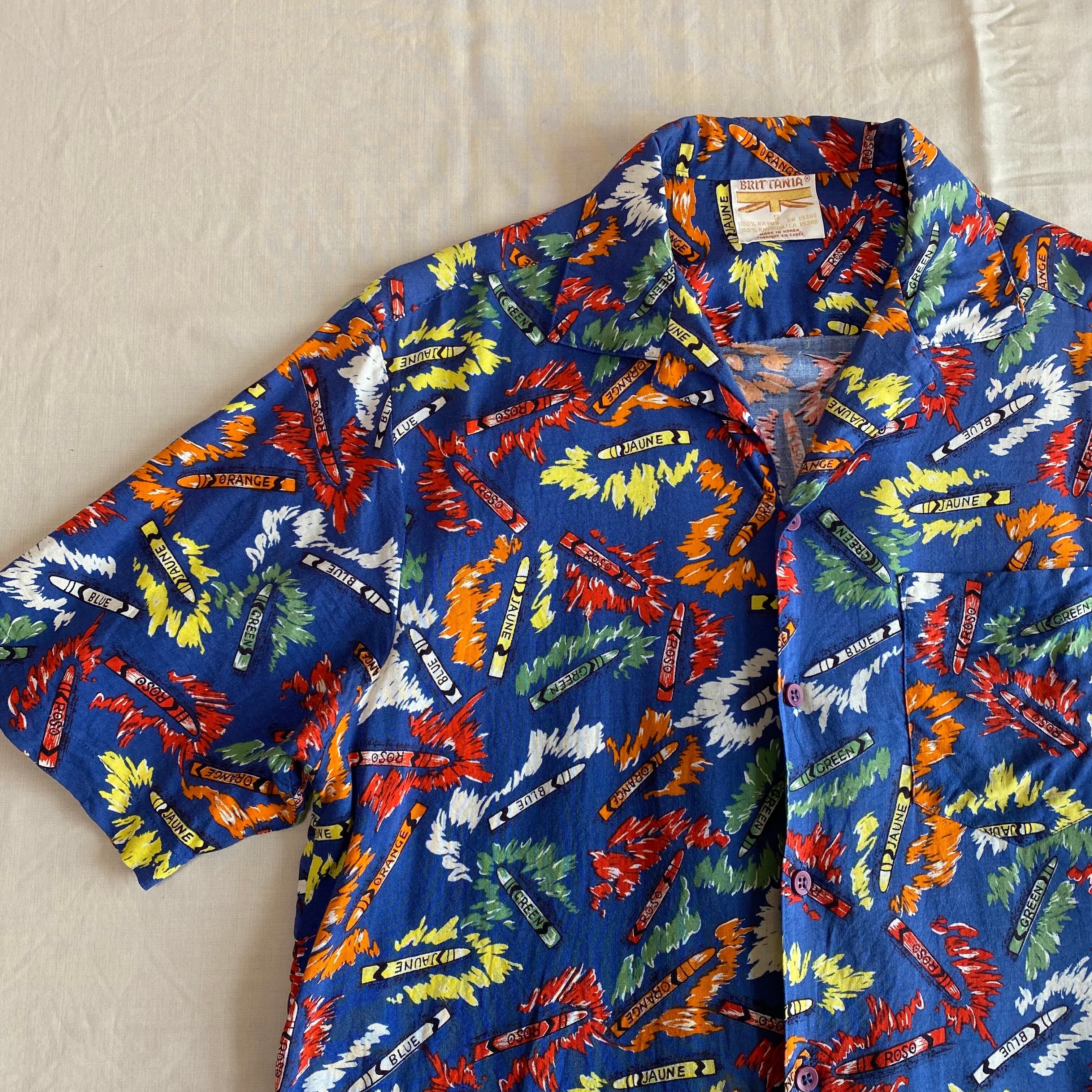 80's~ / 《BRITTANIA》crayon pattern rayon shirt