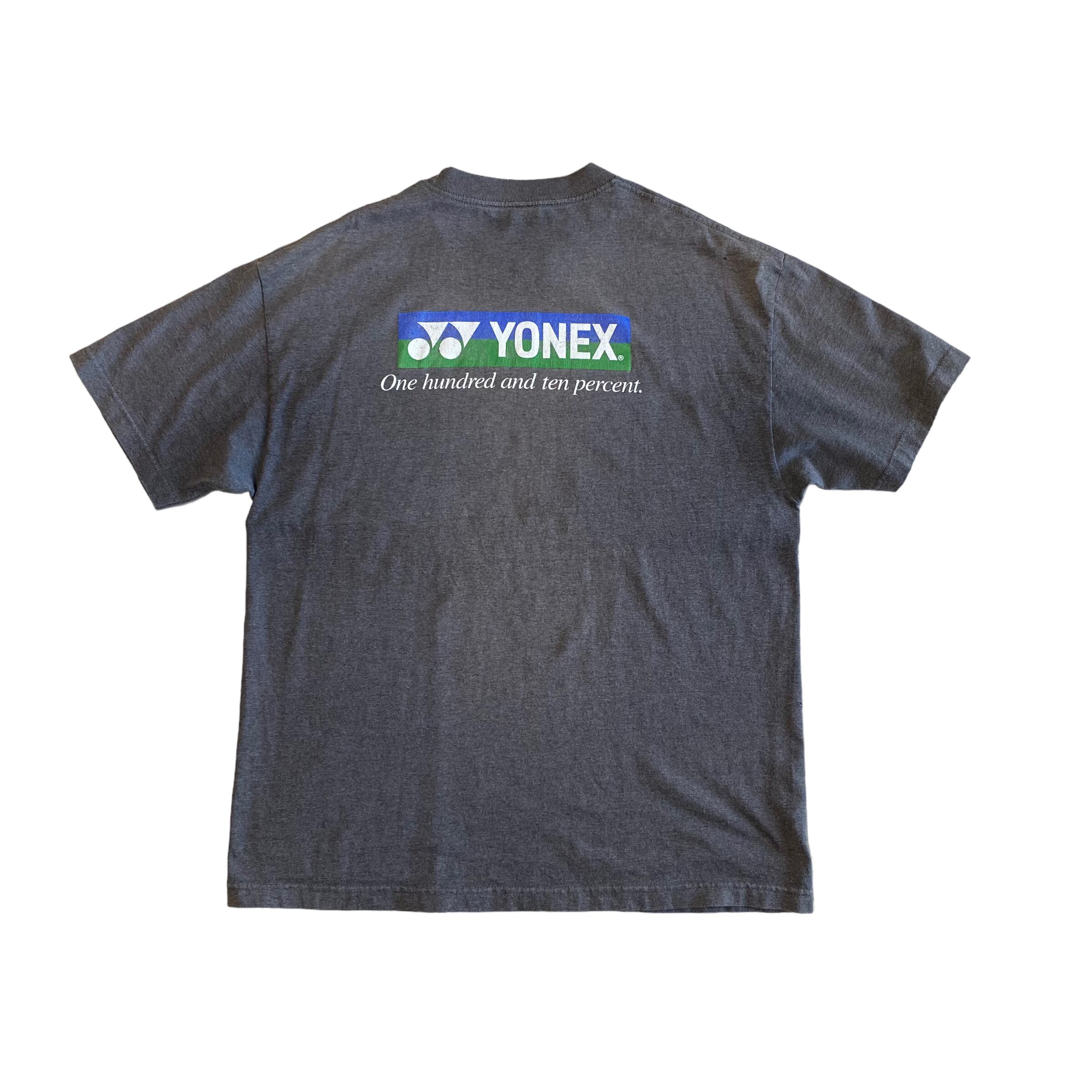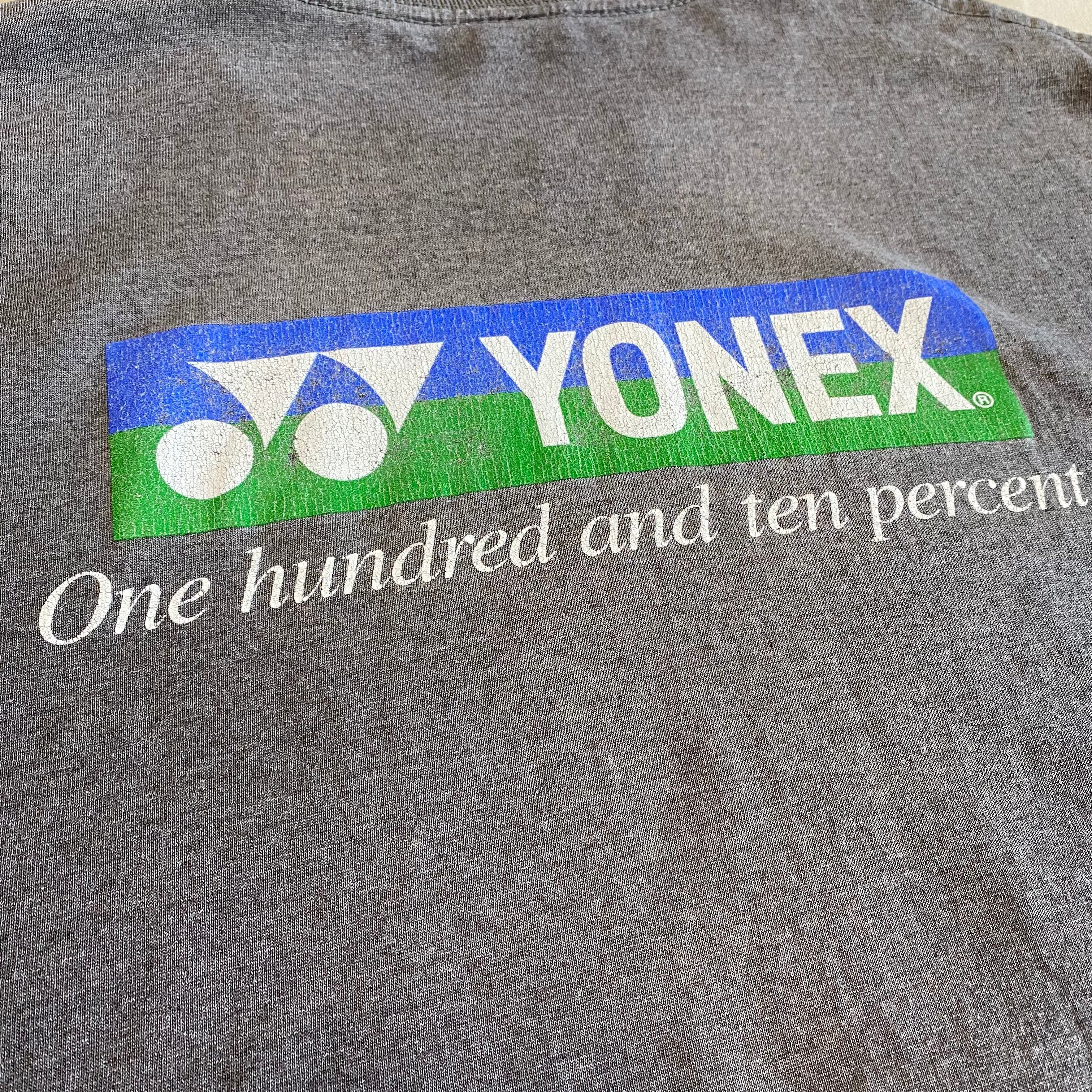 そういえばYONEXって20年前くらいにテレビCMやってたなーってこのTシャツを見て思い出しました。「レイトン・ヒューイット、デビッド・ナルバンディアン、エレナ・ドキッチ」というナレーションが印象的でした。