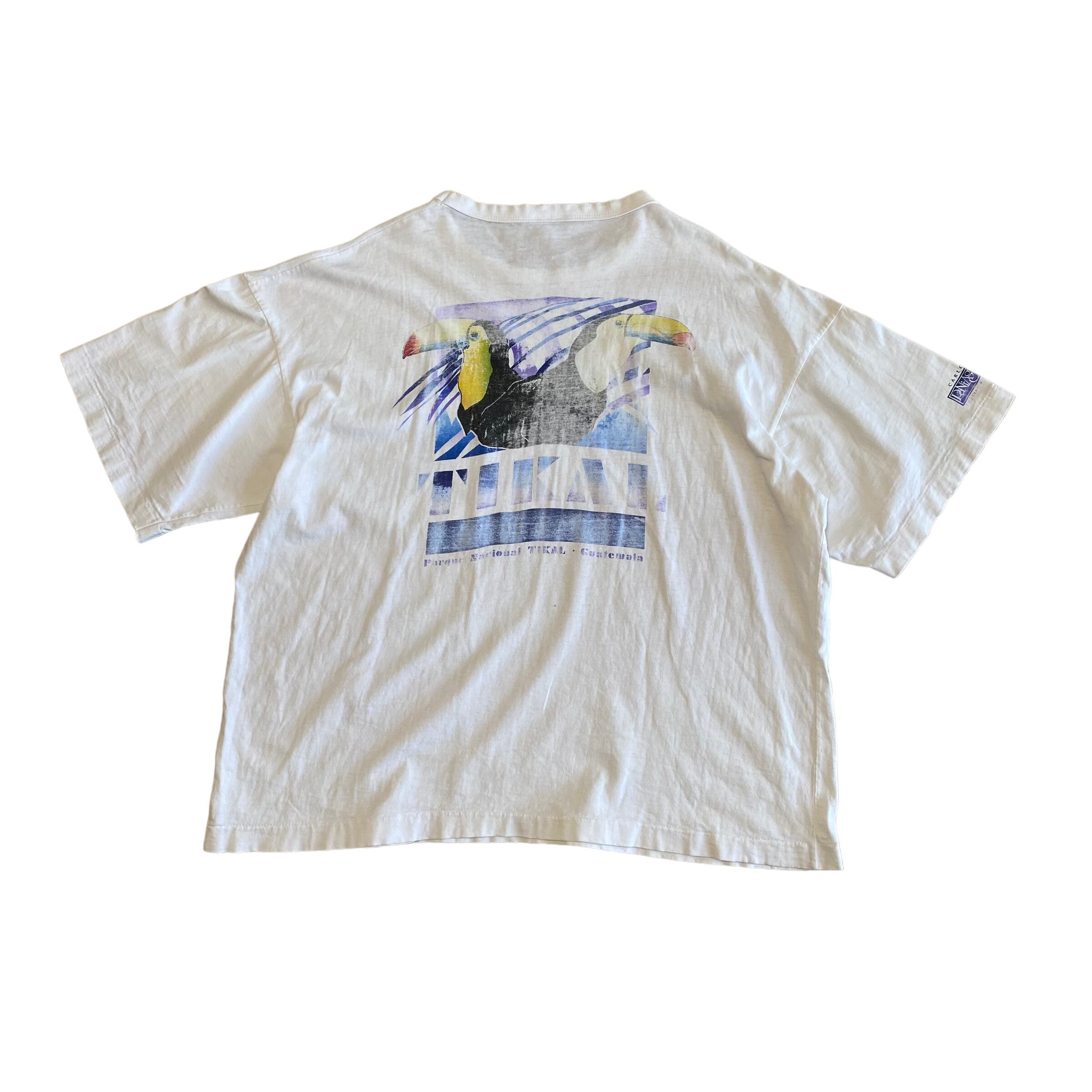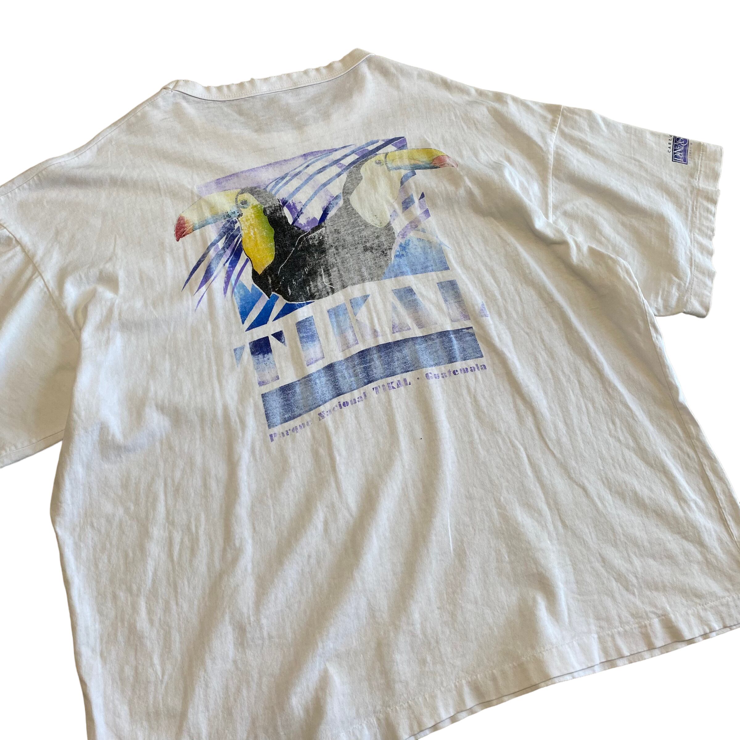 ガテマラの熱帯雨林で発見された古代遺跡である「ティカル」のプリントTシャツ。1979年には世界遺産にも登録されています。