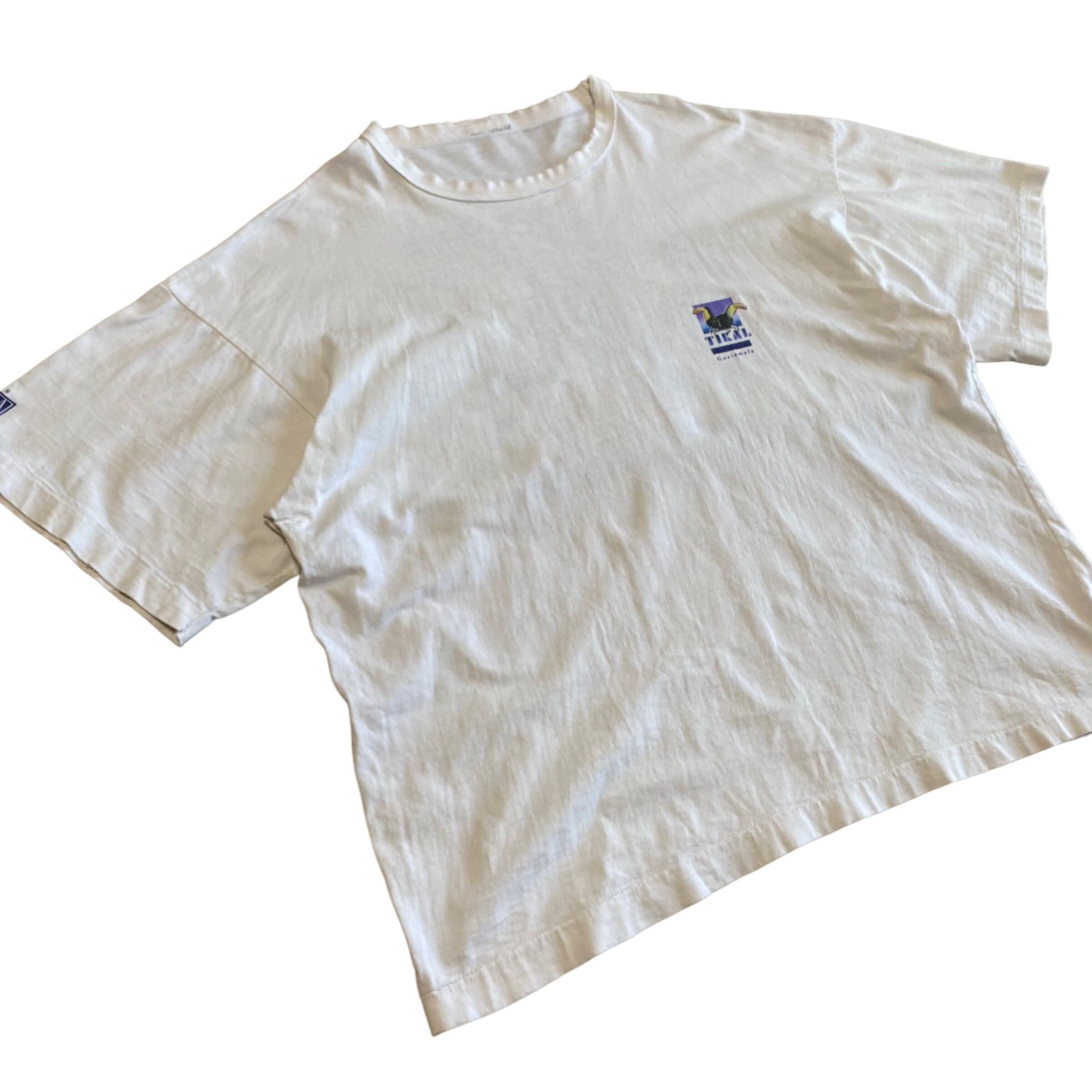 胸元には小さく、背面には大きくプリントされた鳥がポイントですが、このTシャツの魅力は古着ならではの経年変化による素晴らしいダメージ。
