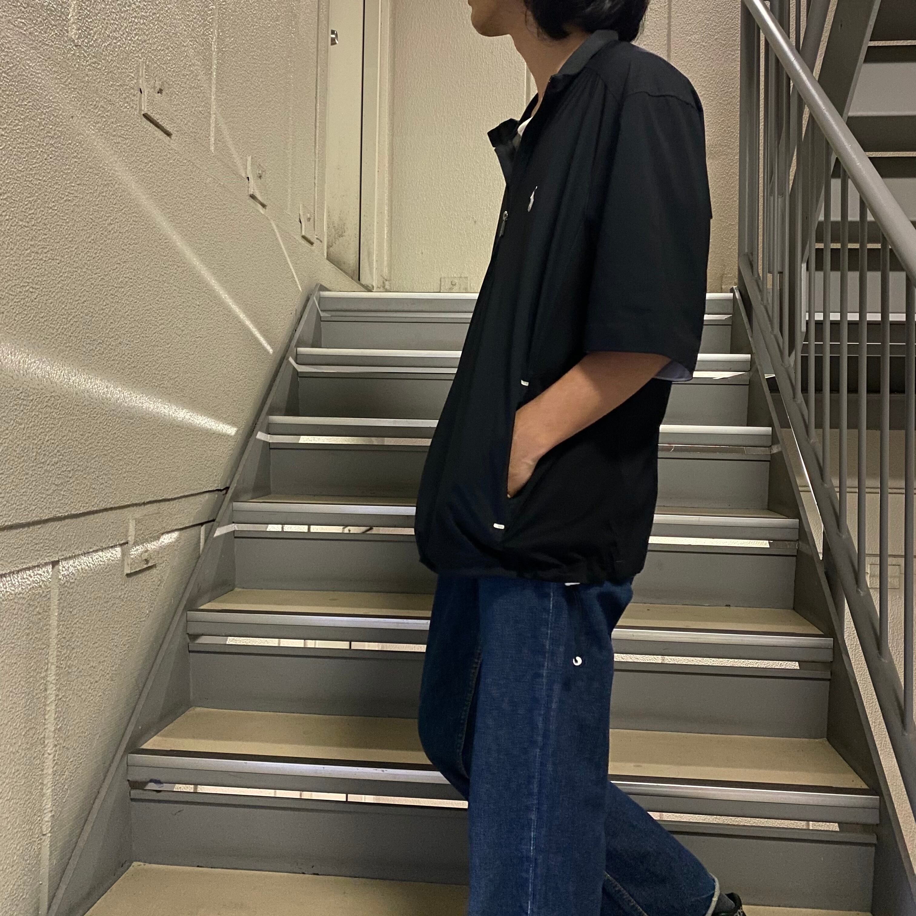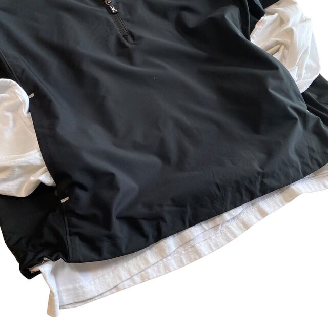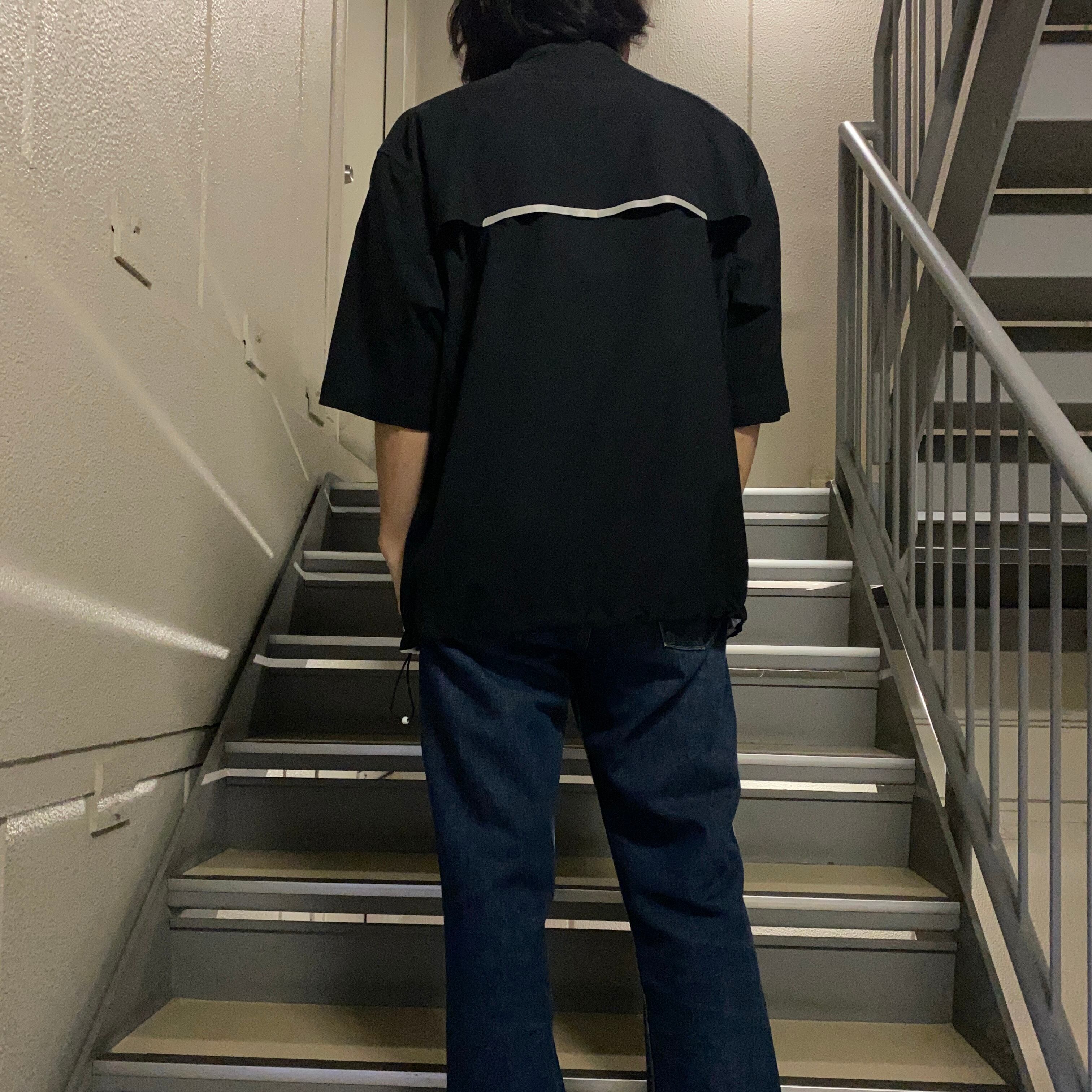 スポーティさもありつつ、5部袖という袖丈の長さ、そしてオールブラックというカラーリングで、ルーズな印象もあります。