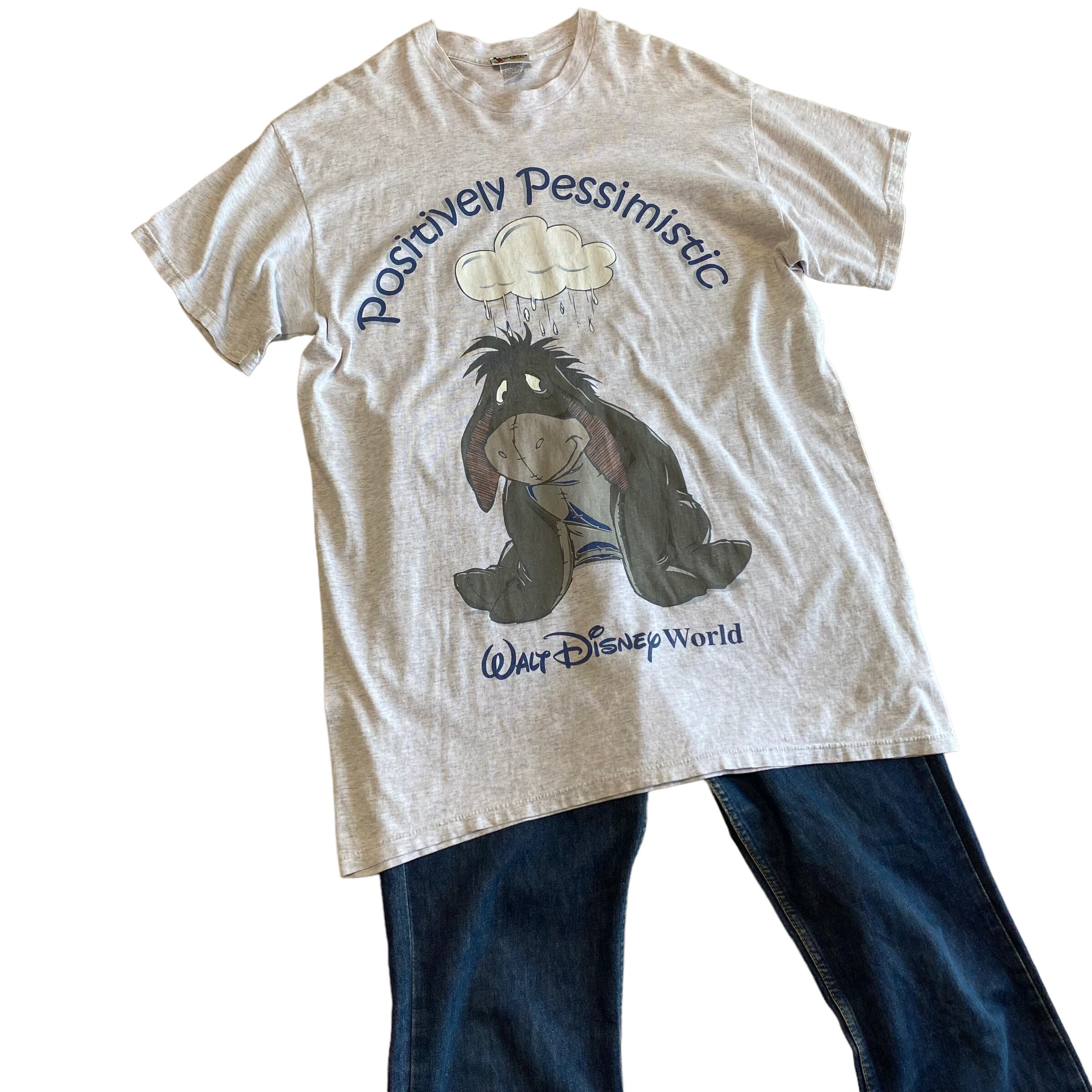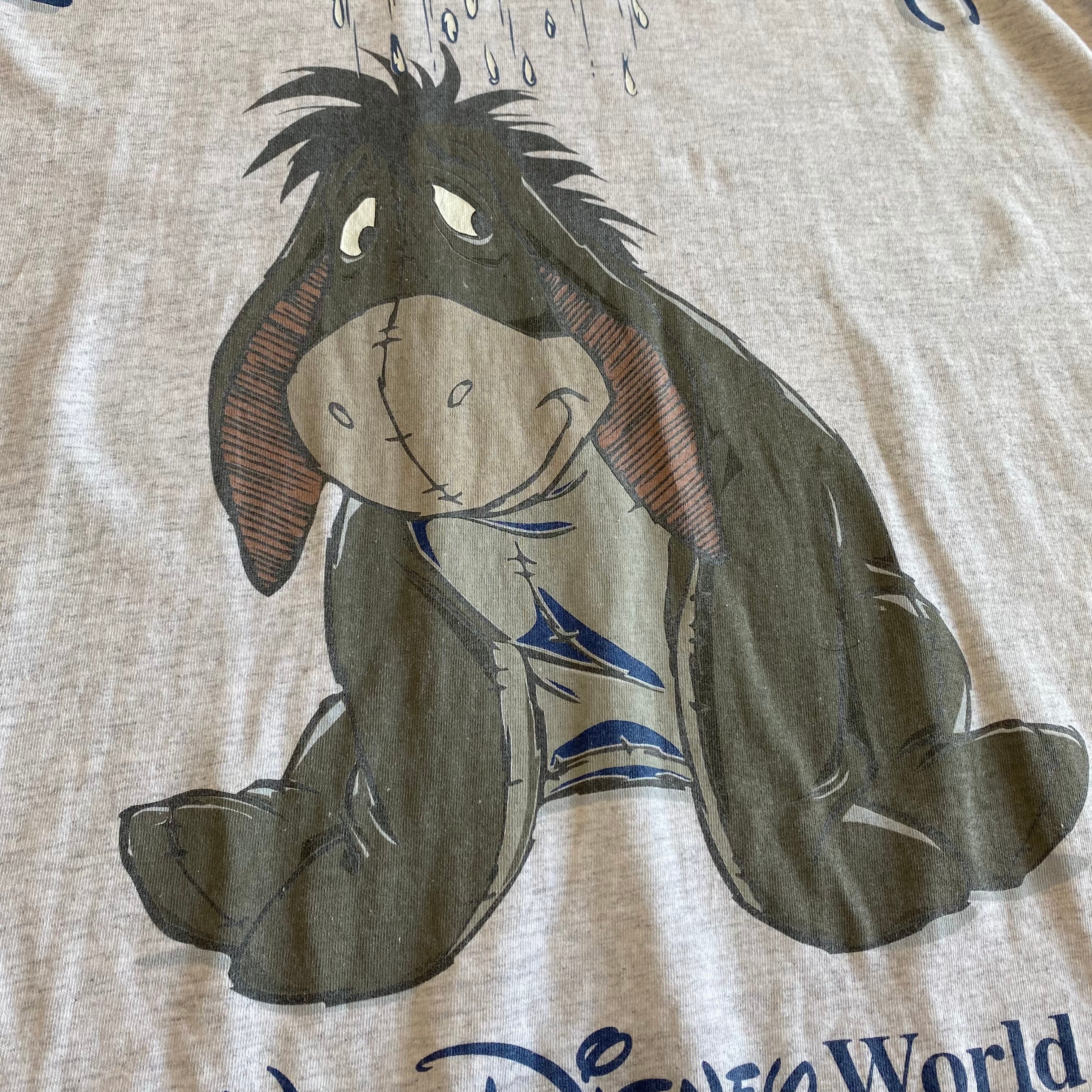 お馴染みディズニーアニメ「くまのプーさん」に出てくるキャラクター「イーヨー」のプリントTシャツ。