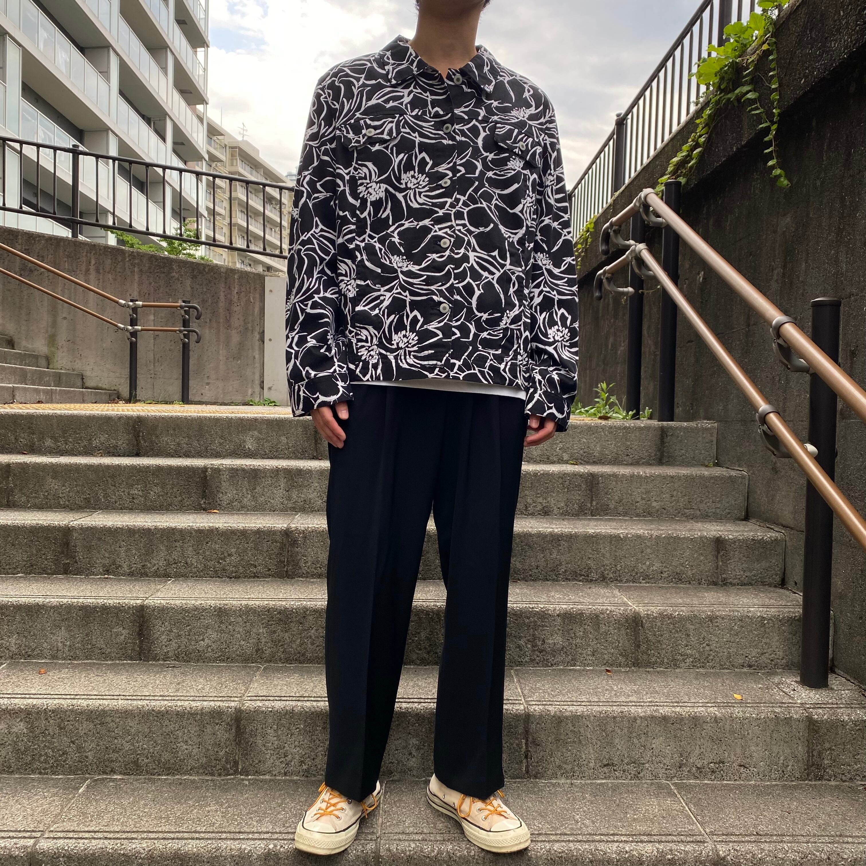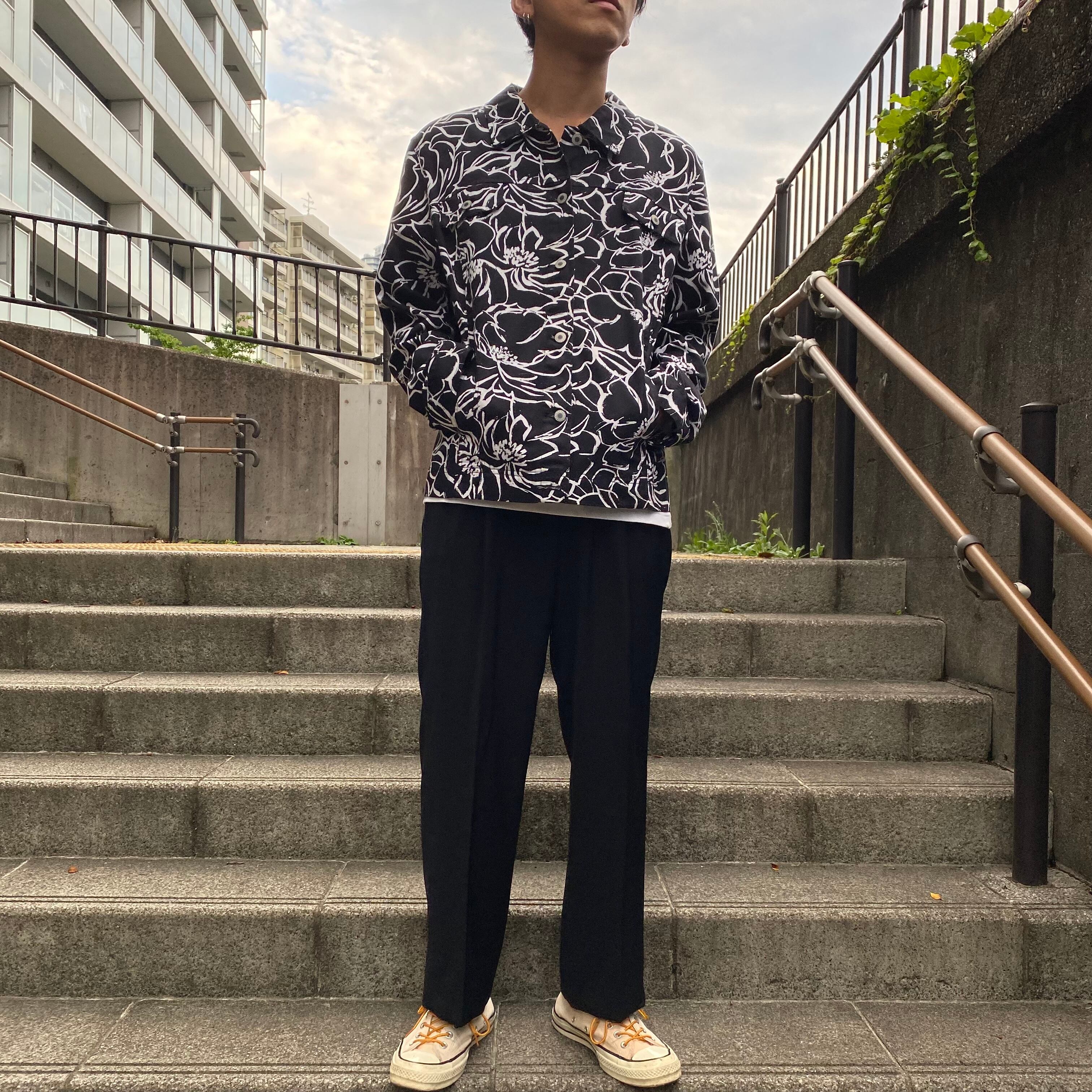 もしくは太めのブラックパンツを合わせて、ホワイトのフラワーパターンを際立たせるのもめちゃくちゃかっこいいかと思います。