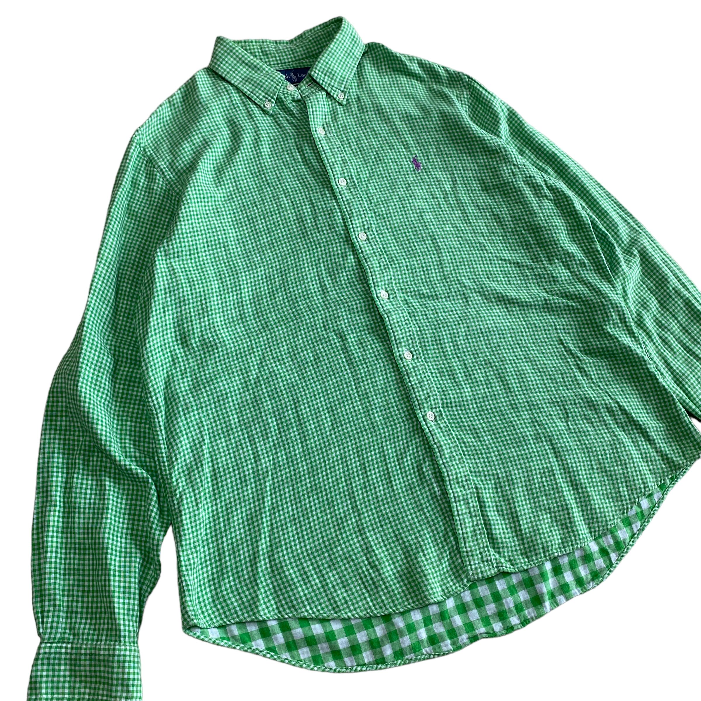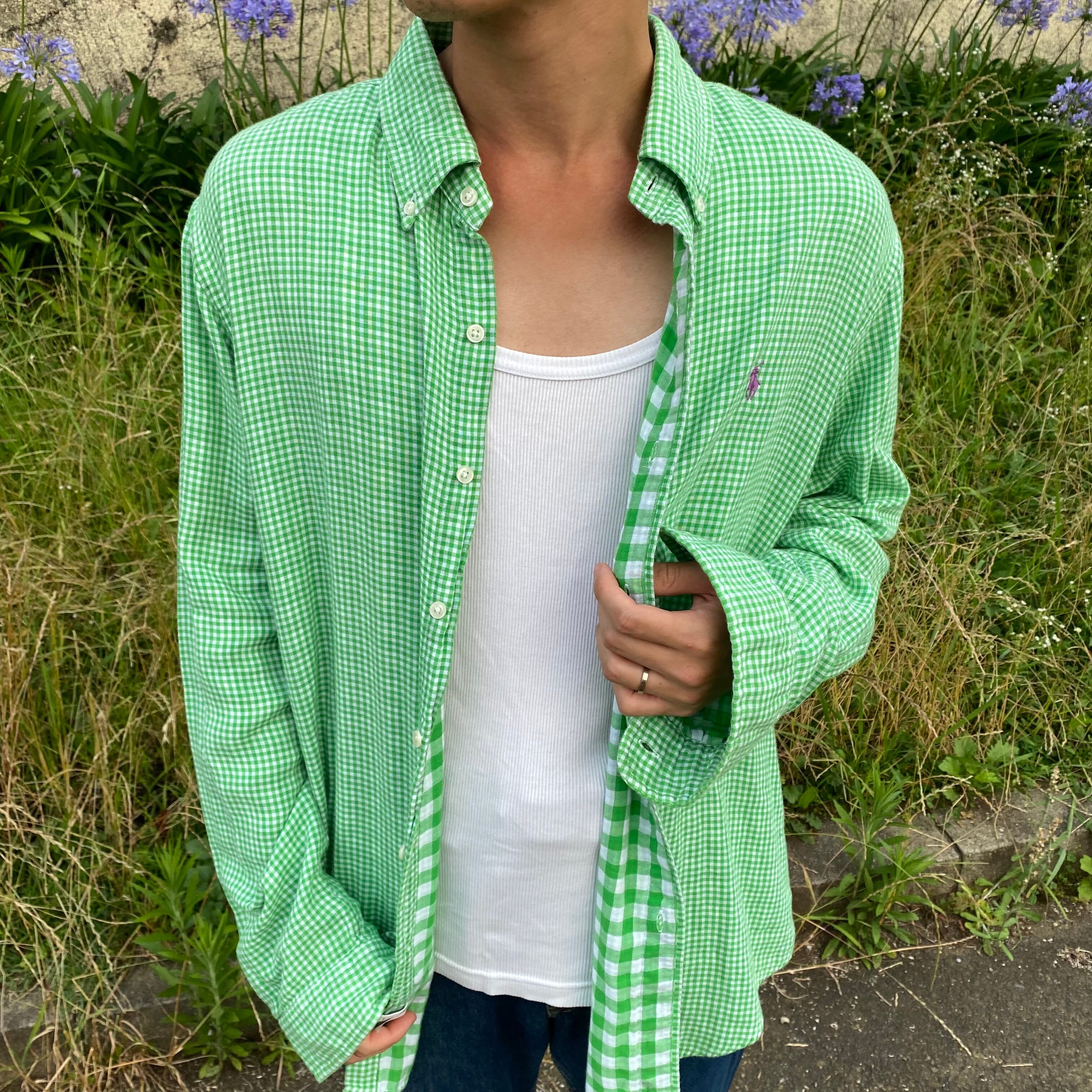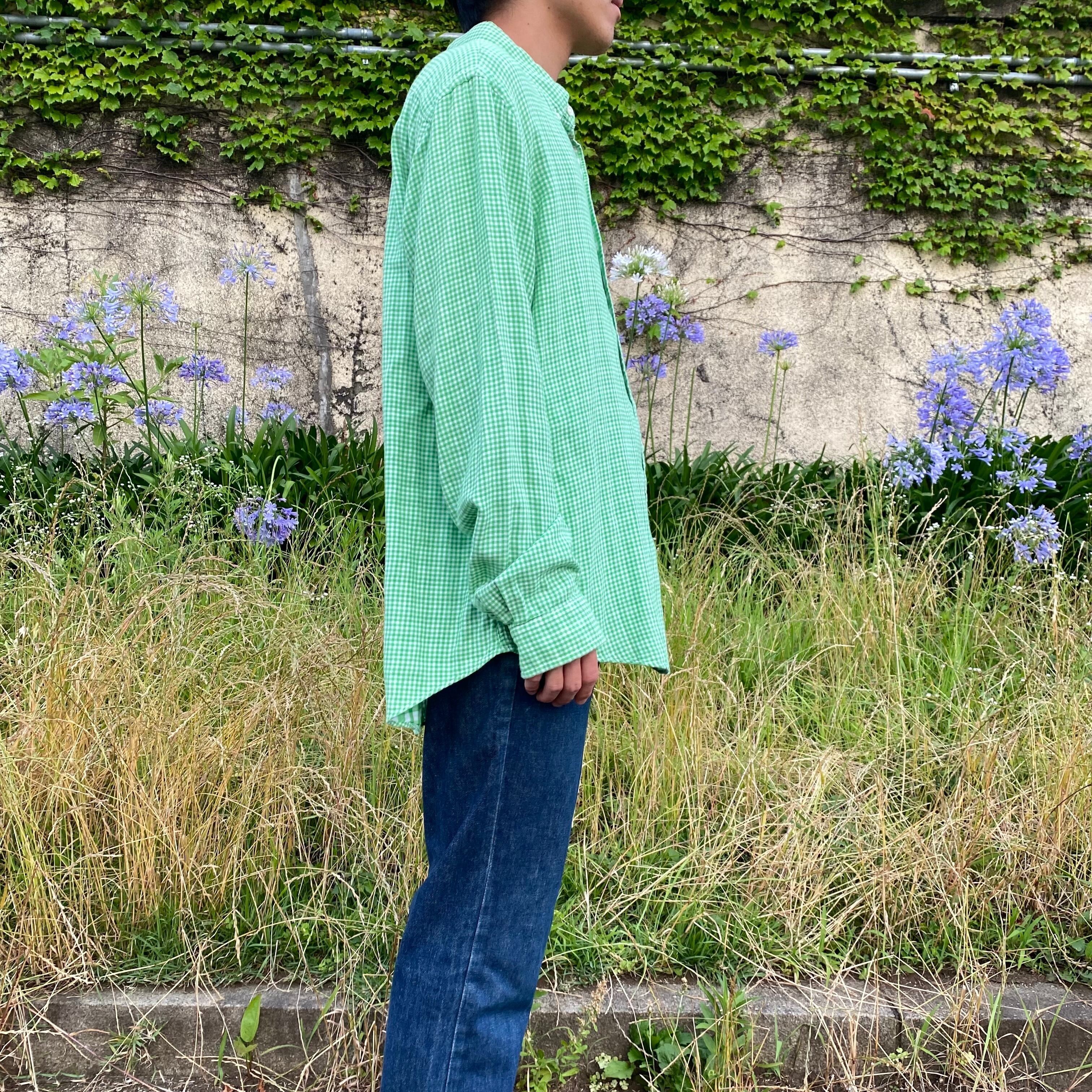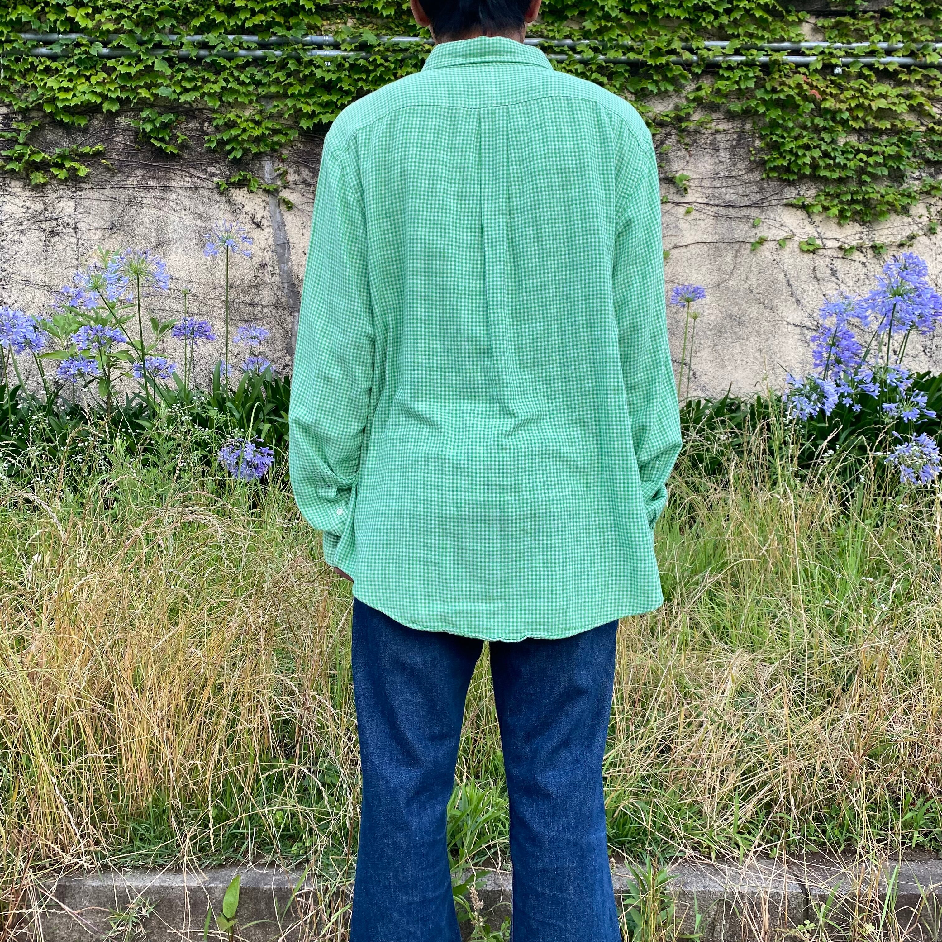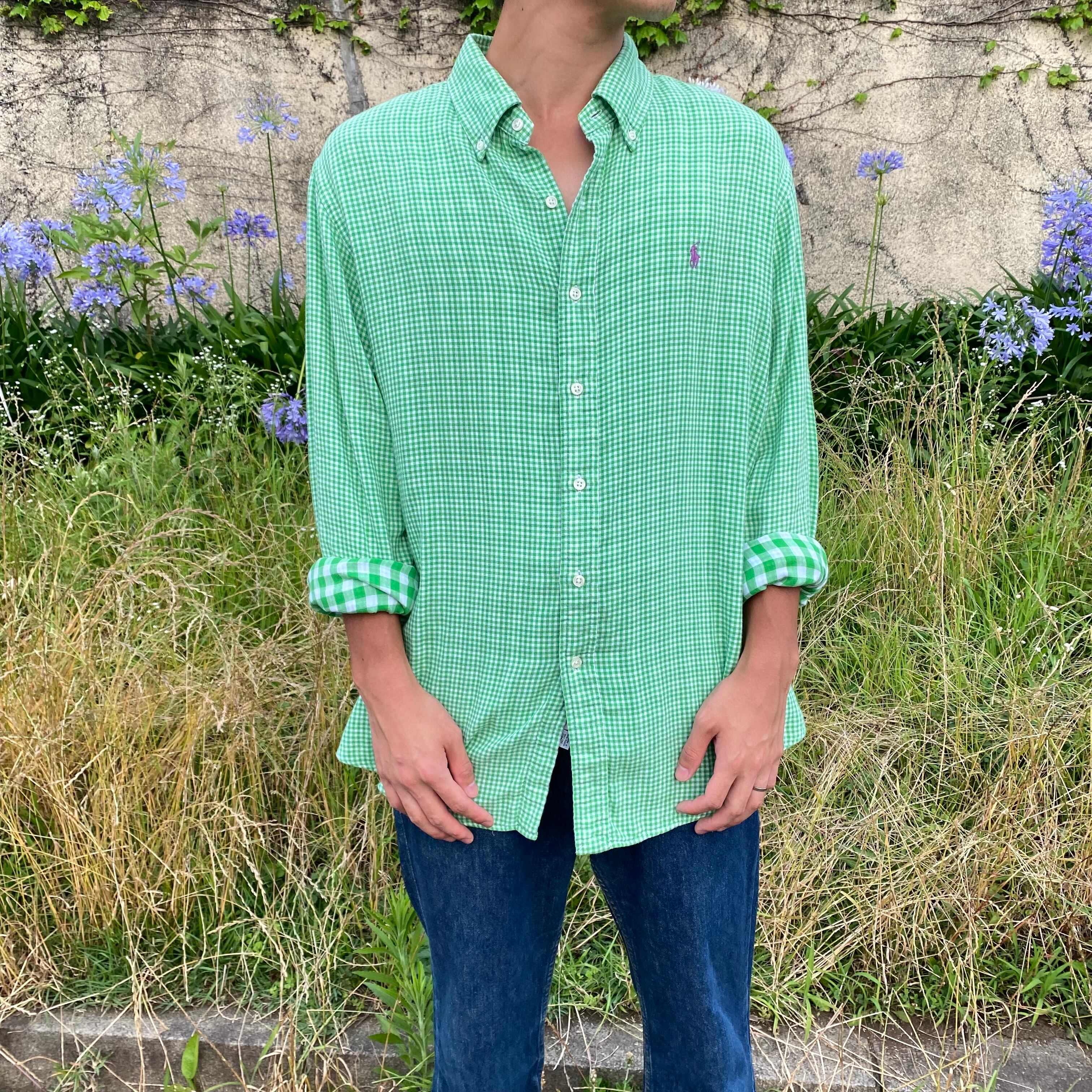 お馴染み、アメリカの老舗ブランド「Ralph Lauren」からグリーンのギンガムチェックシャツ。